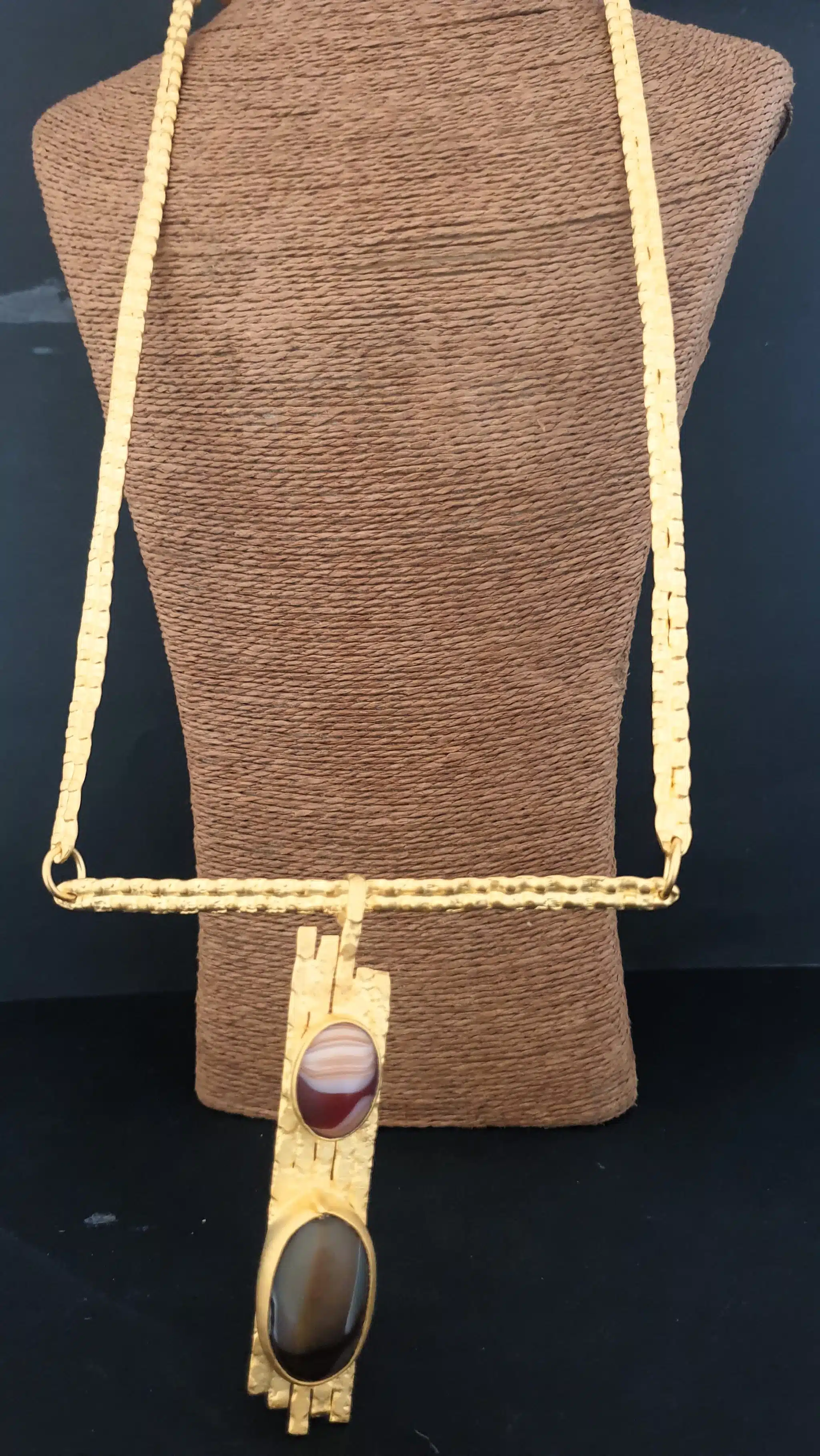 21 karate gold plated necklace with 2 agate stones.