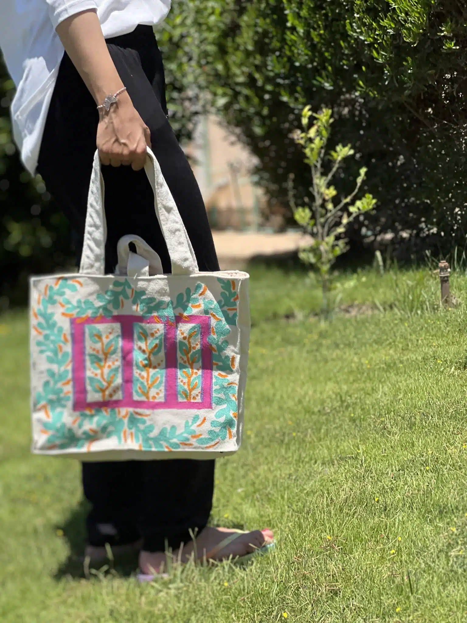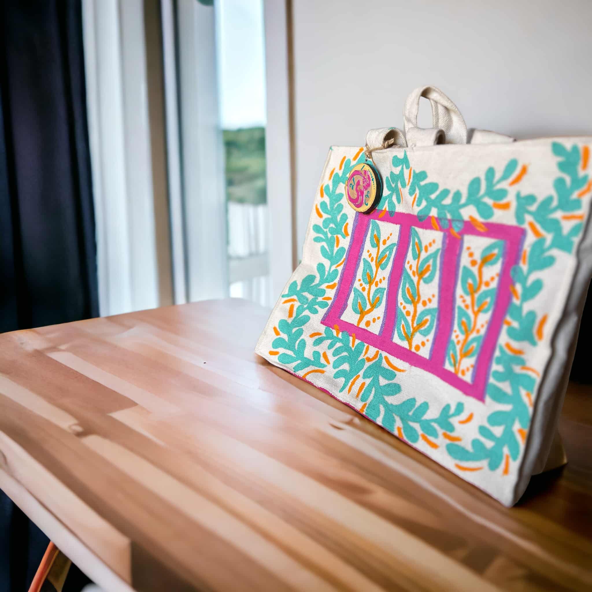 - A colorful hand painted Tote bag