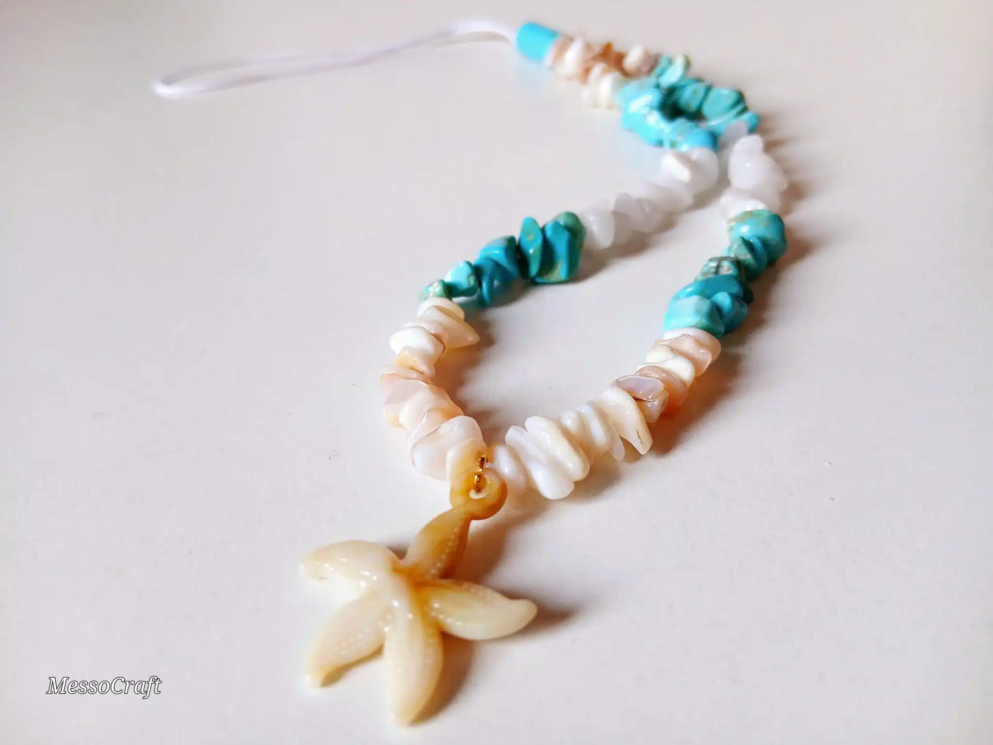 Mobile-chain in beige / blue beads with starfish pendant