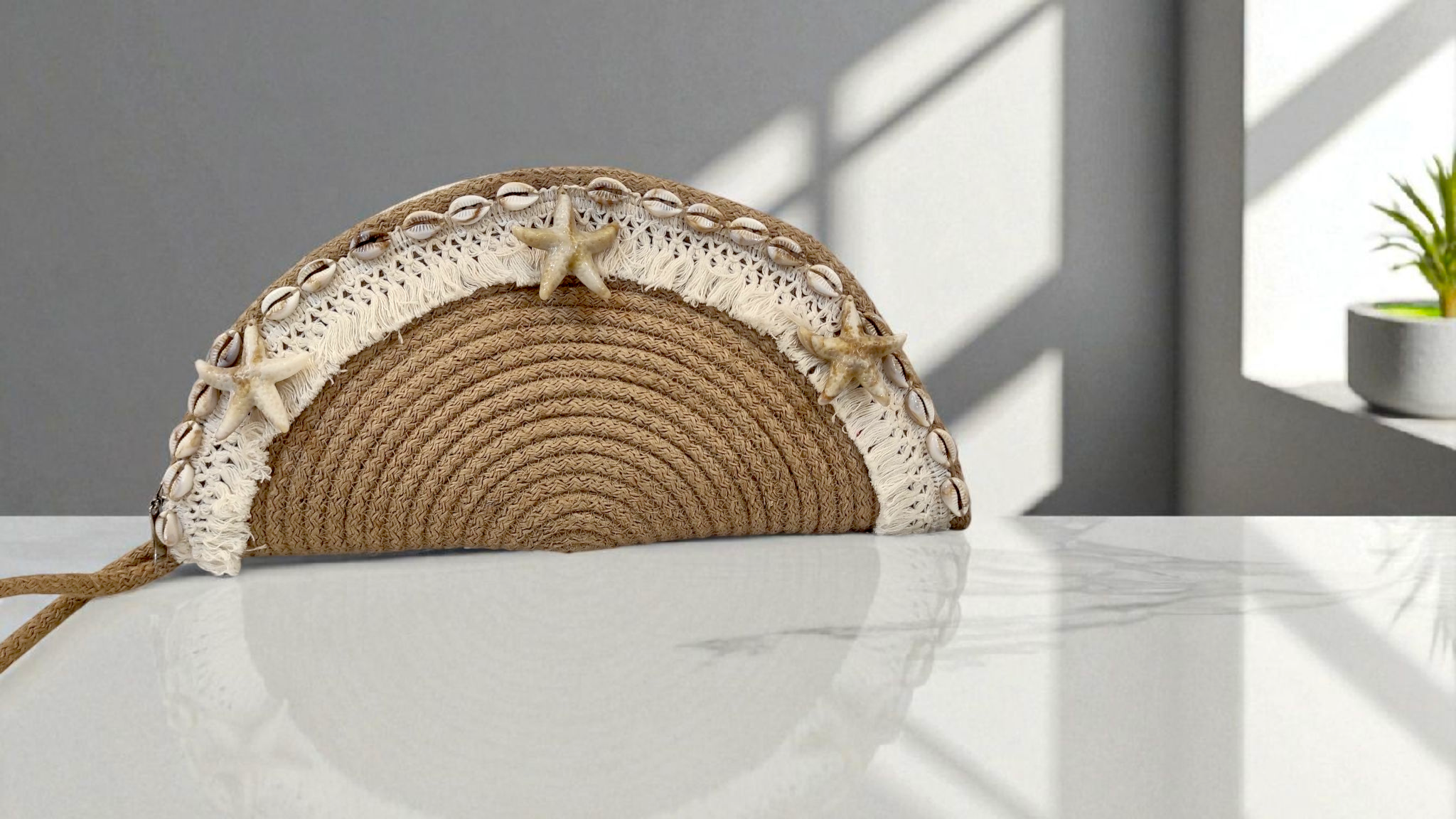 made of jute and shells