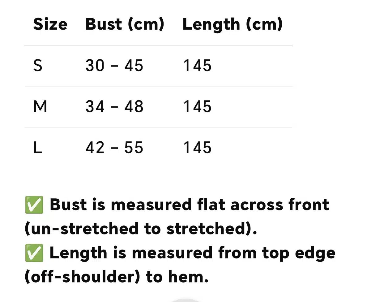Please revise the size chart before confirming your order.
