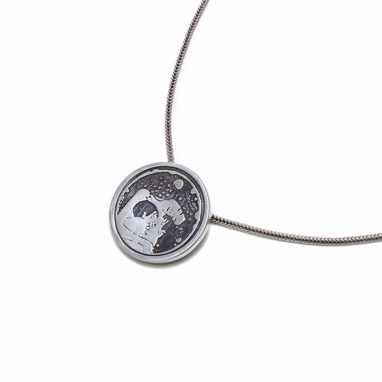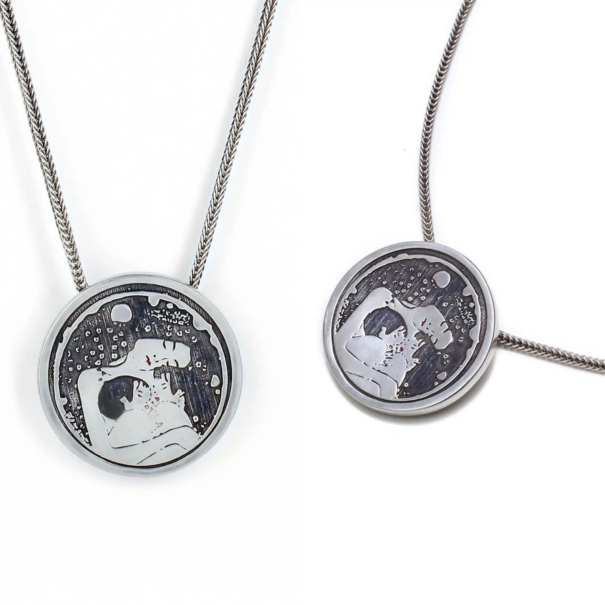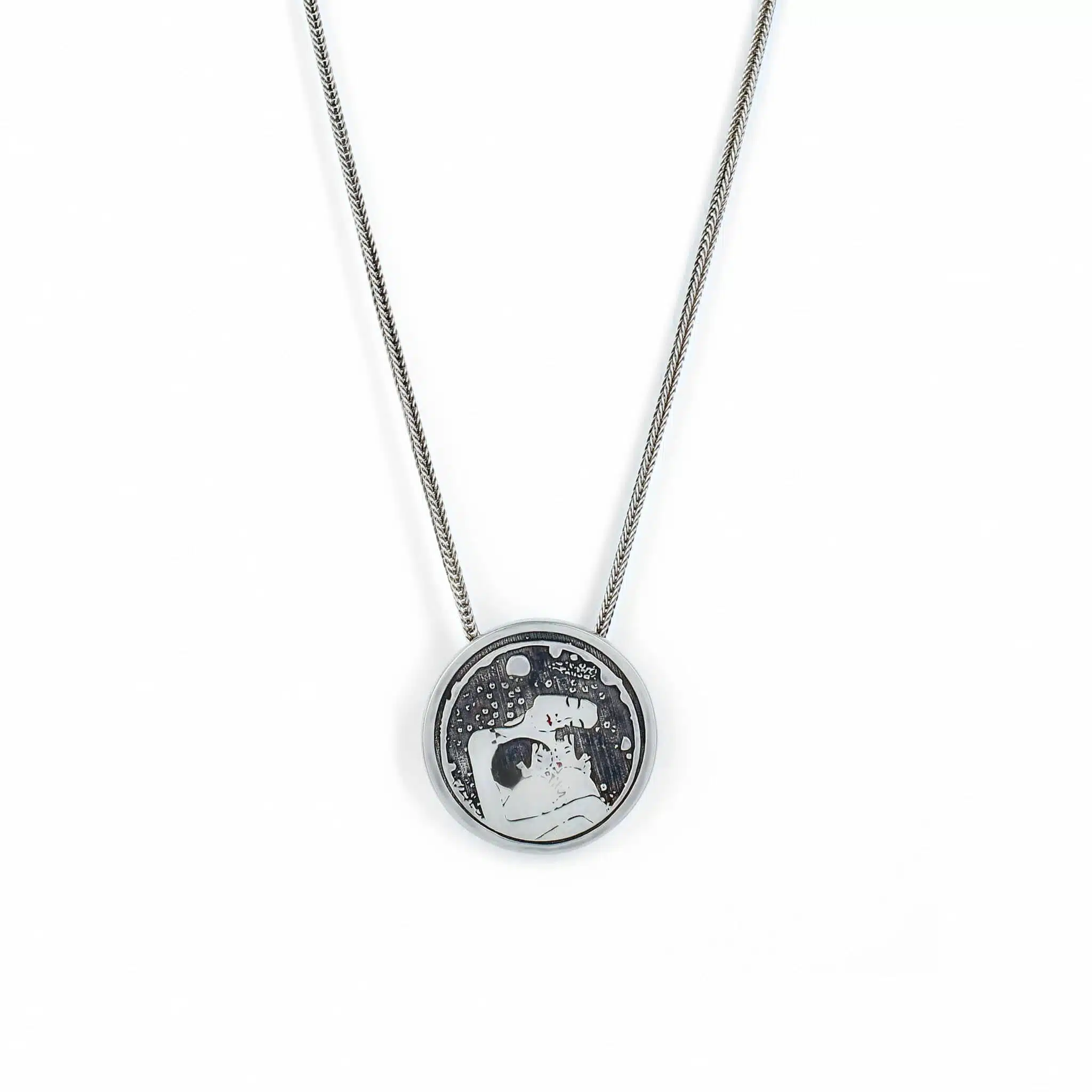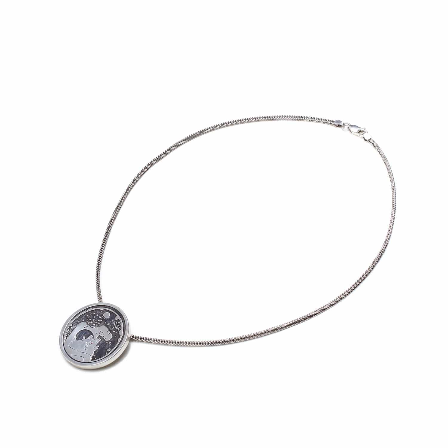 Sterling silver mother and children 3D necklace inspired by the Austrian artist Gustav Klimt.