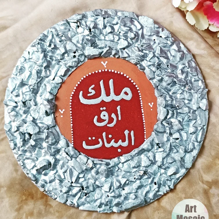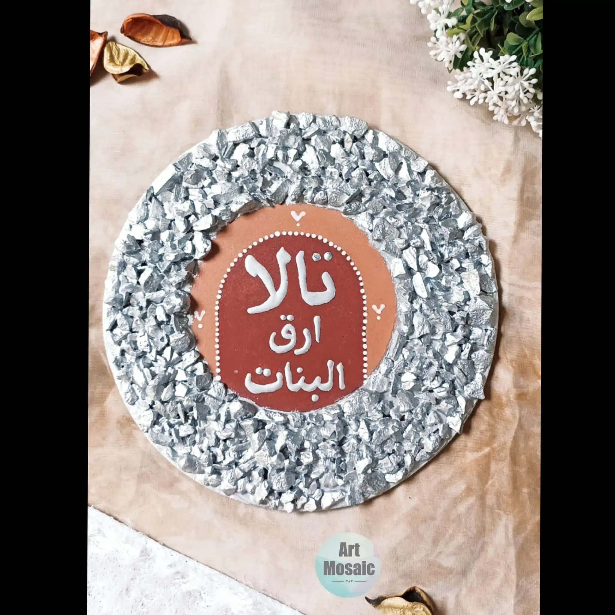 Materiel wood tableau with stones mosaic