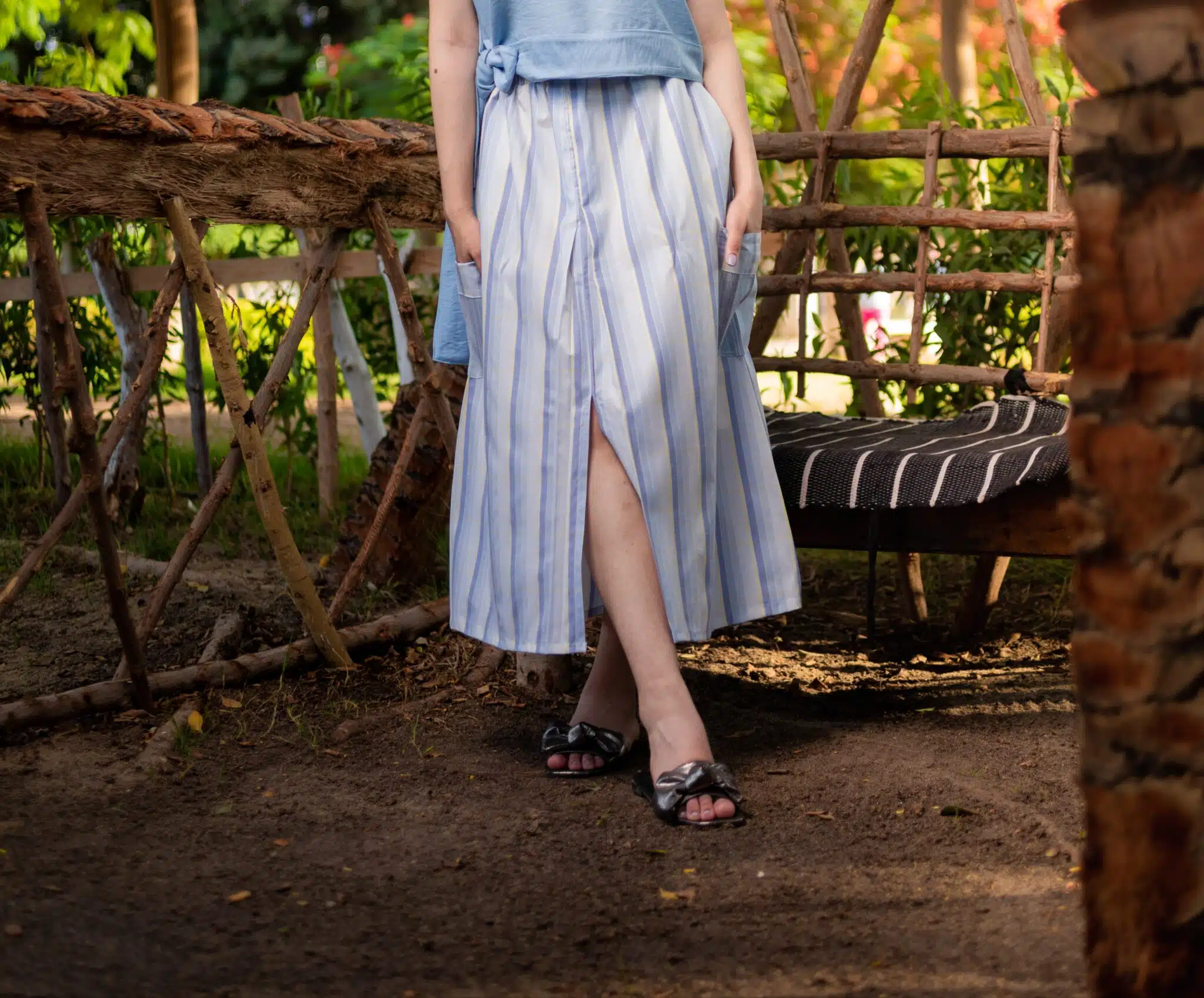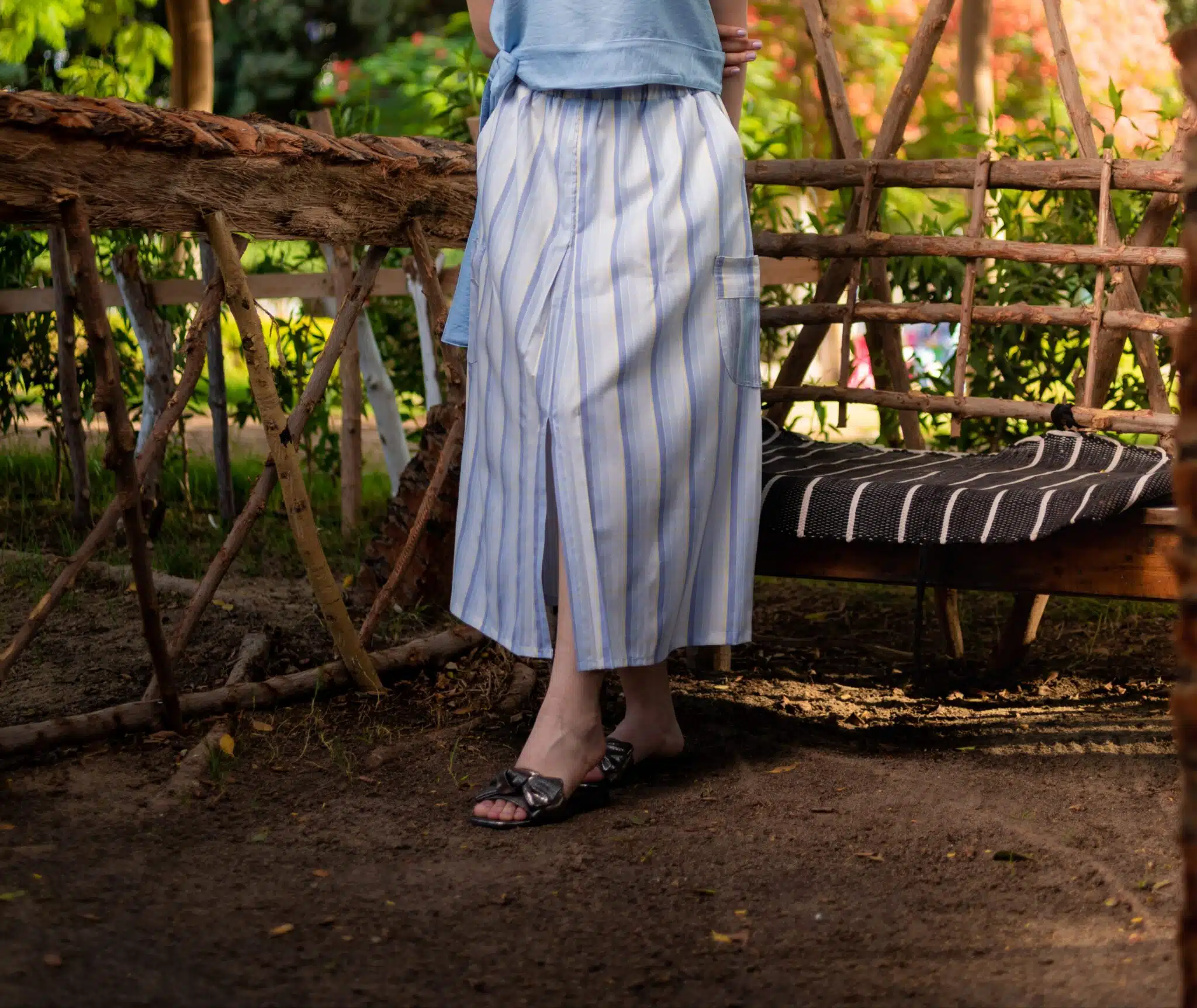 Sea colour Striped cotton cargo skirt( baby blue , blue and white) with touch of pure linen Striped pocket π©΅π€π