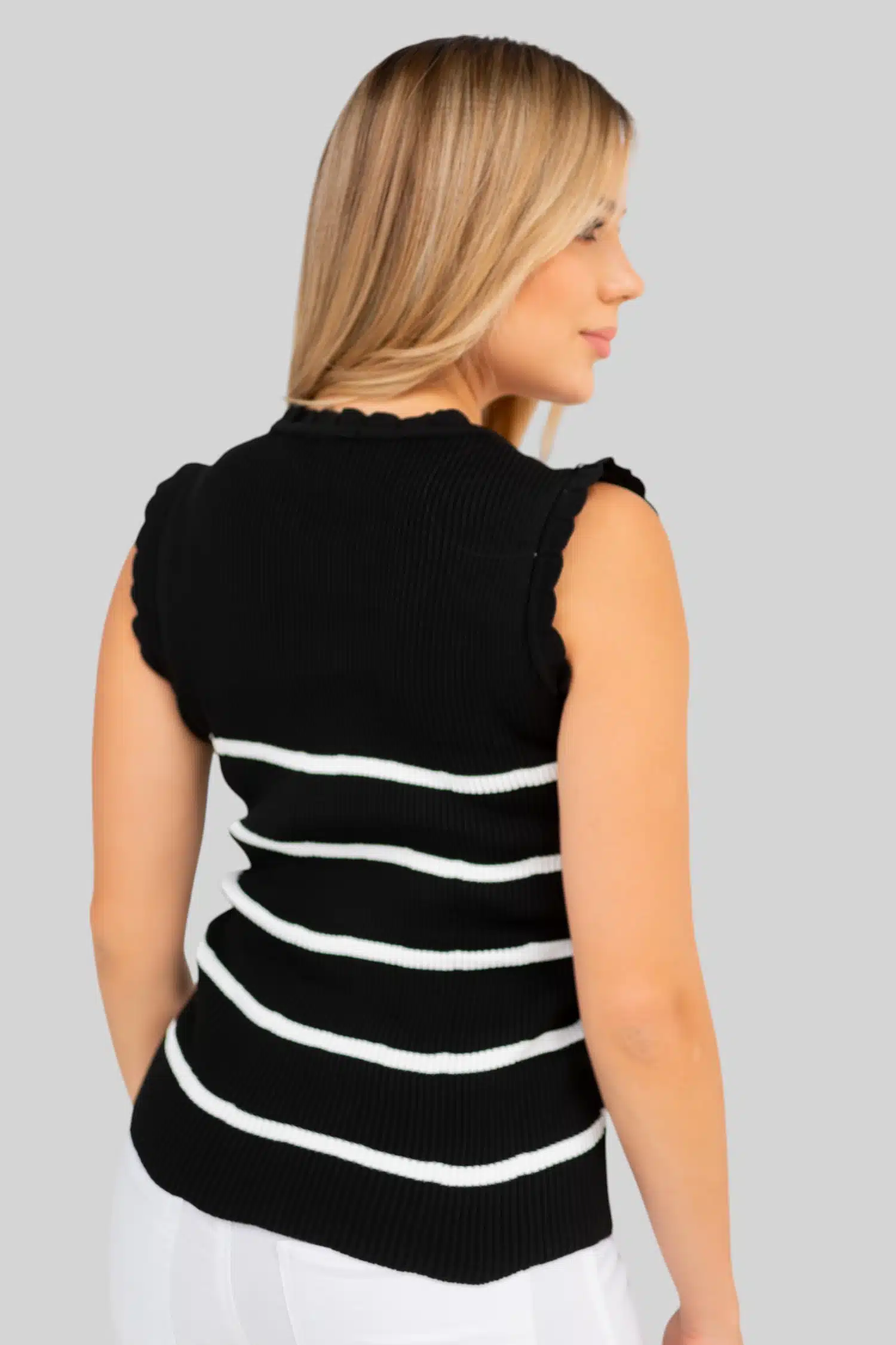 striped knit top black
