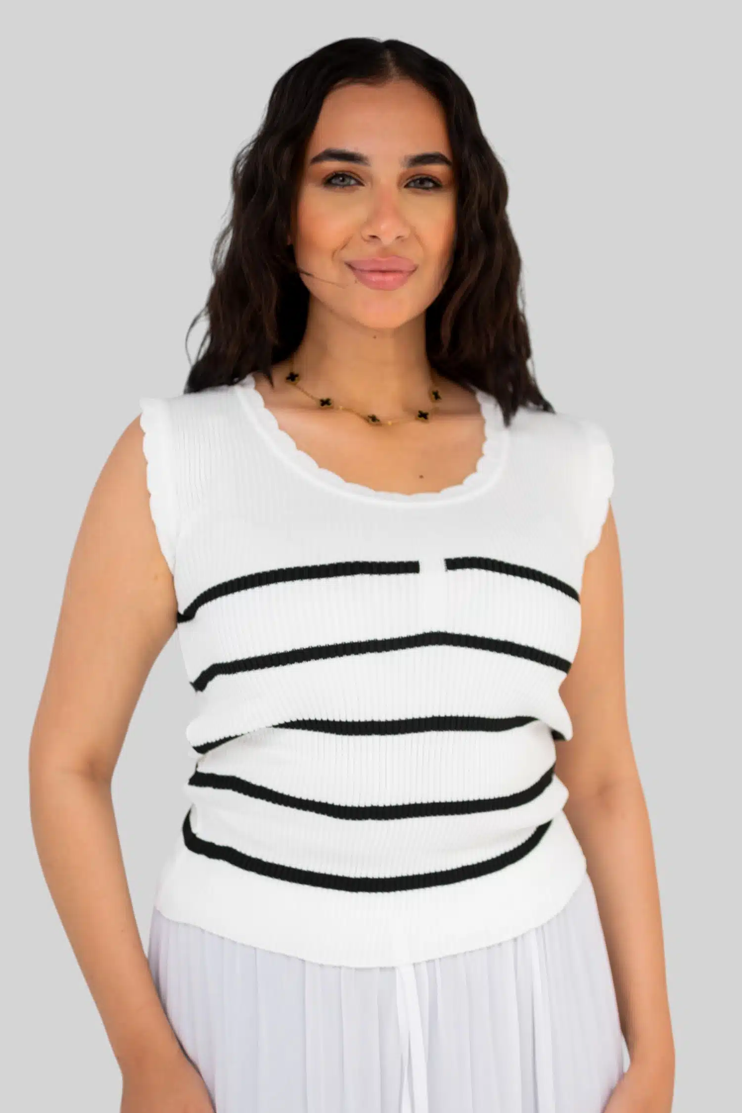striped knit top white