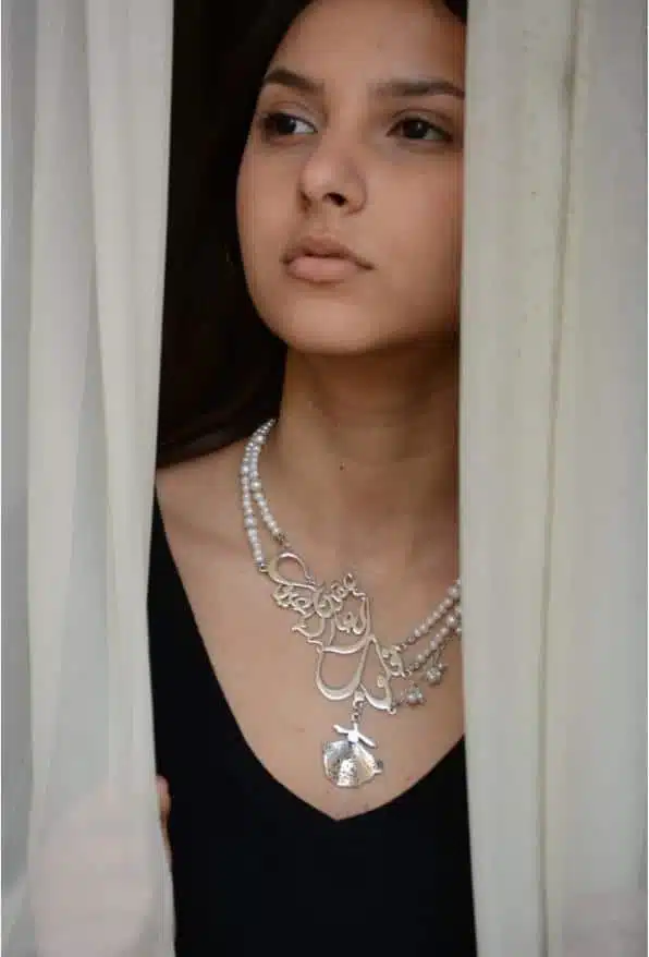 The pearl Sufi necklace has a verse of Sufi poem