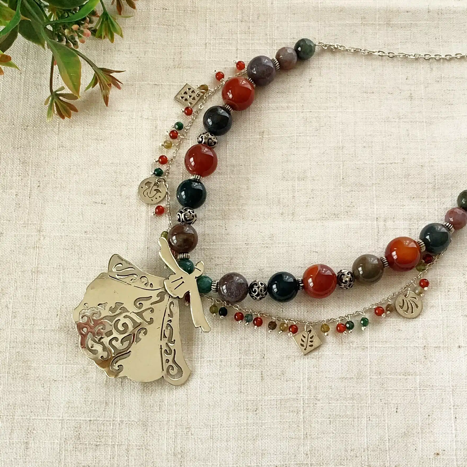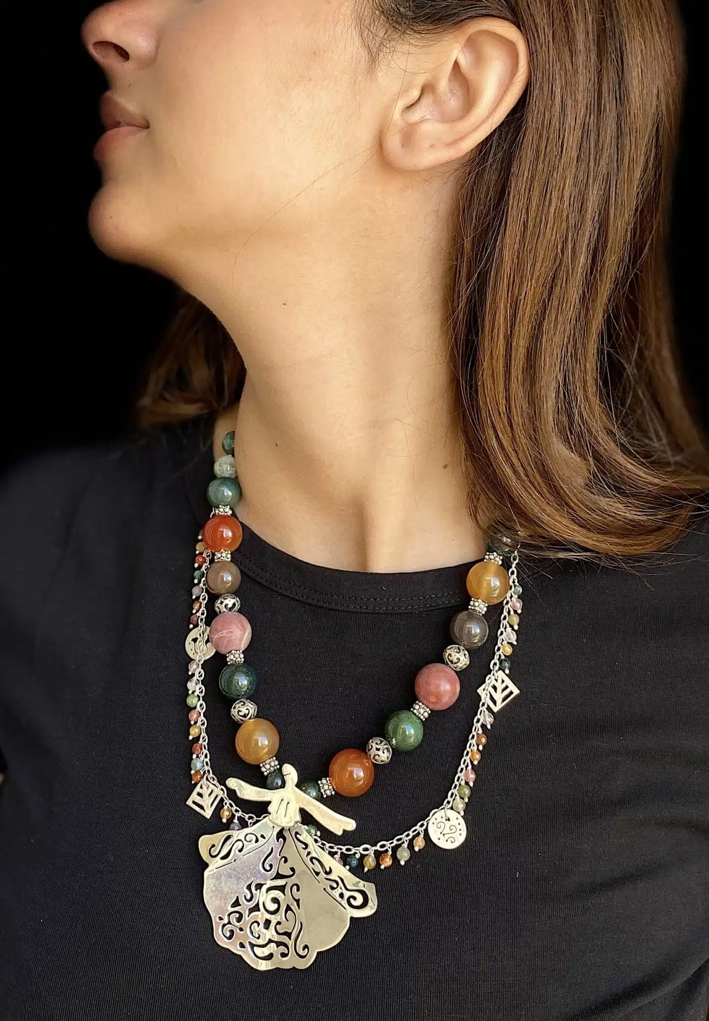 Sterling silver Darwish assembled with semiprecious agate and jasper stones that may vary from one piece to another