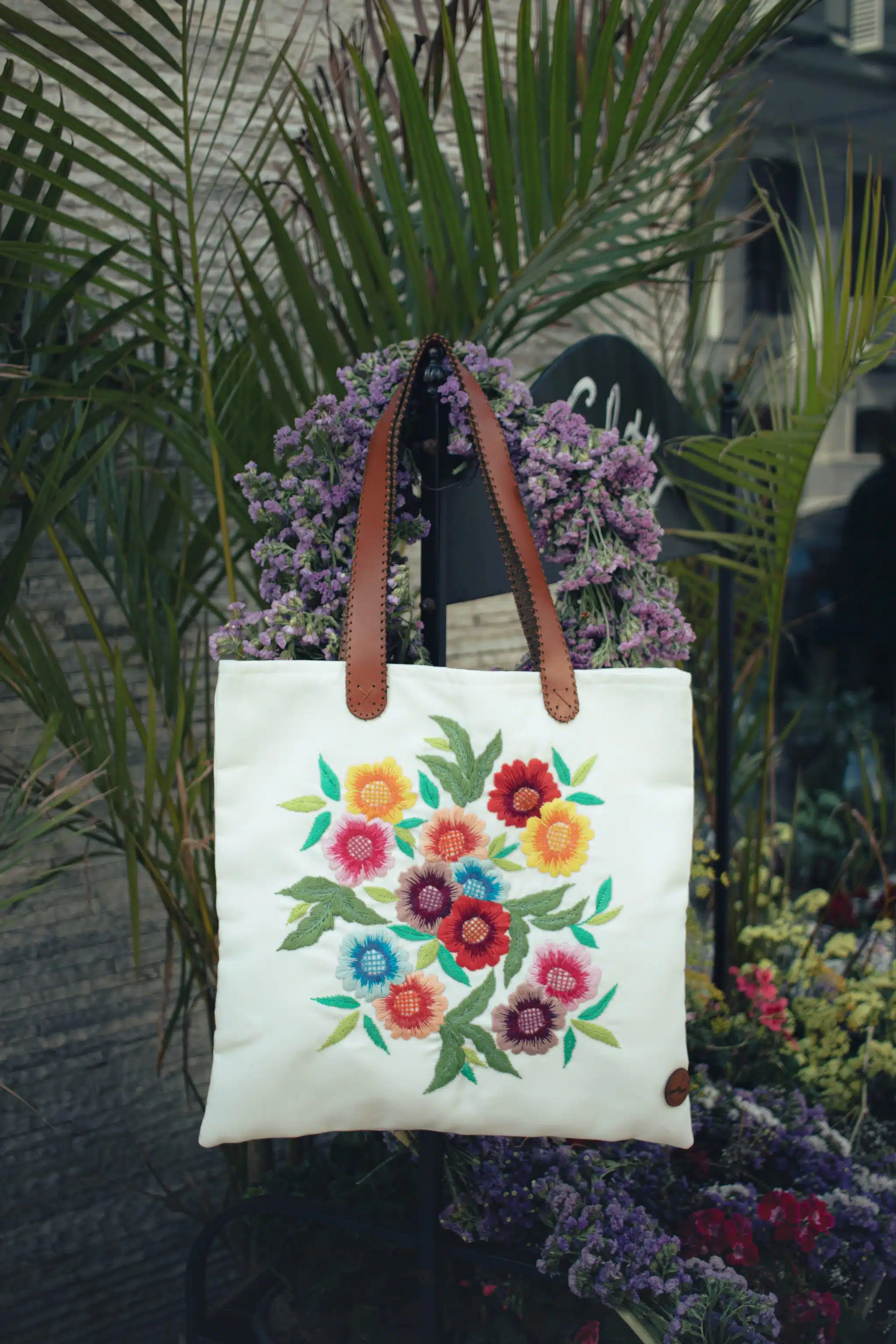 Handmade linen bag crafted from natural linen fabric, handle made of genuine leather. Size 40×40