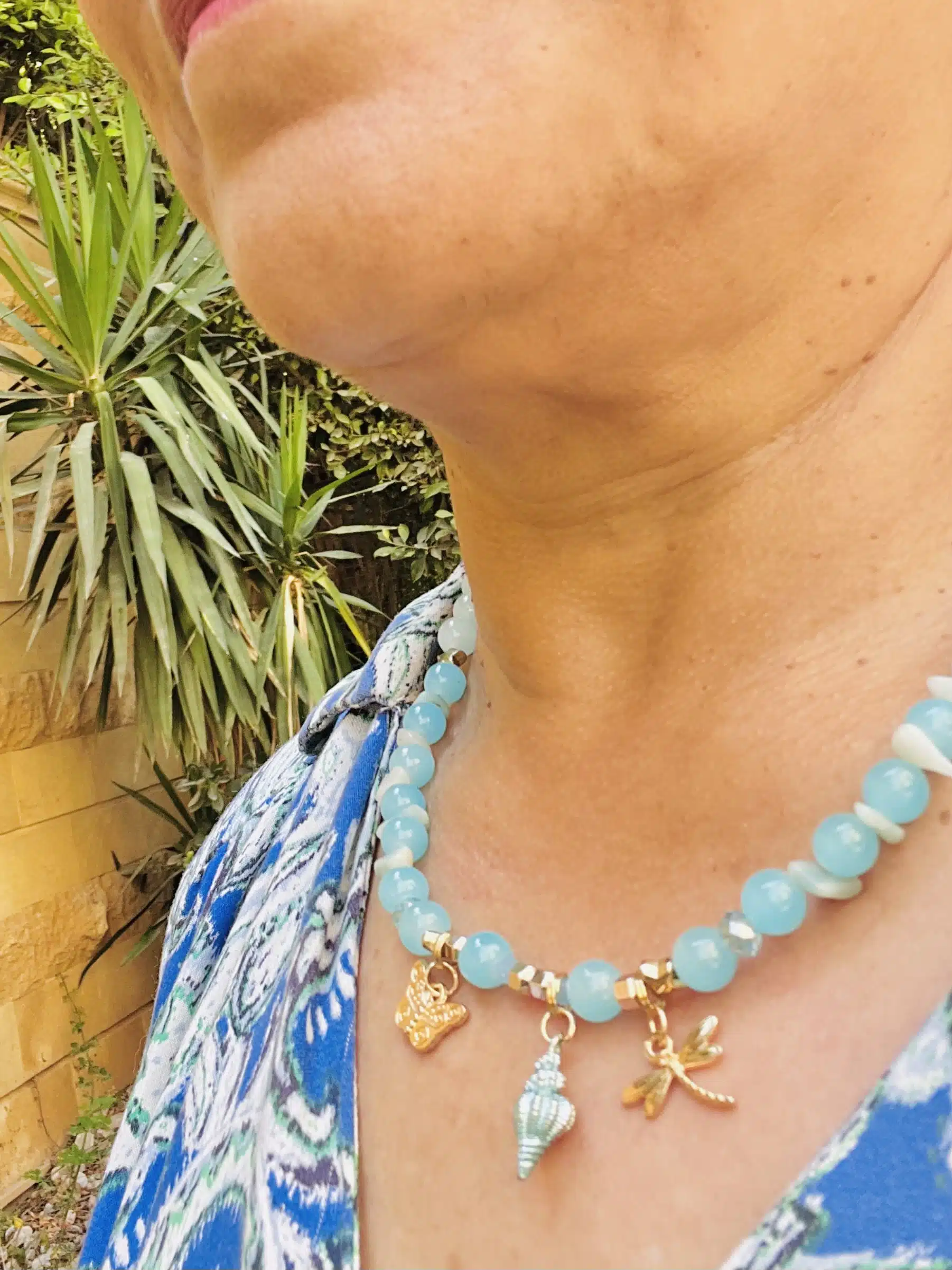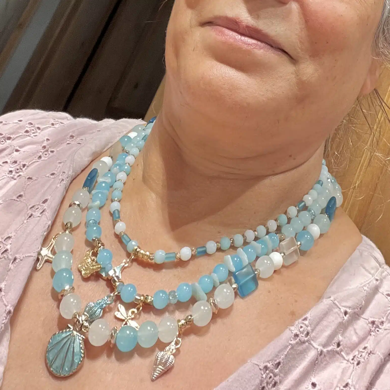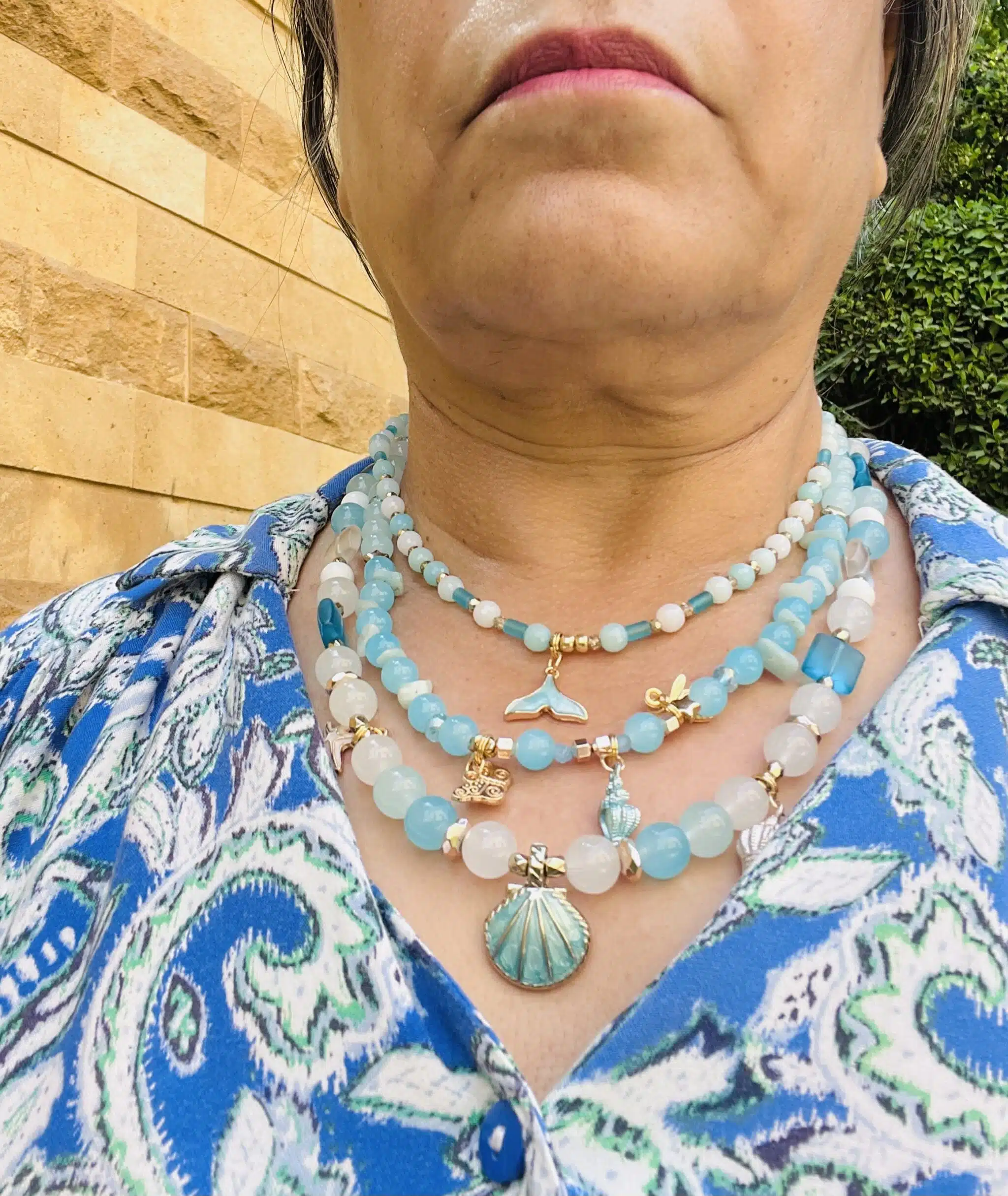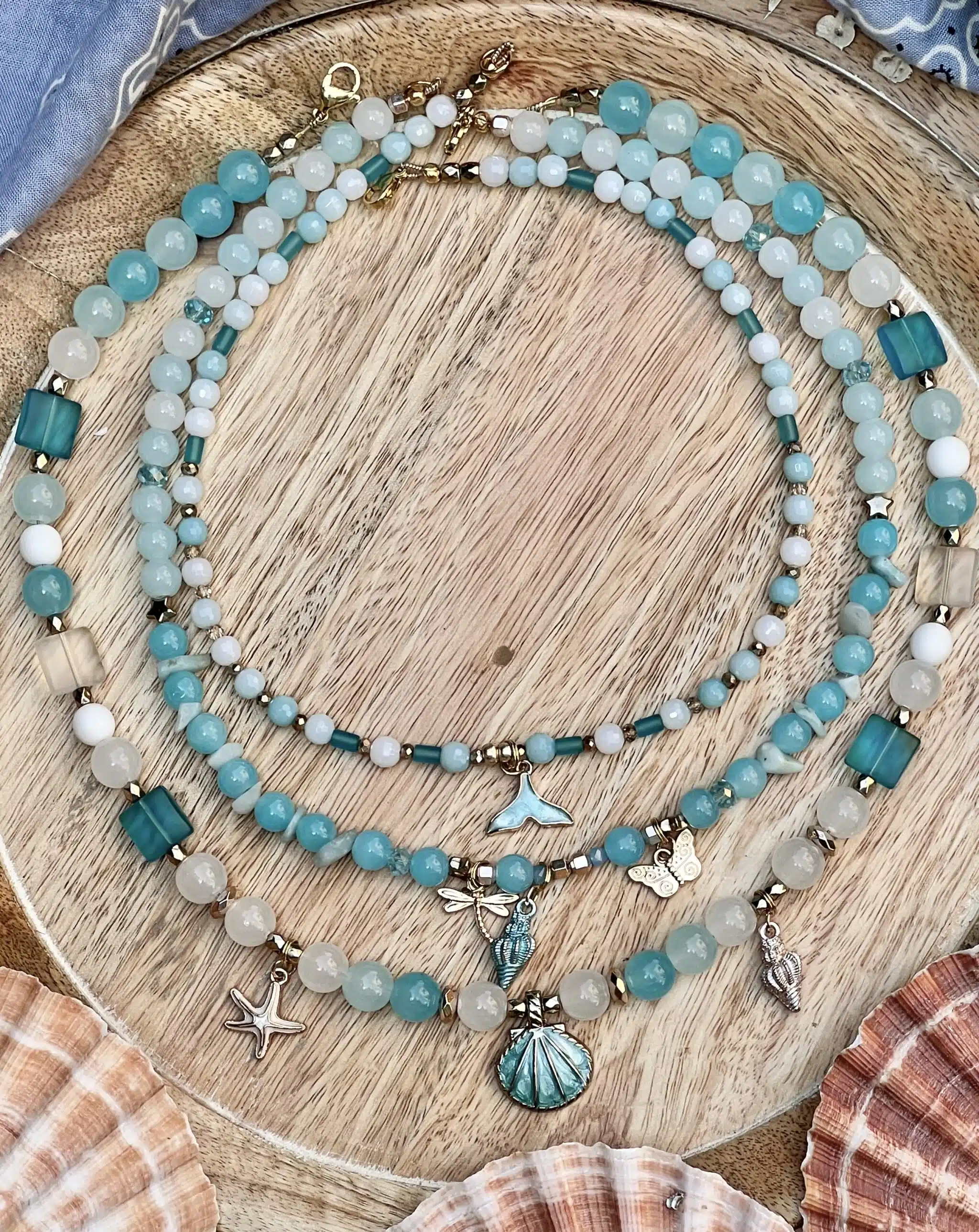Summer blue necklace stack, sold separately.