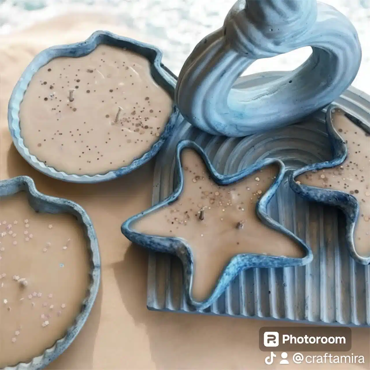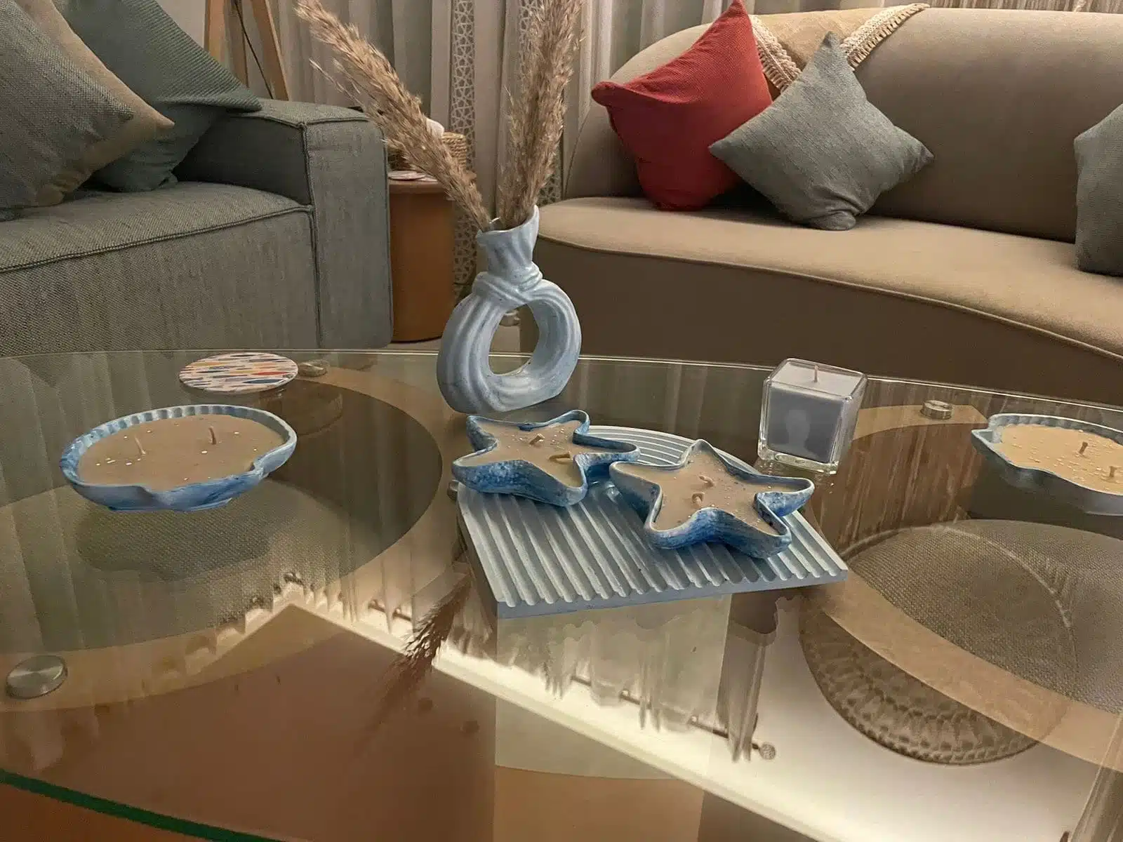 طقم مصمم يدويا ويمكن تغير الالوان وروايح الشمع والمشع مصنوع من شمع الصويا الطبيعي وشمع العسل