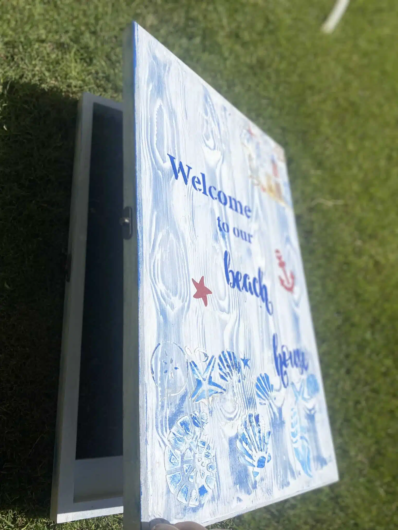 Wooden electricity box cover with summer theme