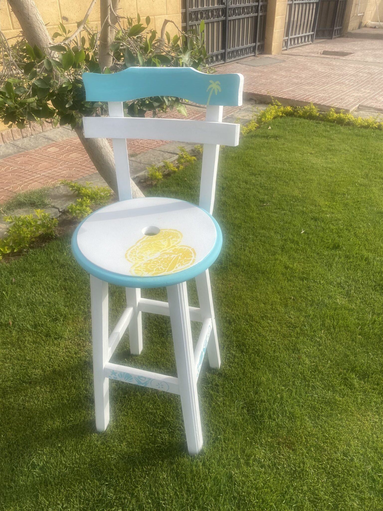 Wooden high chair with summer design
