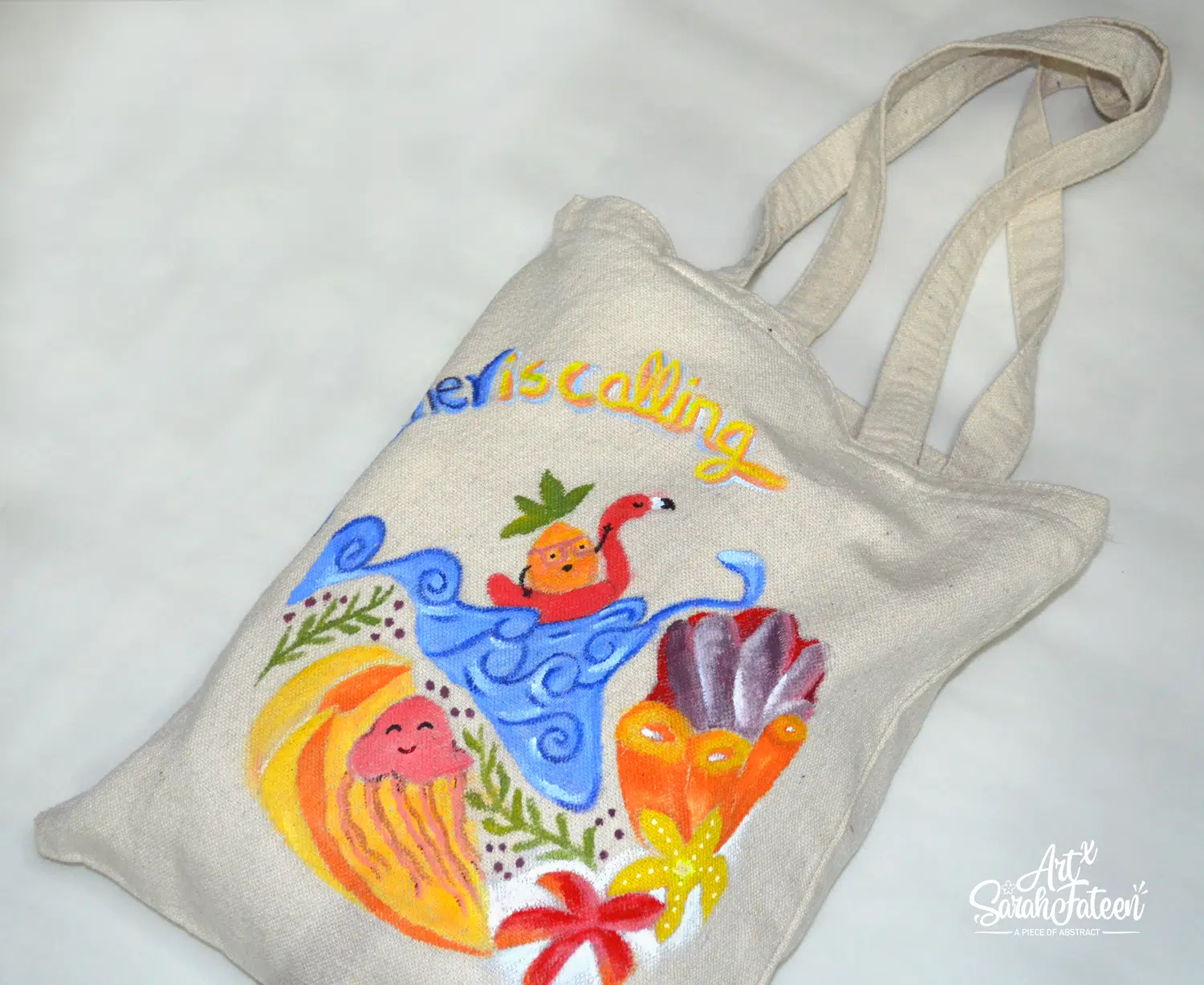 Summer is calling handmade painting tote bag