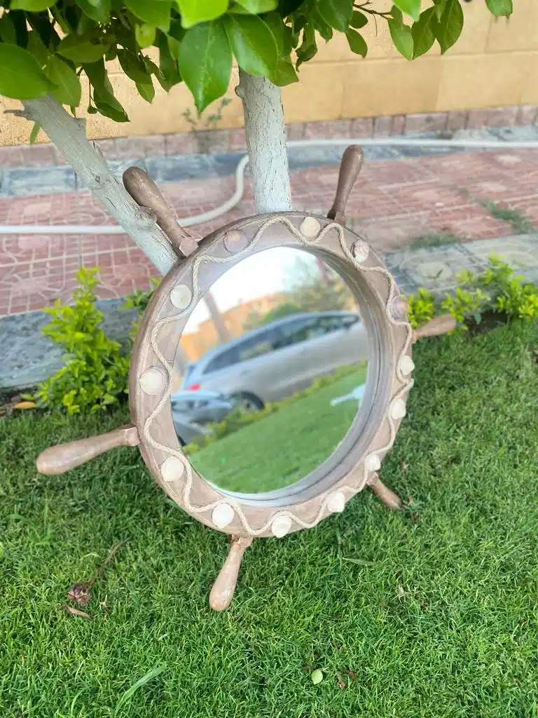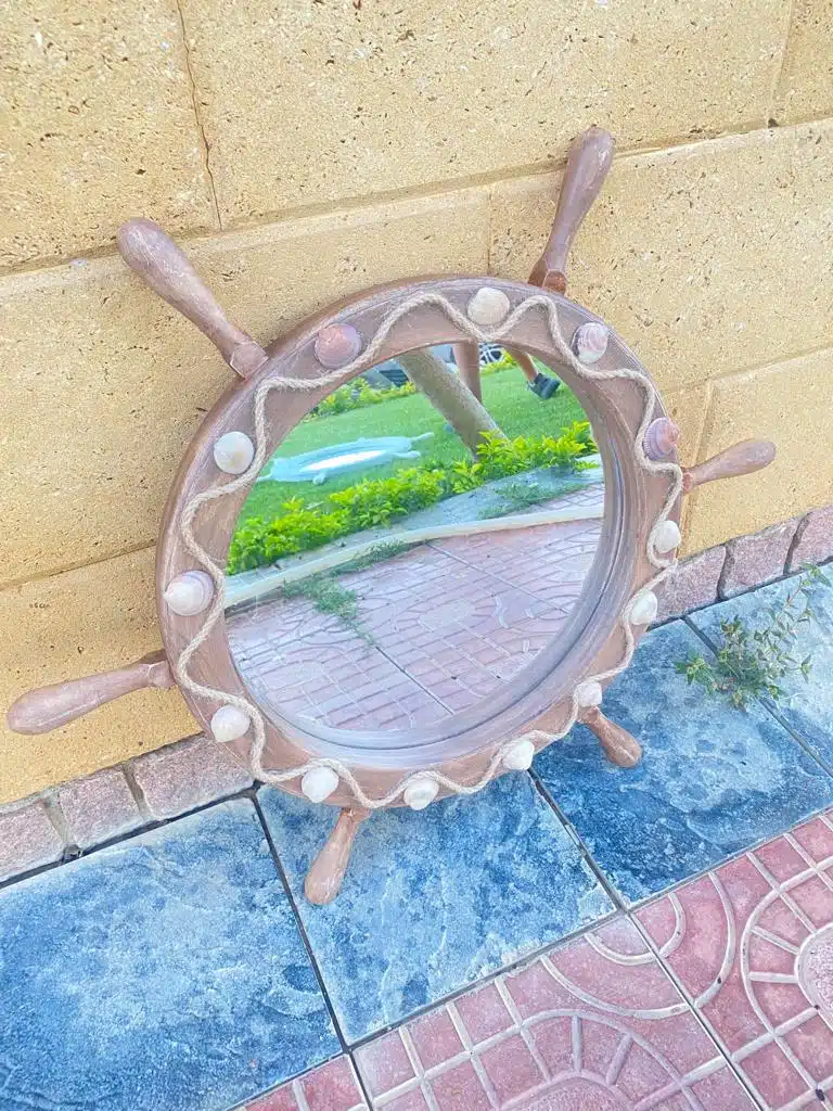 Wooden mirror in summer wheel design with sea shells