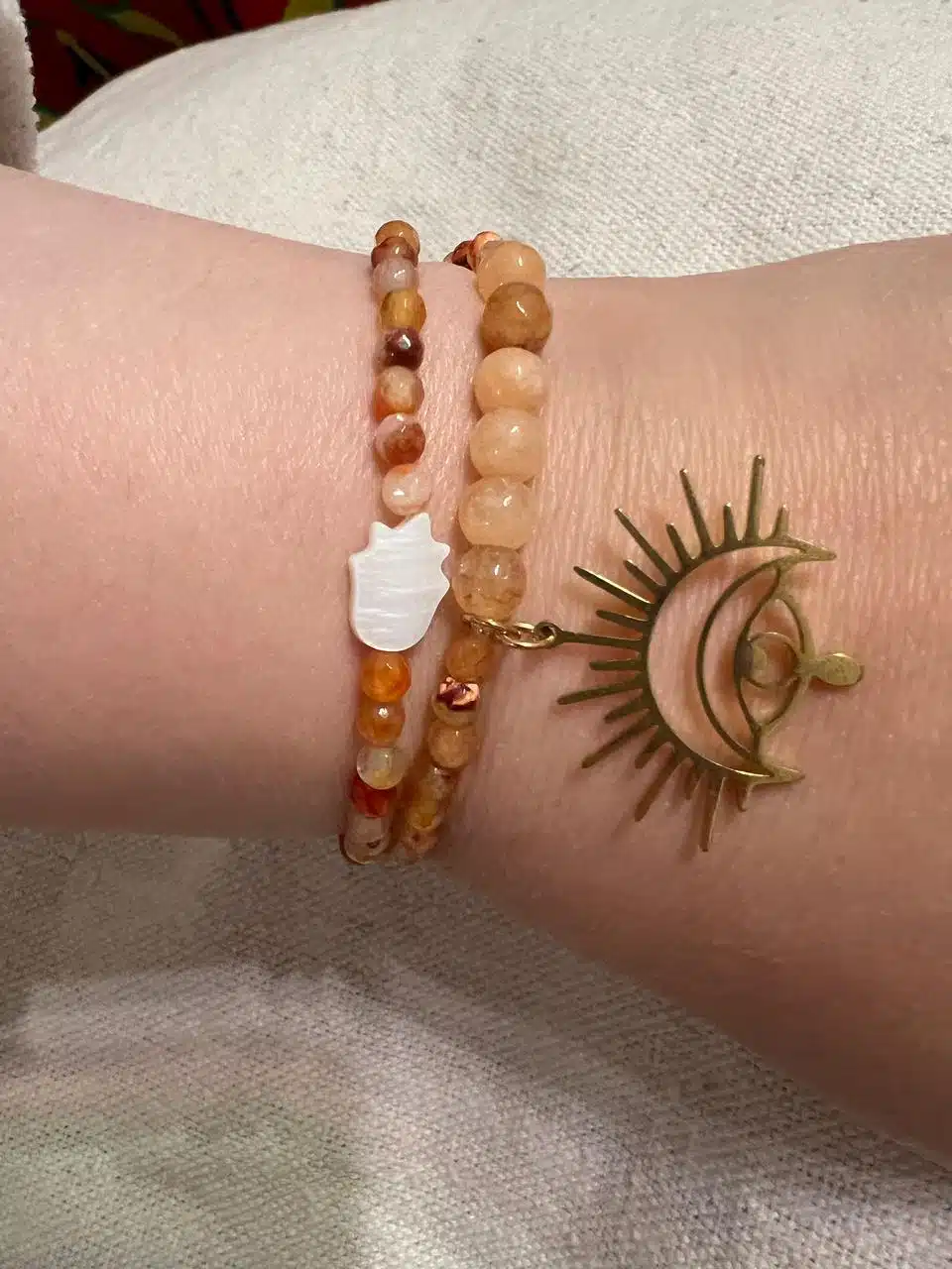 Set of 2 Bracelets with sunlight shades and different sizes of stones