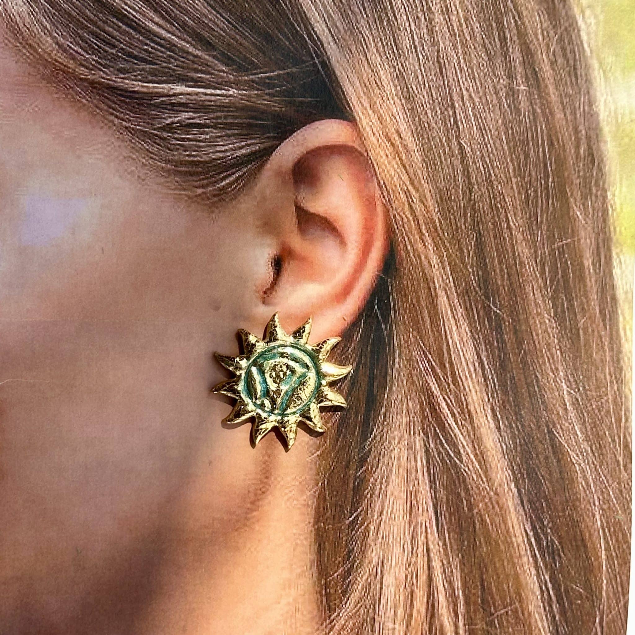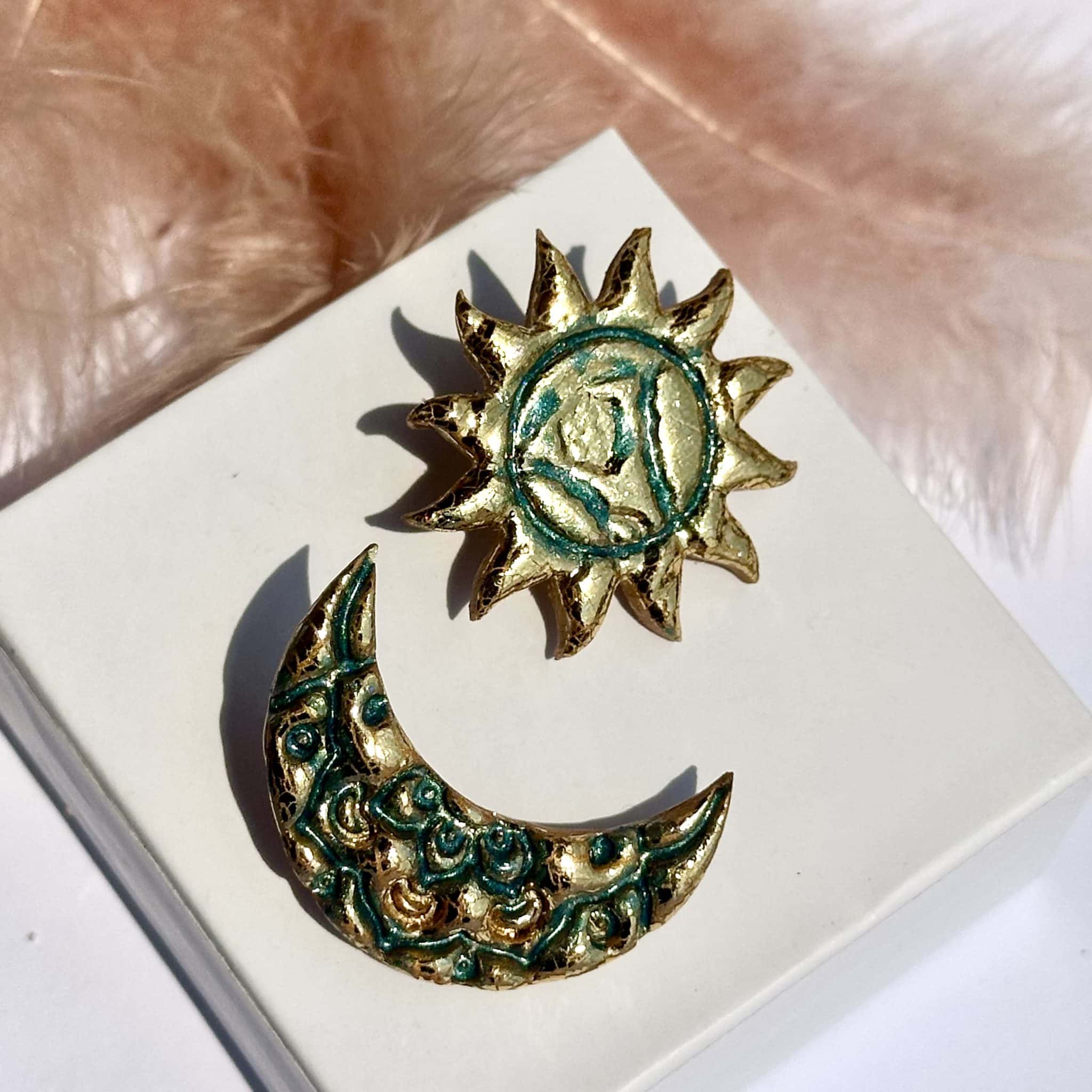 Expertly handcrafted, the Sun&moon earrings feature a stunning design of the sun and moon. Made with high-quality materials, they are both stylish and durable. Add a touch of celestial beauty to your outfit with these unique earrings.