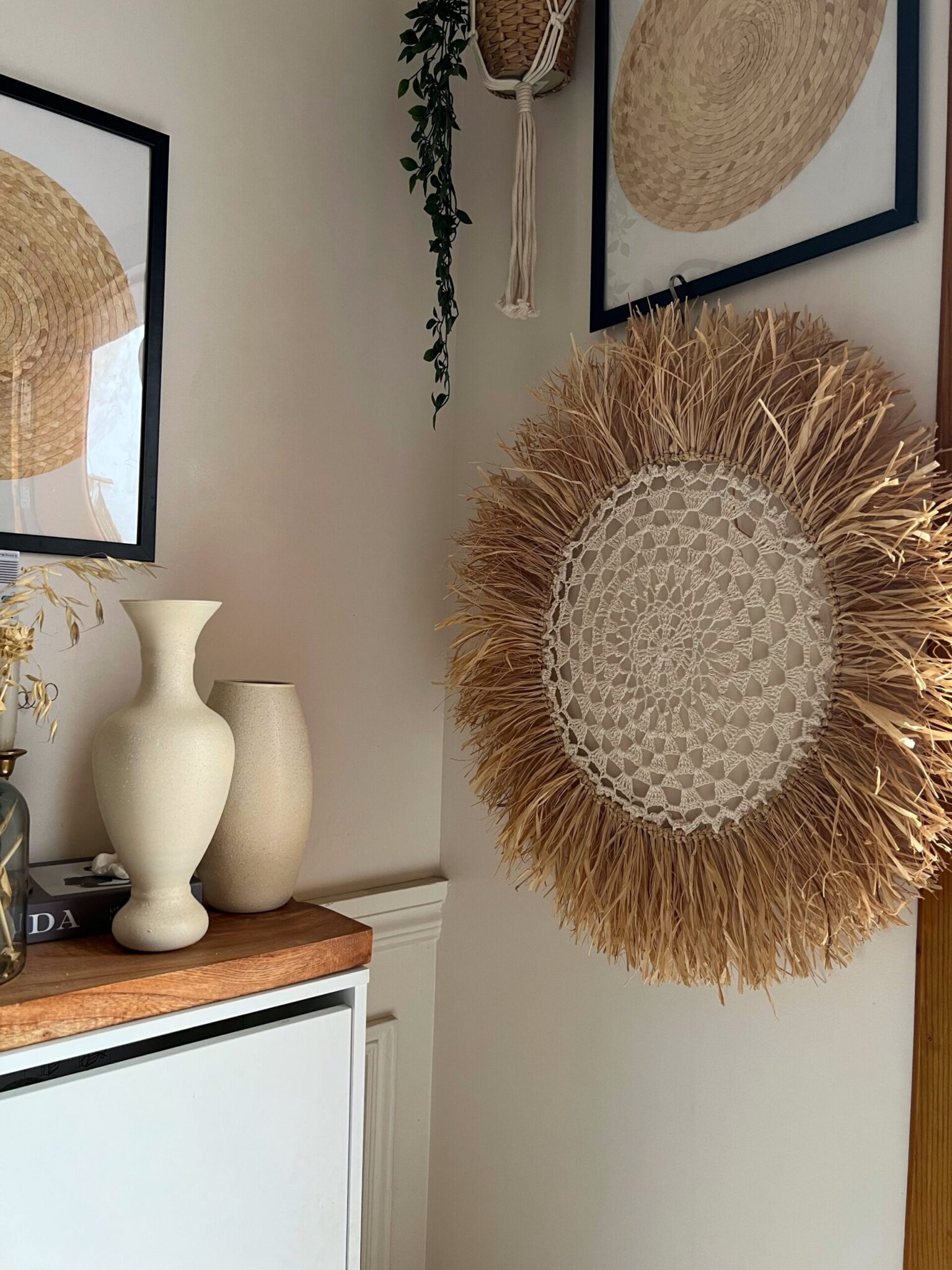 Sunshine wall hanging made of natural imported raffia x cotton yarn to fit your living room perfectly