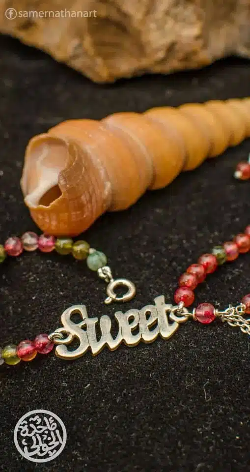 centered with a handmade silver “sweet” with agate gesmtone and silver clasp
