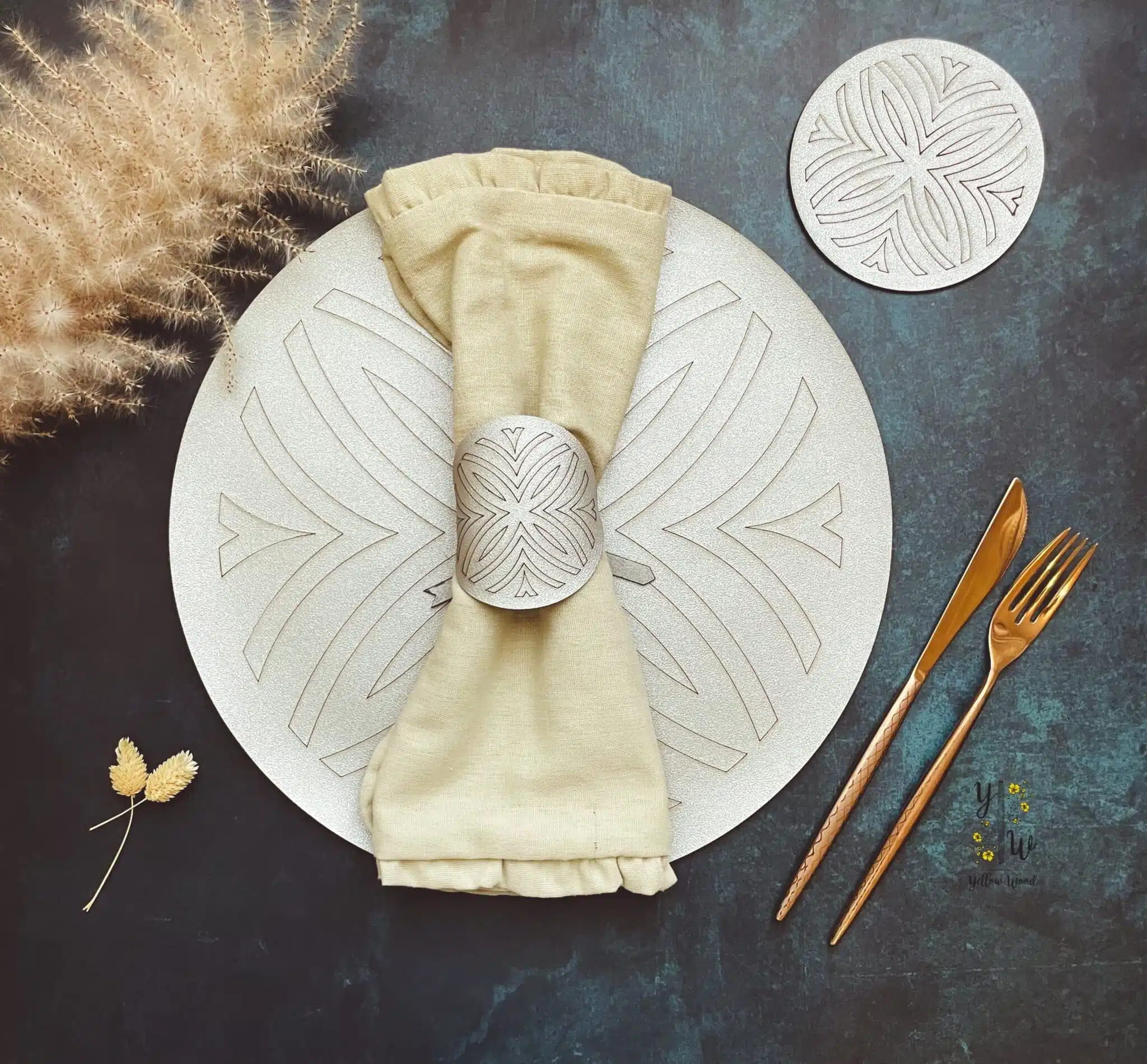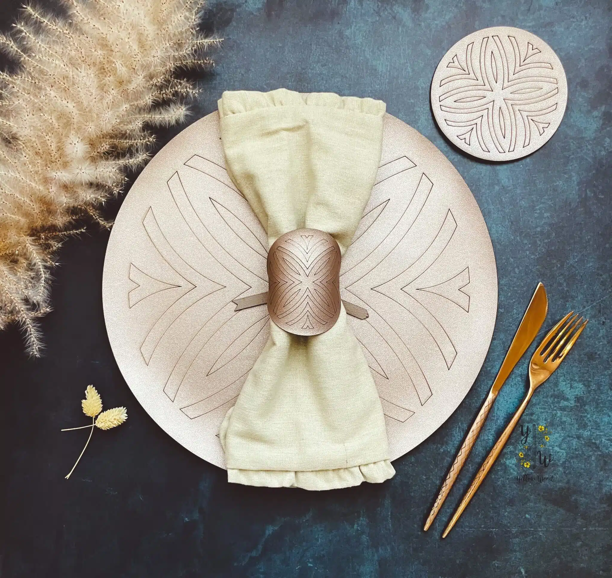 Symmetric Leather Placemats, Coasters & Napkin Holders