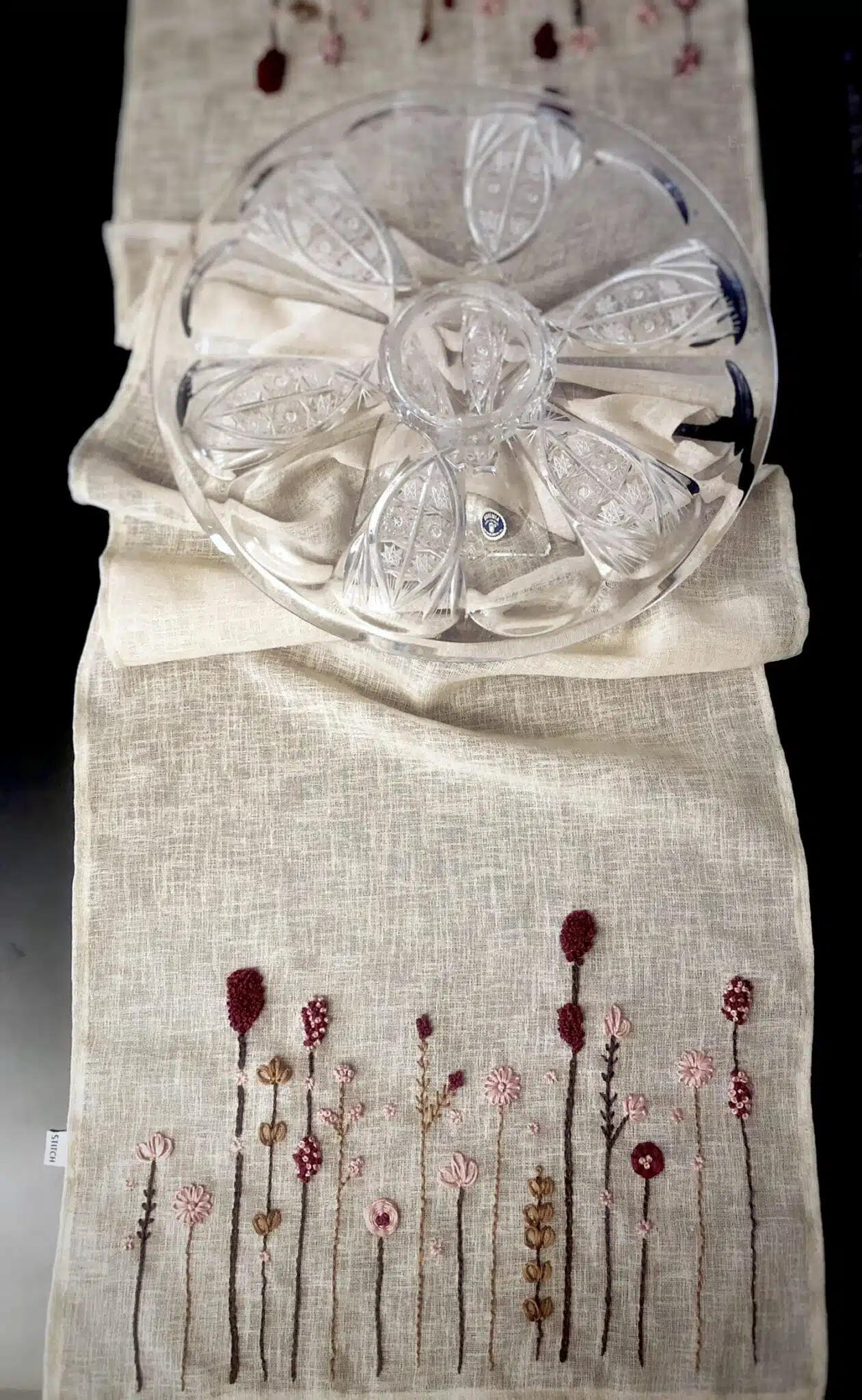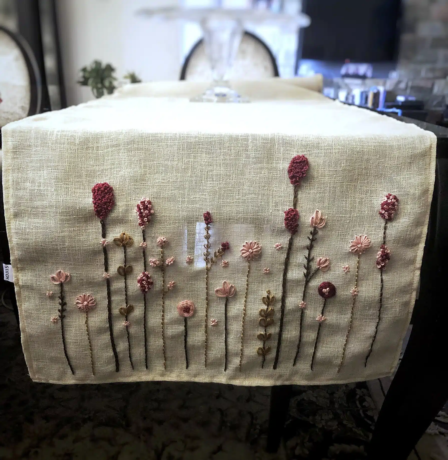 Table runner embroidered on both ends.