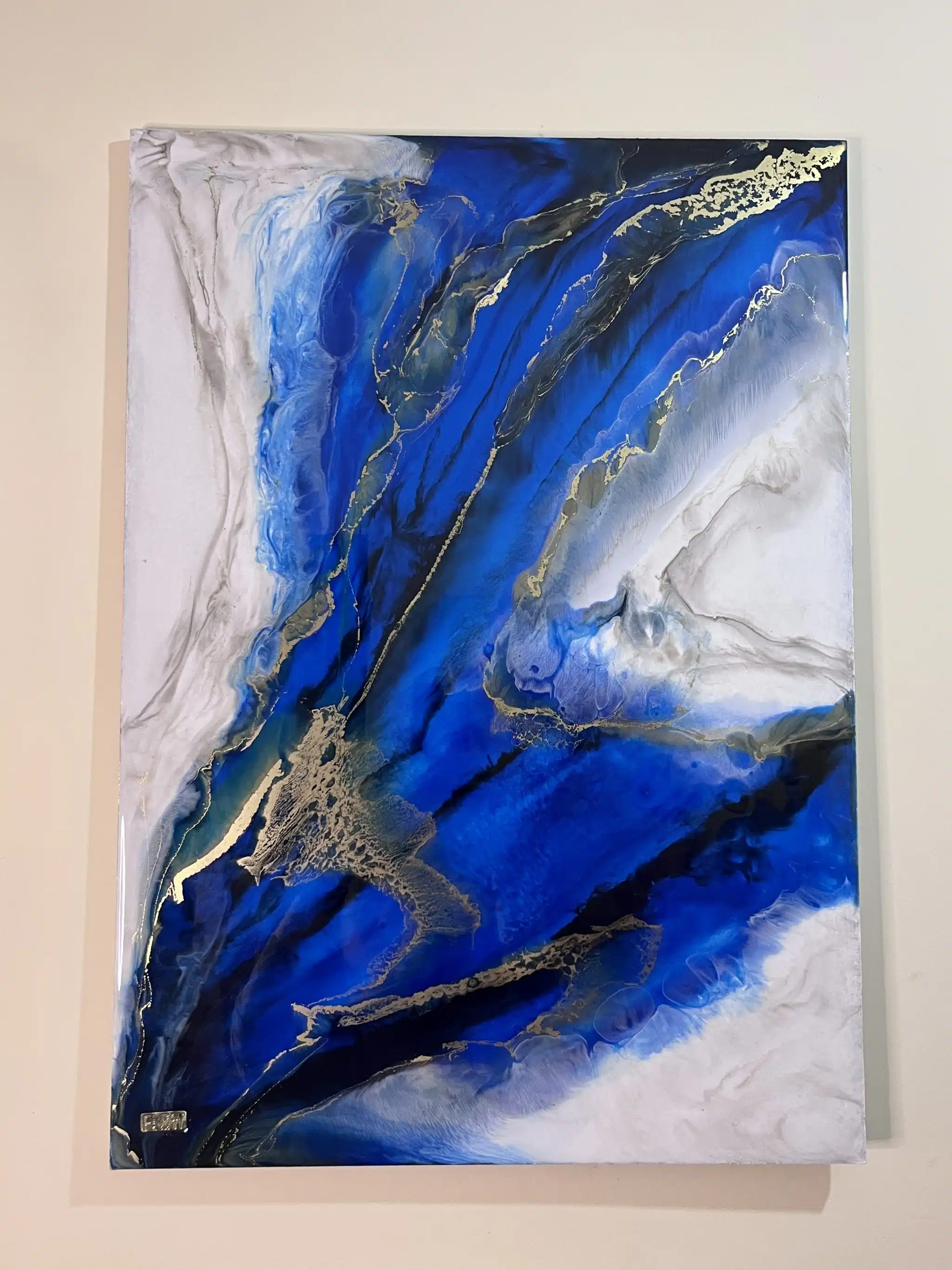Handmade of epoxy resin on wood. Size: 50 x 70 Cm. Glossy surface.