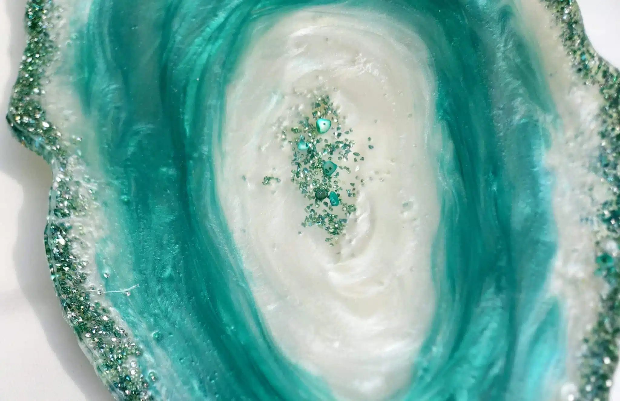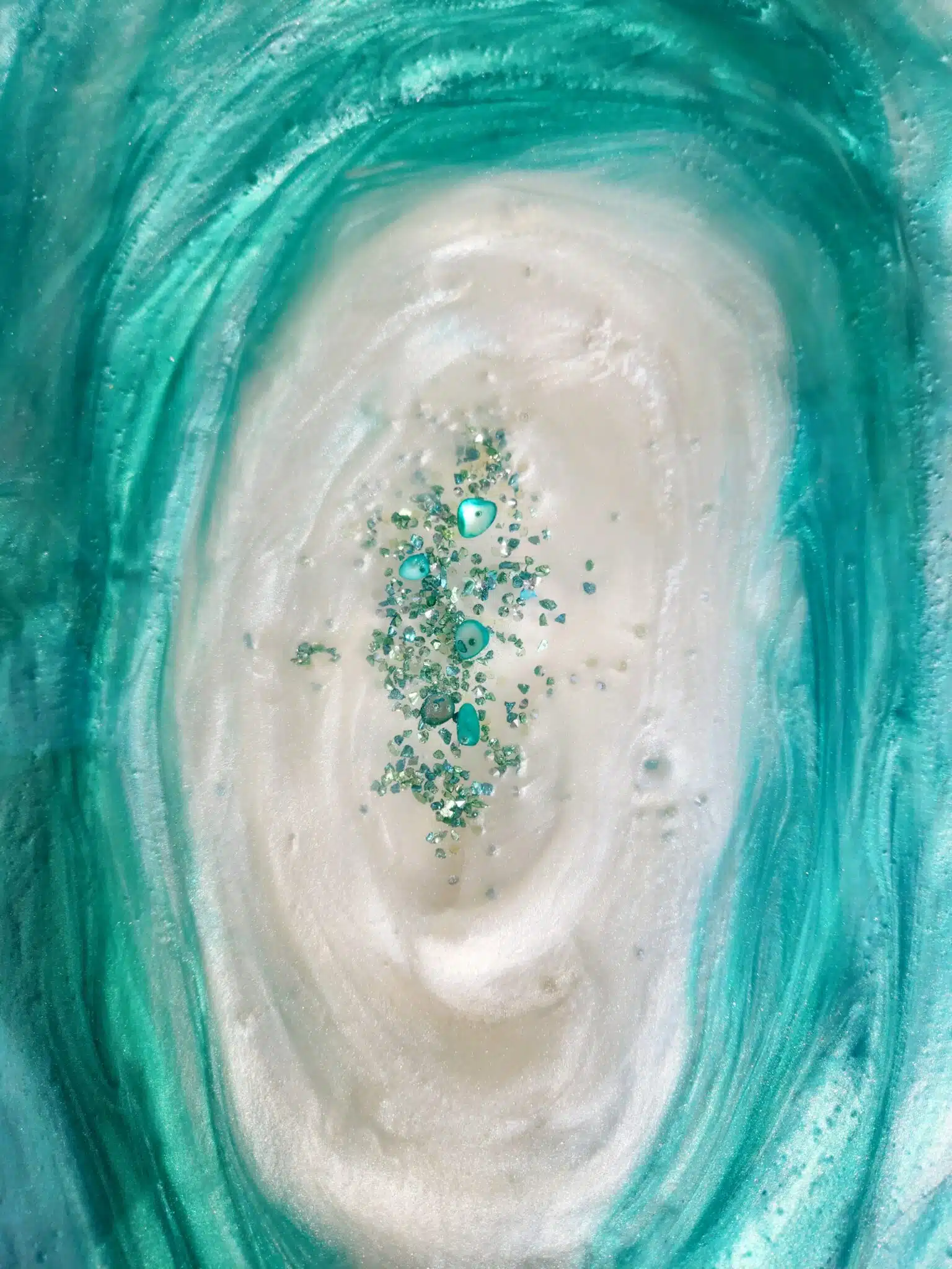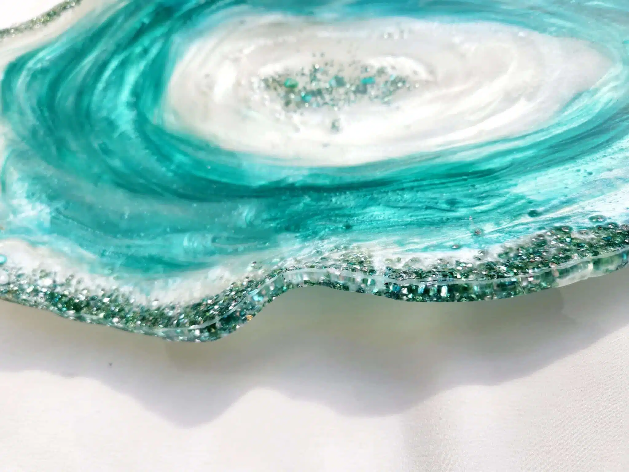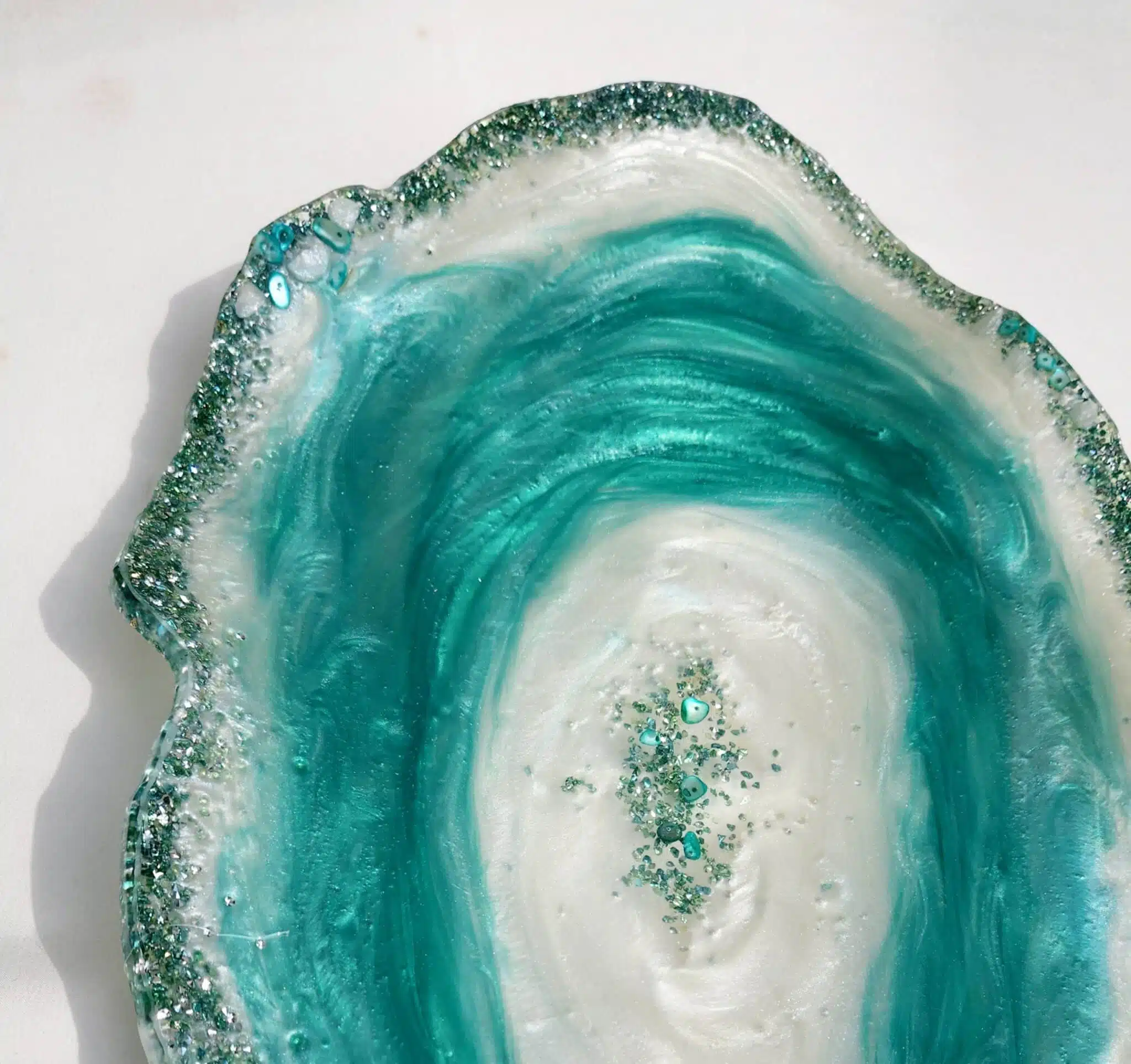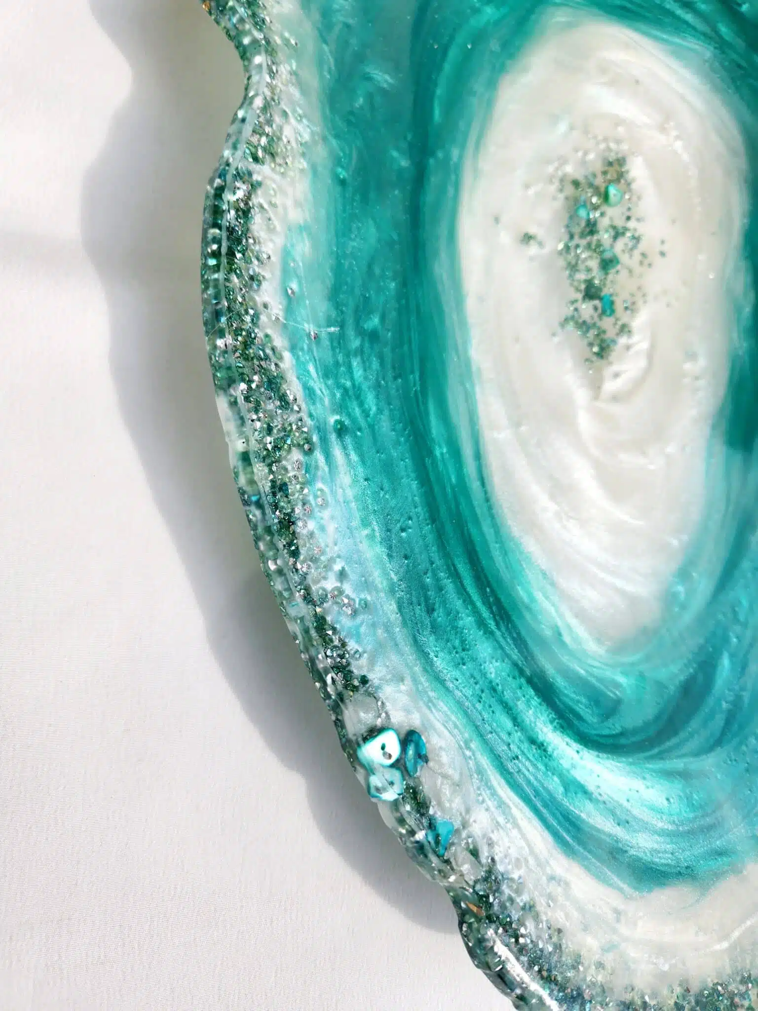 Light weighted durable made from resin inlaid with natural stones and crystals ..