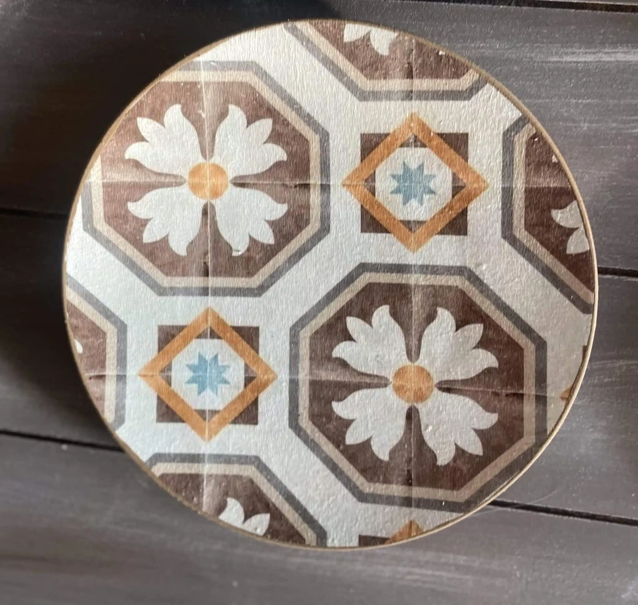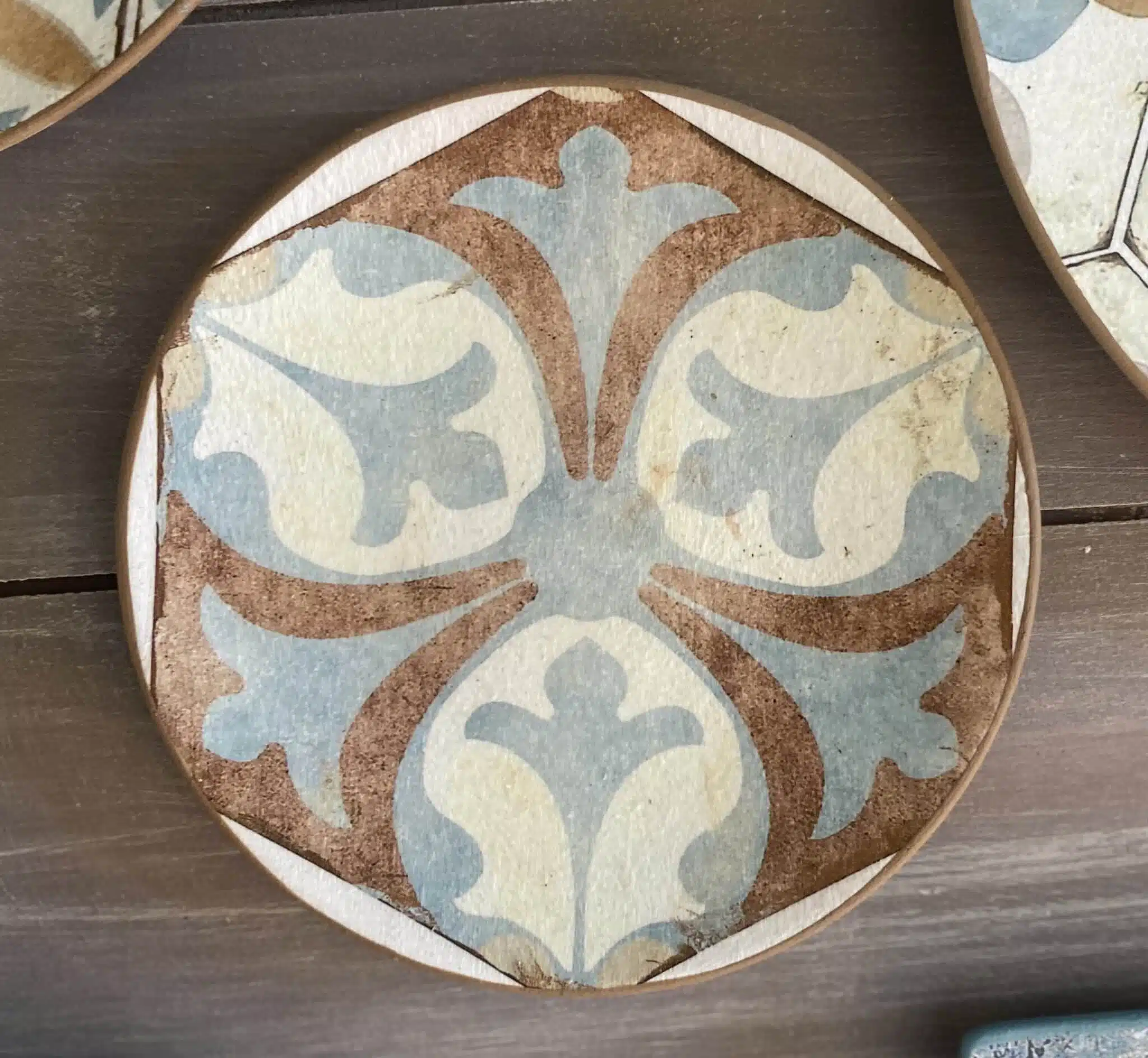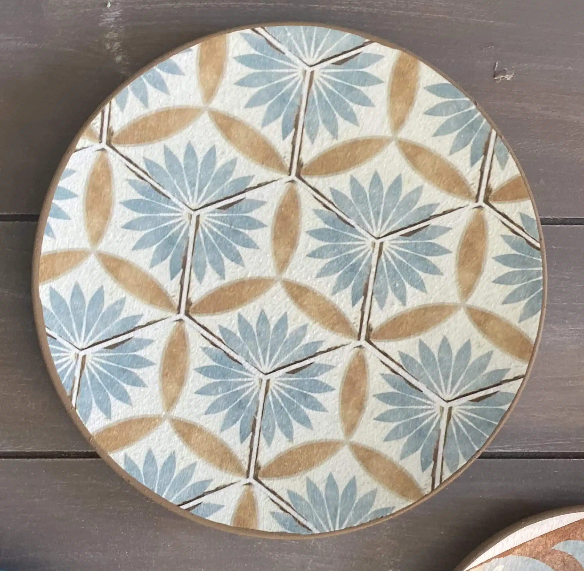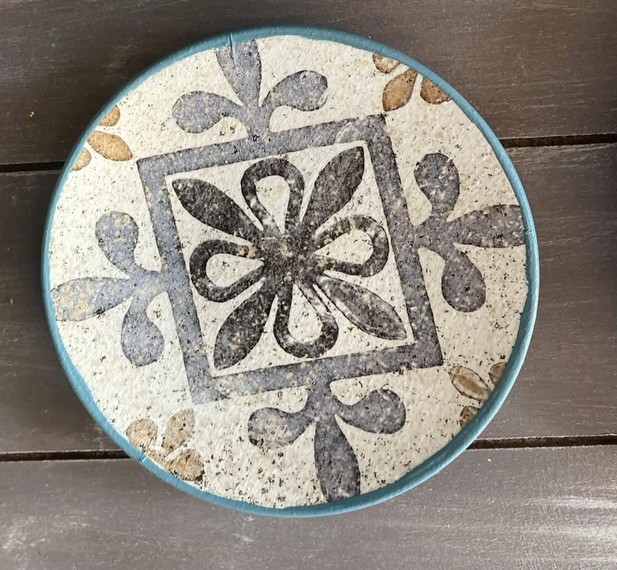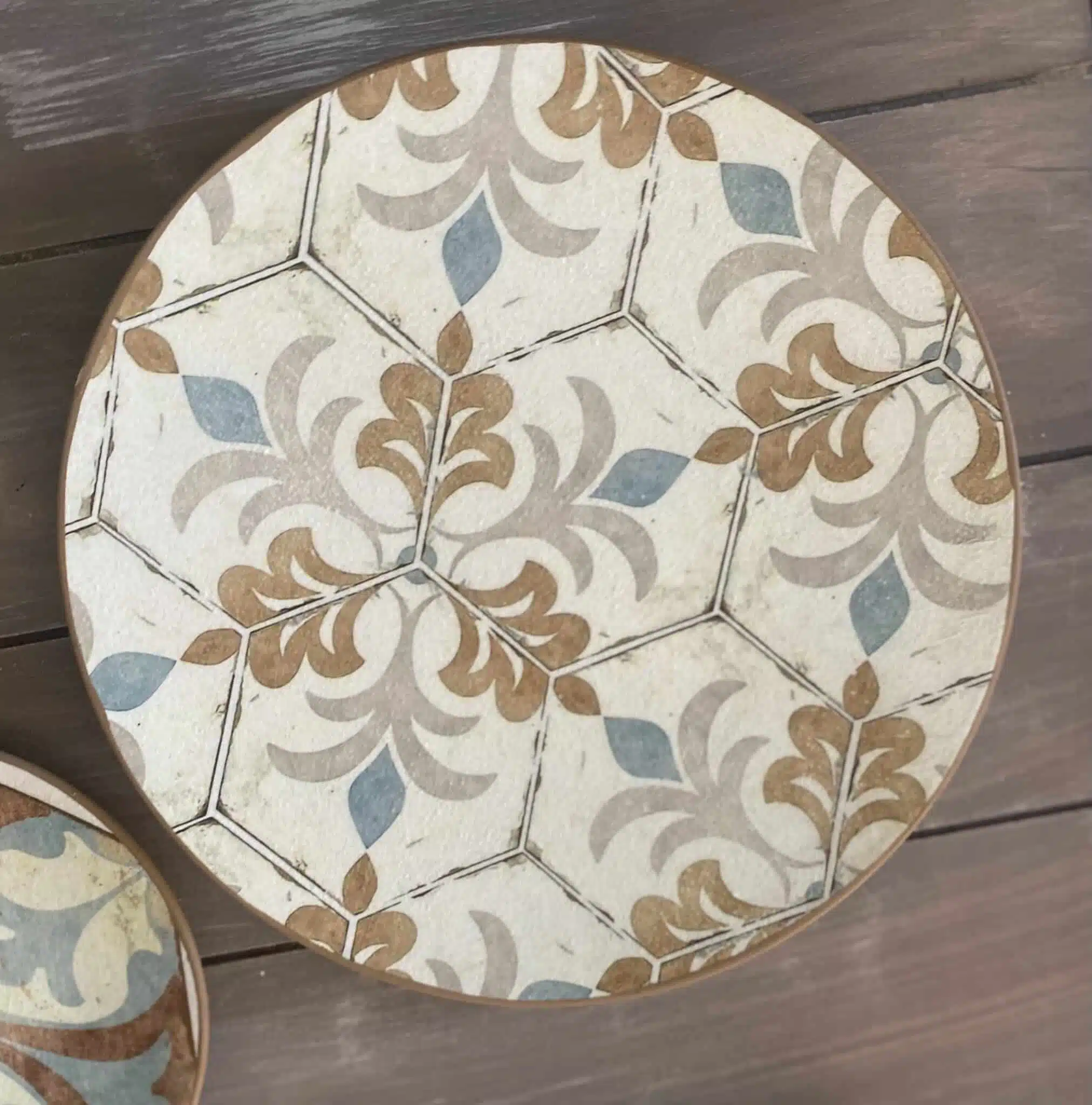 Decoupaged wall plates in Spanish tiles design and teal color