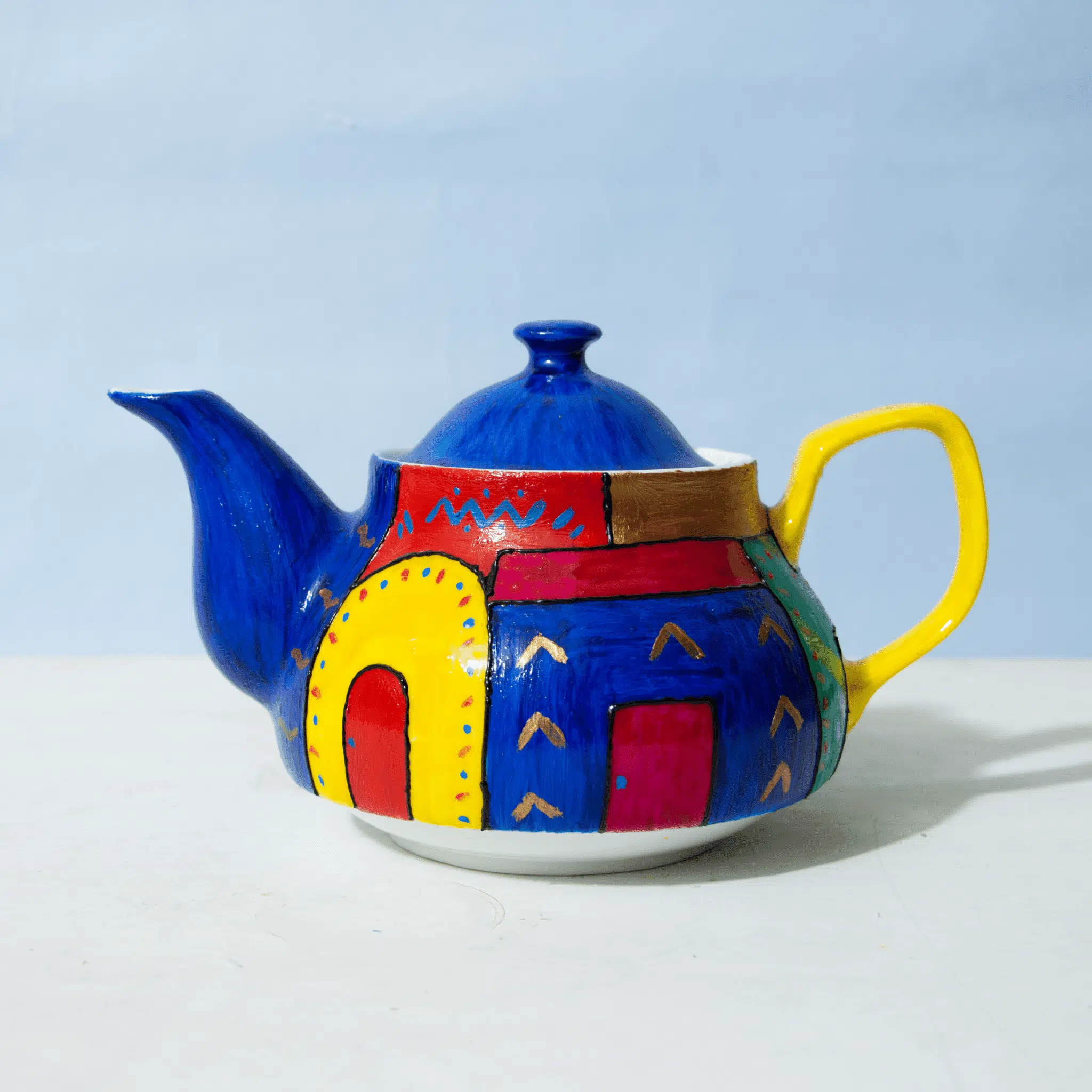 Nubian houses hand painted porcelain teapot.