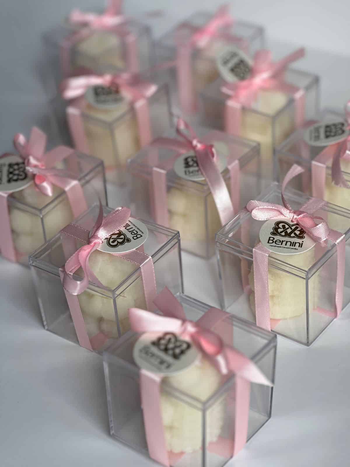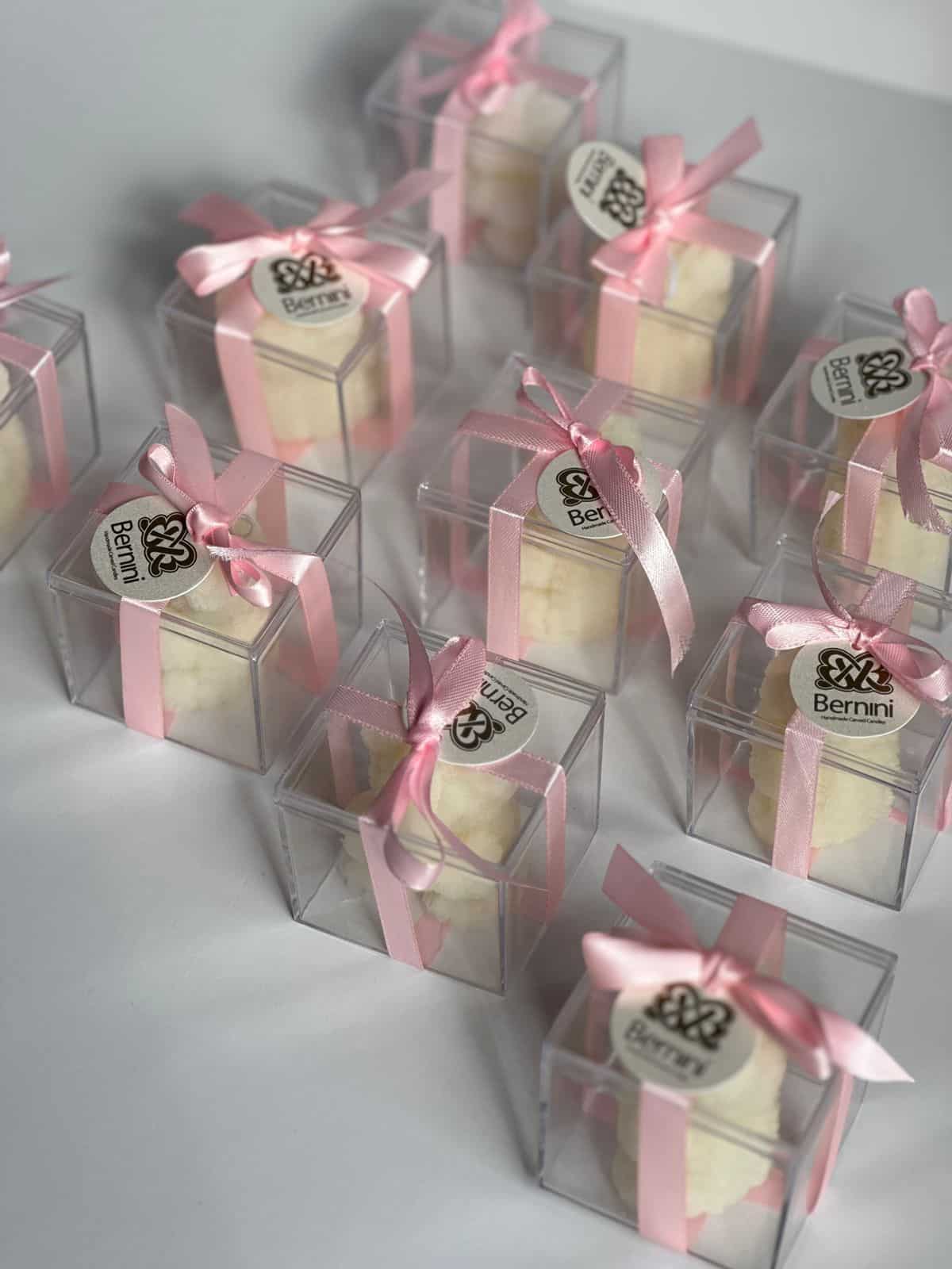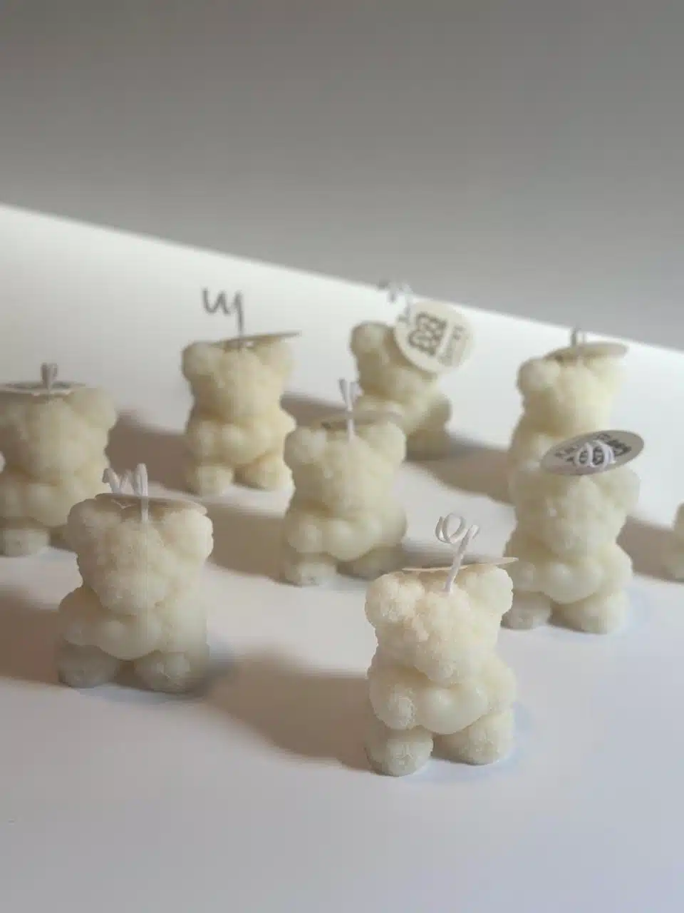 Scented Teddy bear candle enclosed in a beautiful acrylic box; wrapped with baby gender ribbons.