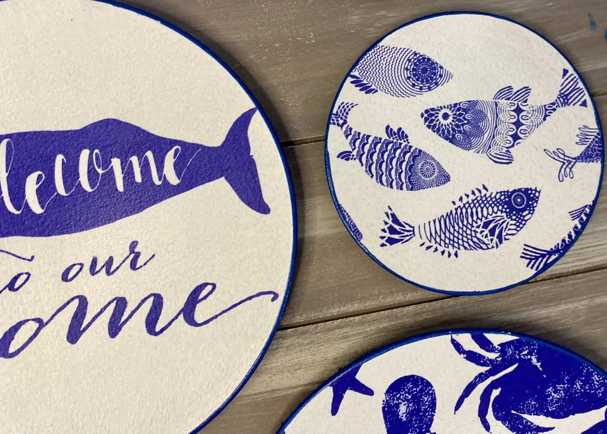 Decoupaged wall plates for summer