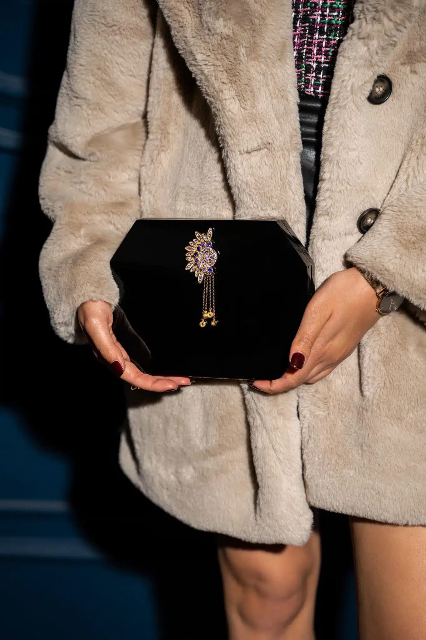 Watch our Detailed Footage of its space & your night out essentials to fit inside. Receive it with “your little darling’s” customized thank you Card, Off white Satin Bag, & Instruction Use Card.