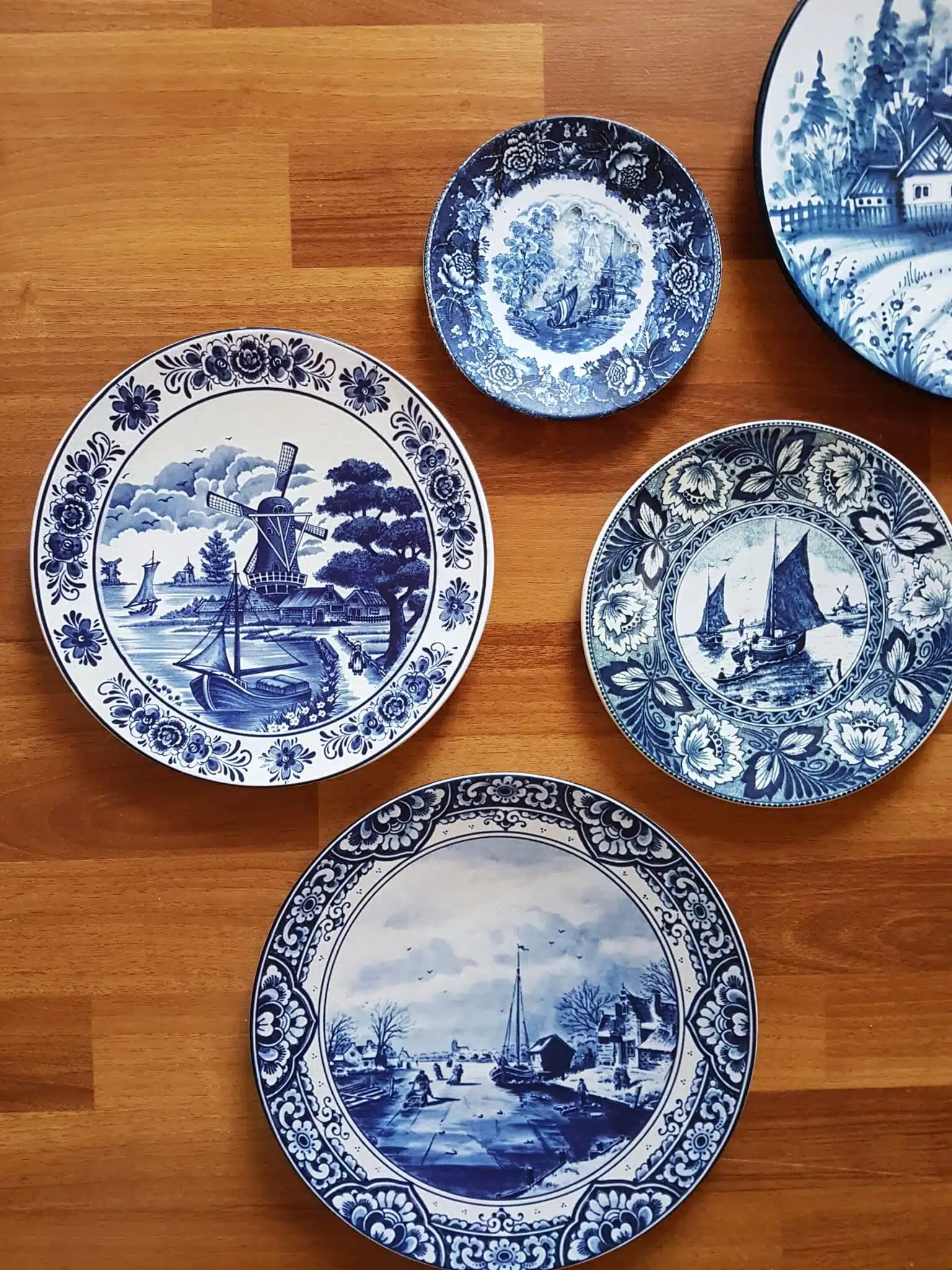 * Decoupaged porcelain decorative wall plates.