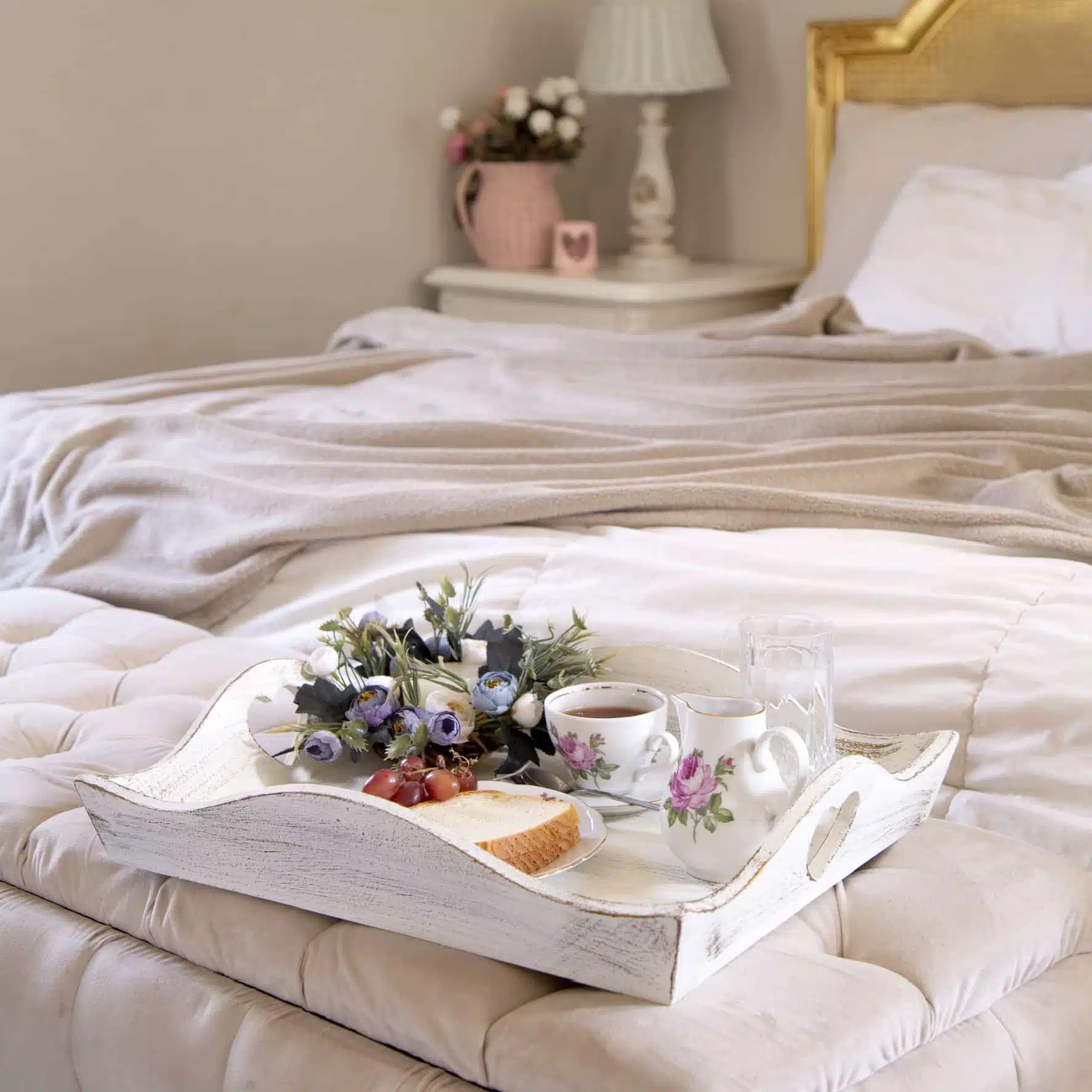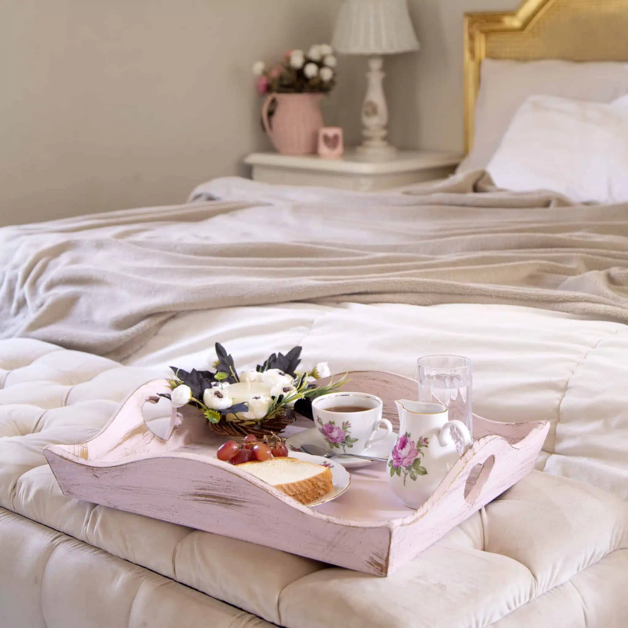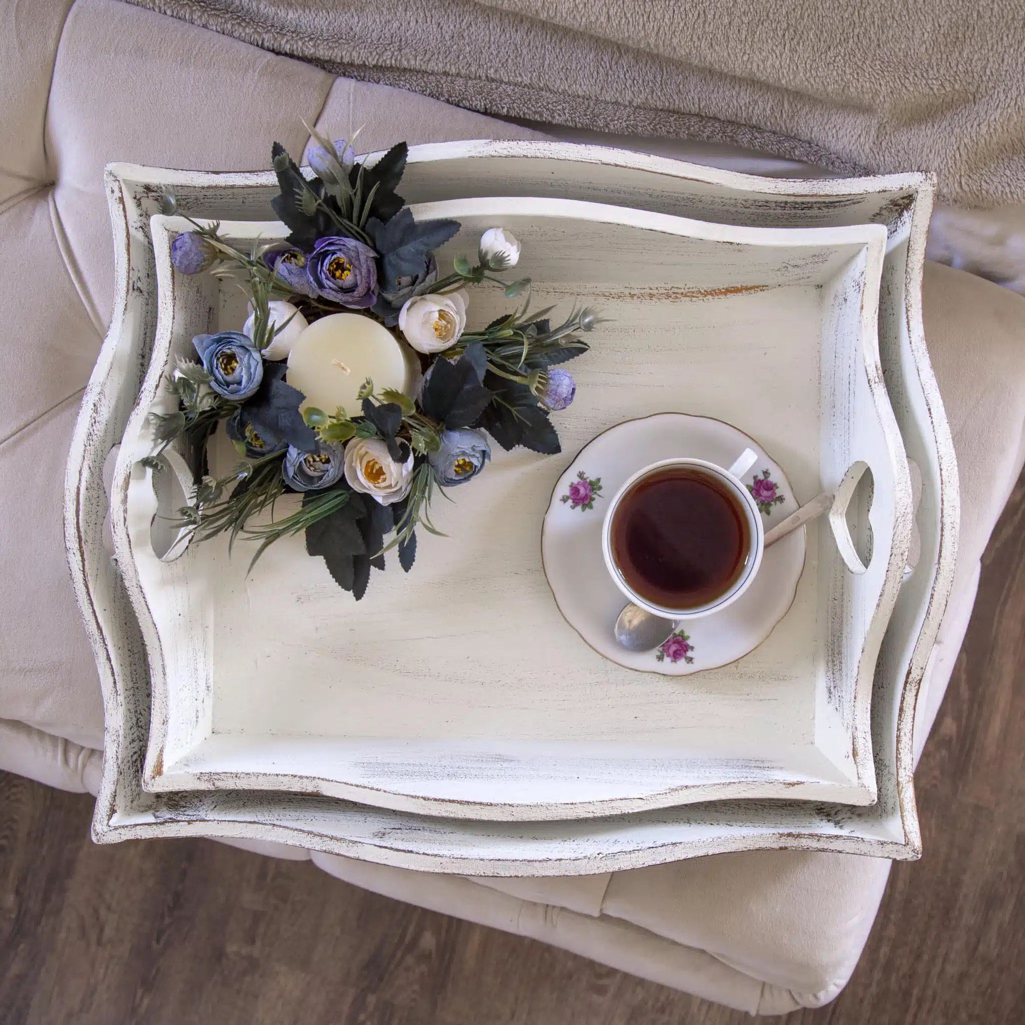 These beautiful carved solid wooden trays come in a pretty white/pink wash & wood and each feature a delicate heart carving.