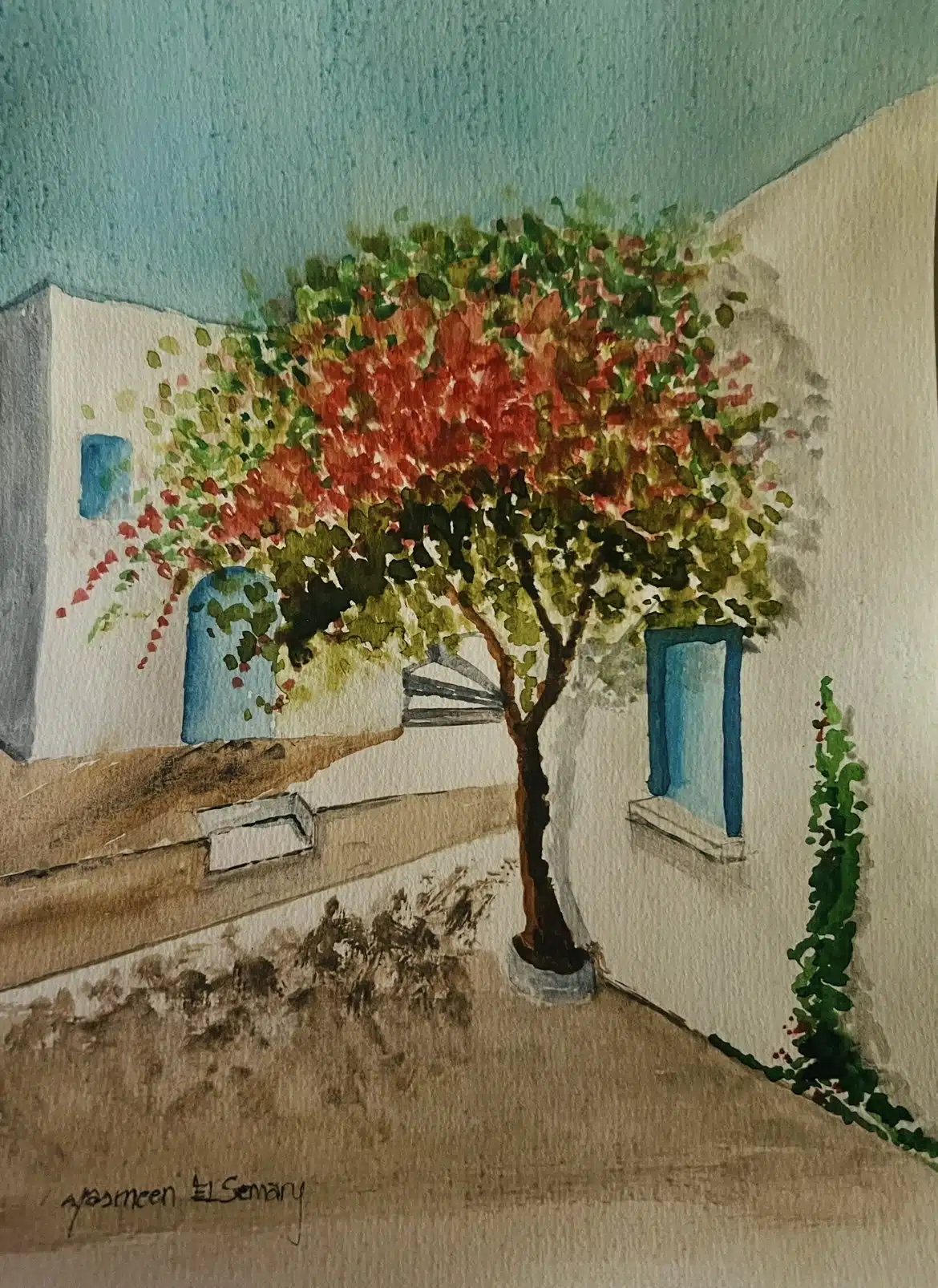 Huge greek homes in watercolor medium 21 x 31 .. the frame is customized