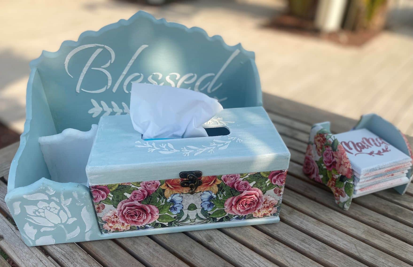 Tissue box with organizer