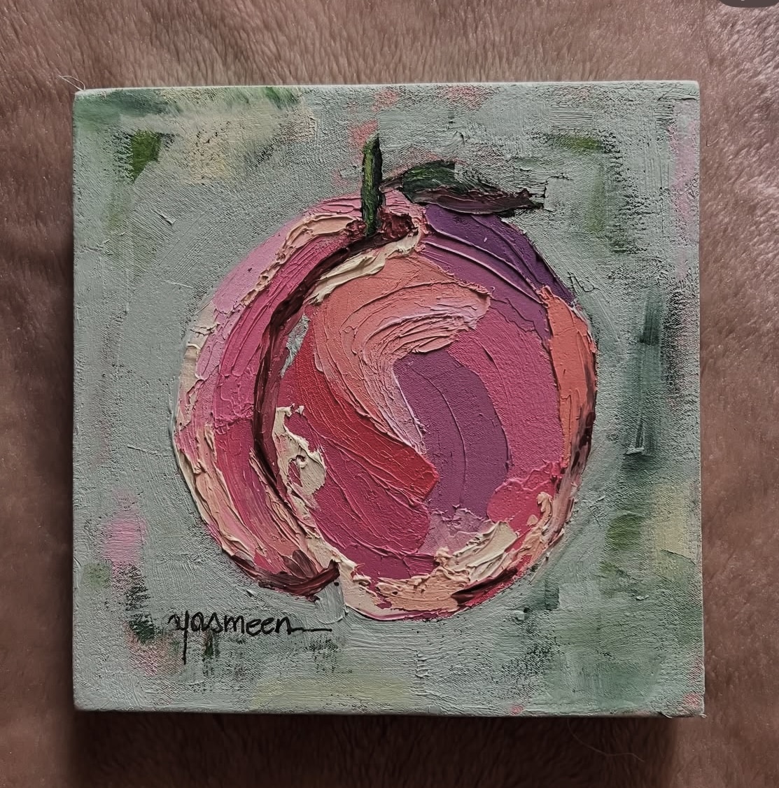 A peach in oil painting sized 20 x 20 ..