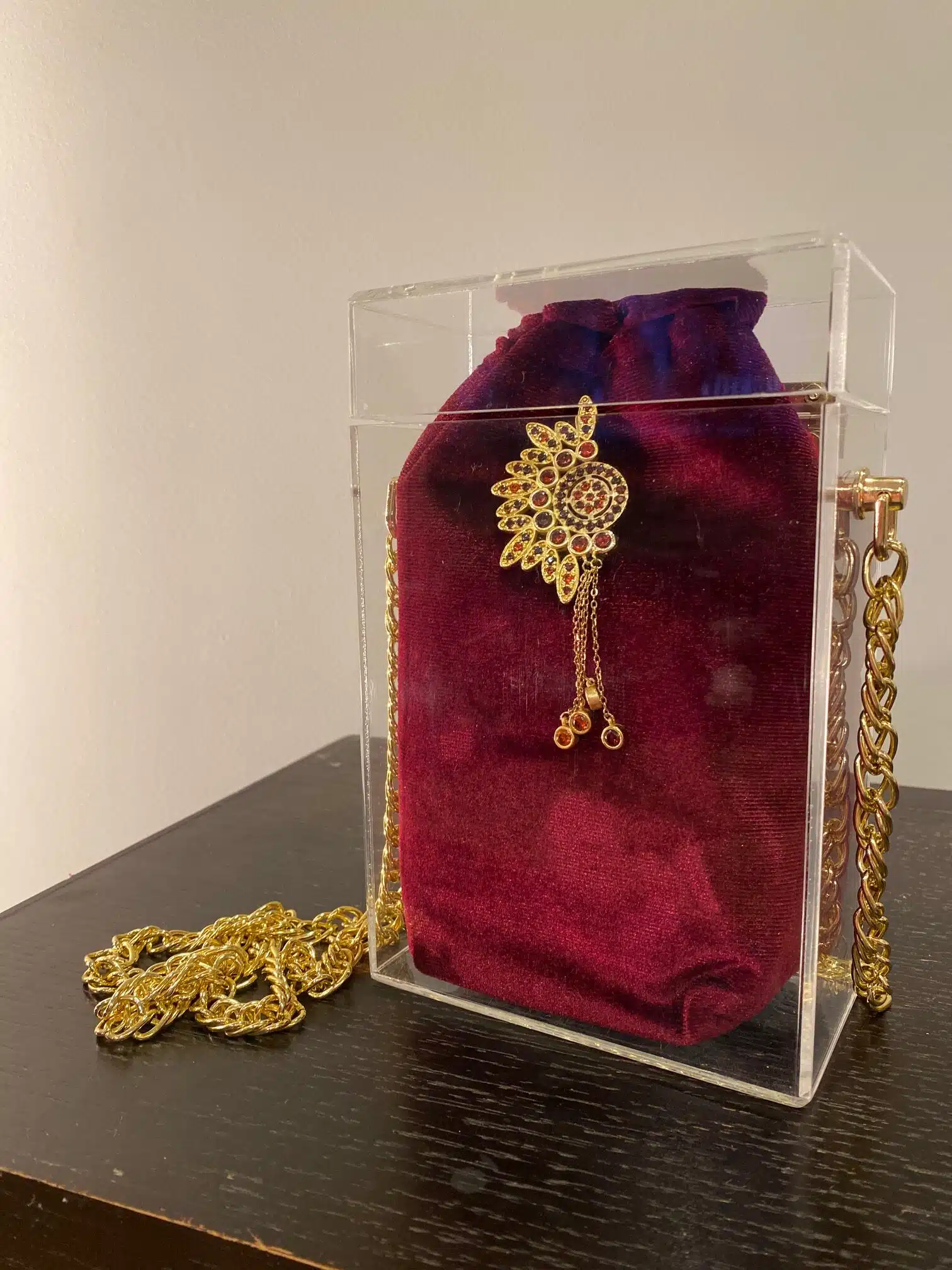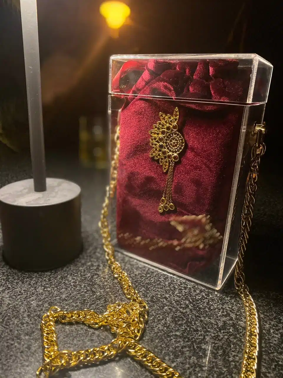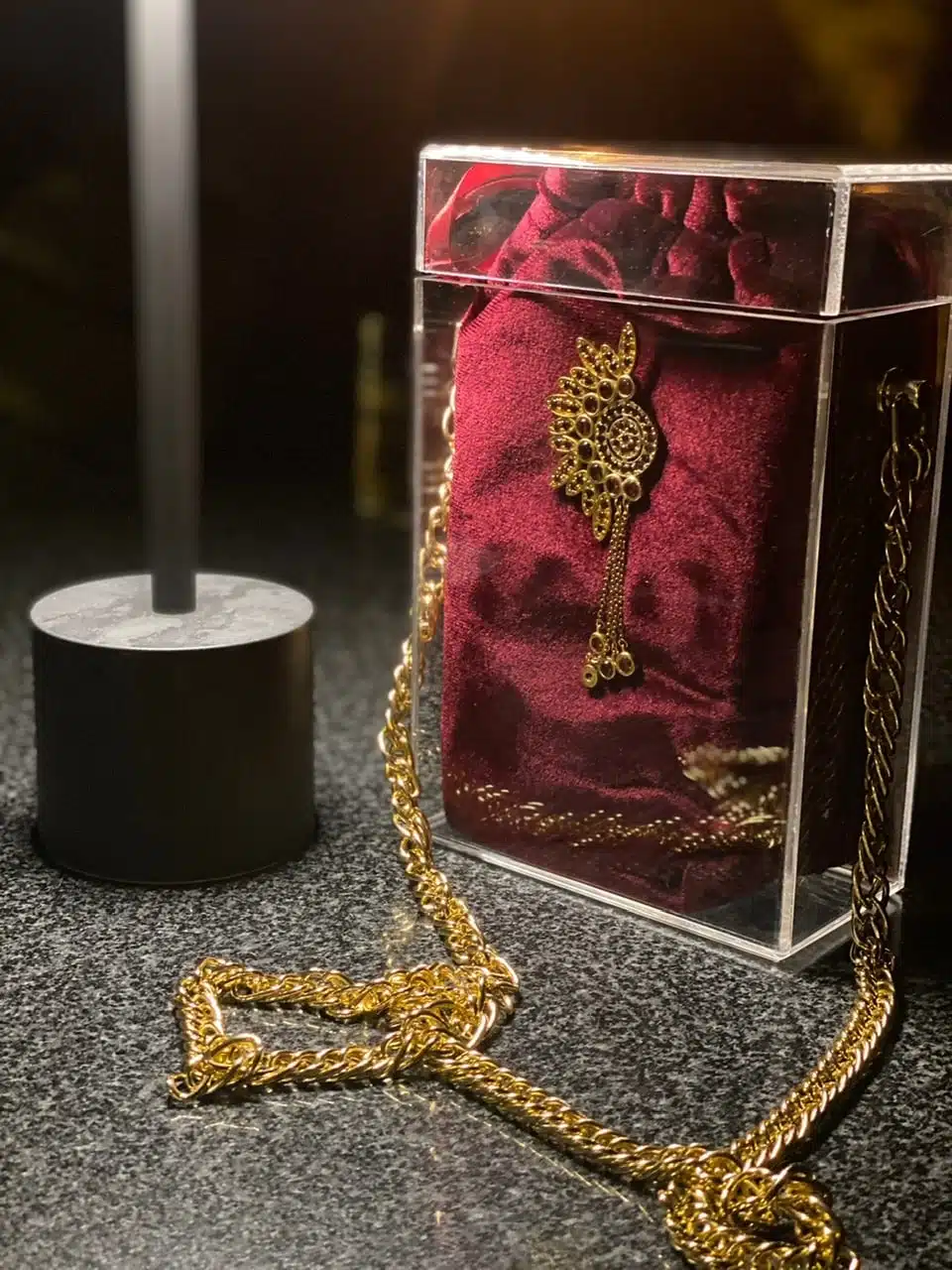 Be the first to review “The Royal Red Crystal Plexi Chain Box with Gold-Plated Piece”