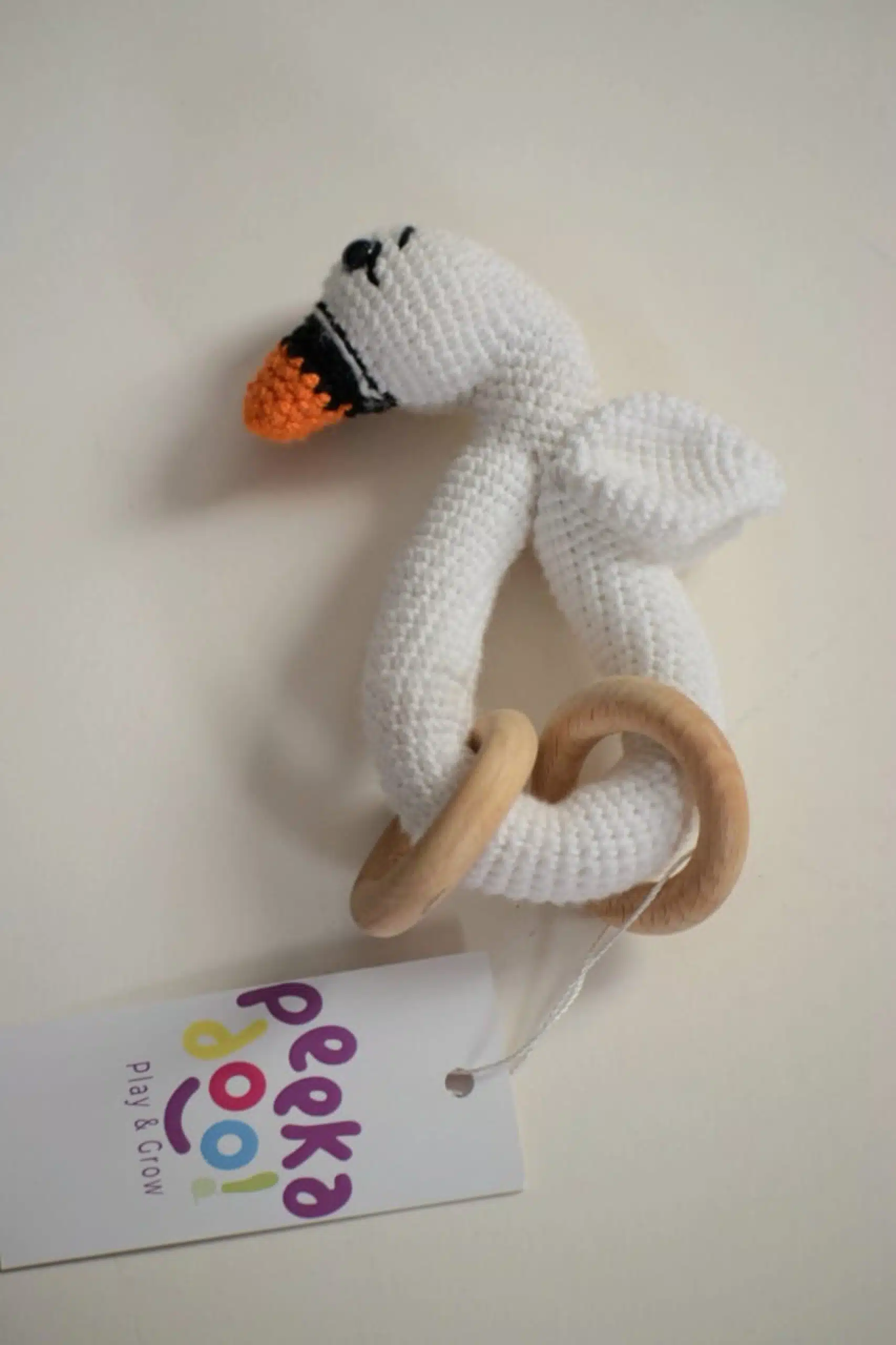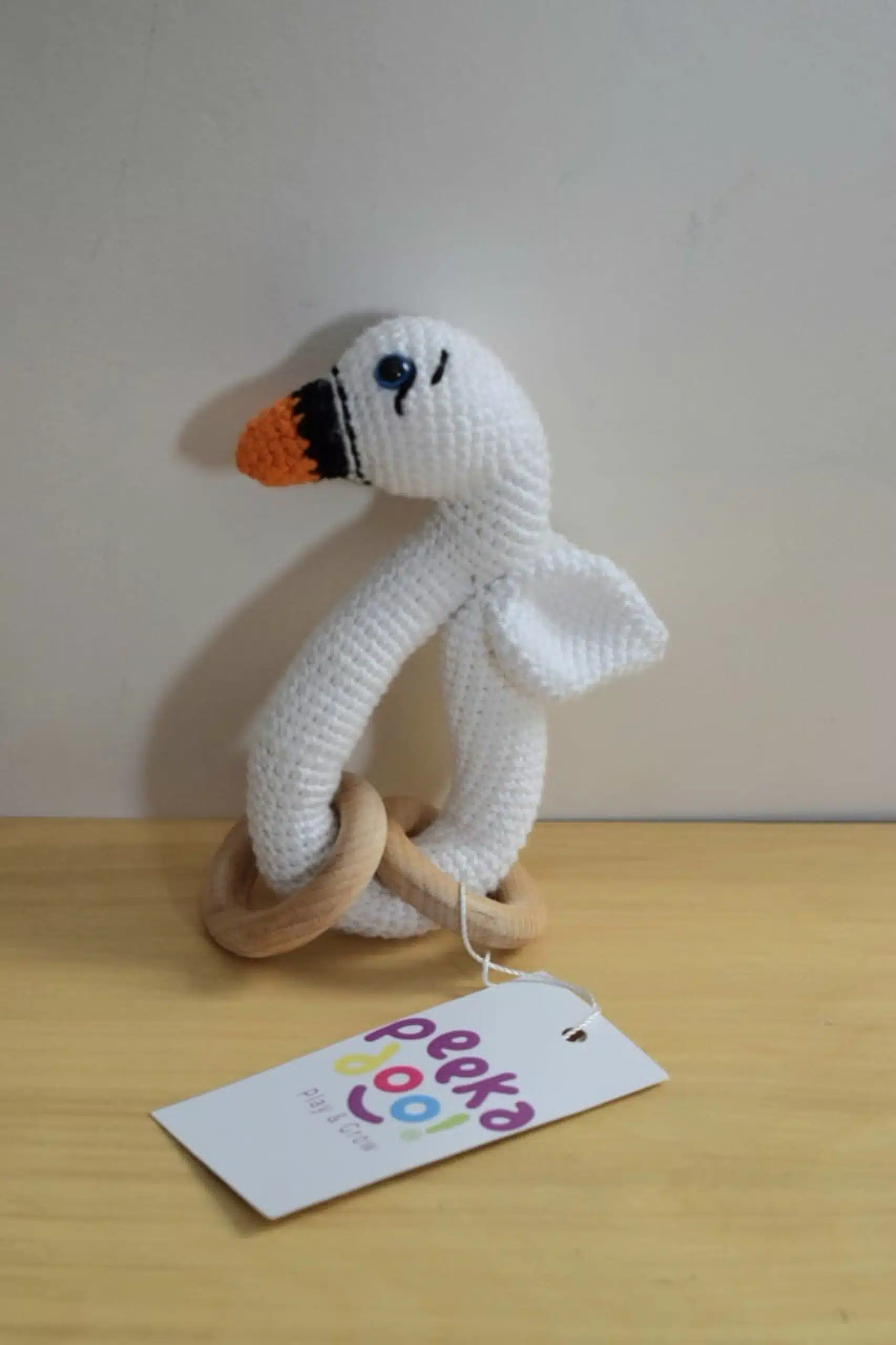 Soft, graceful, and gentle—The Swan Rattle is a handmade crochet toy perfect for sensory play and soothing sound for your little one.