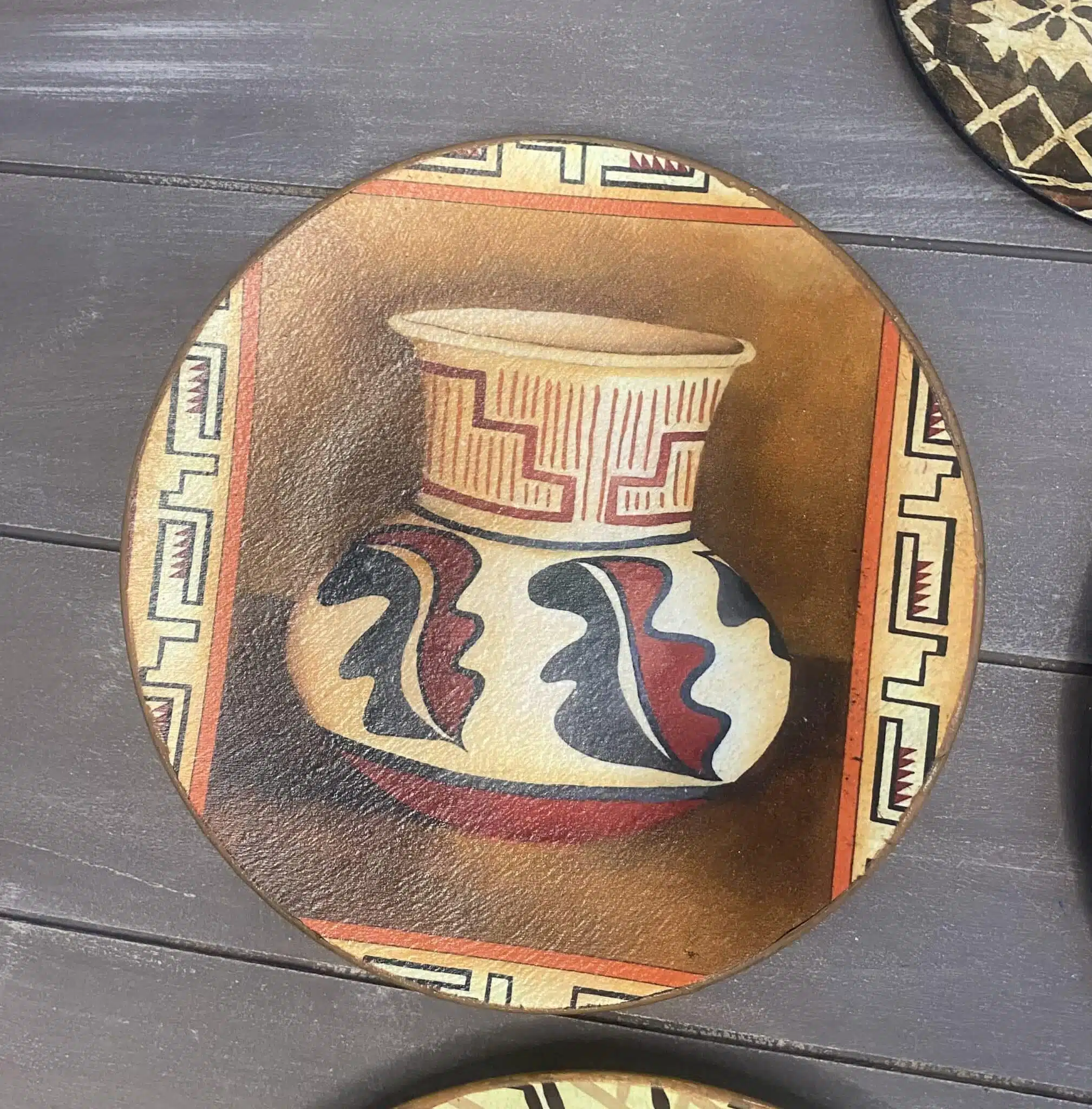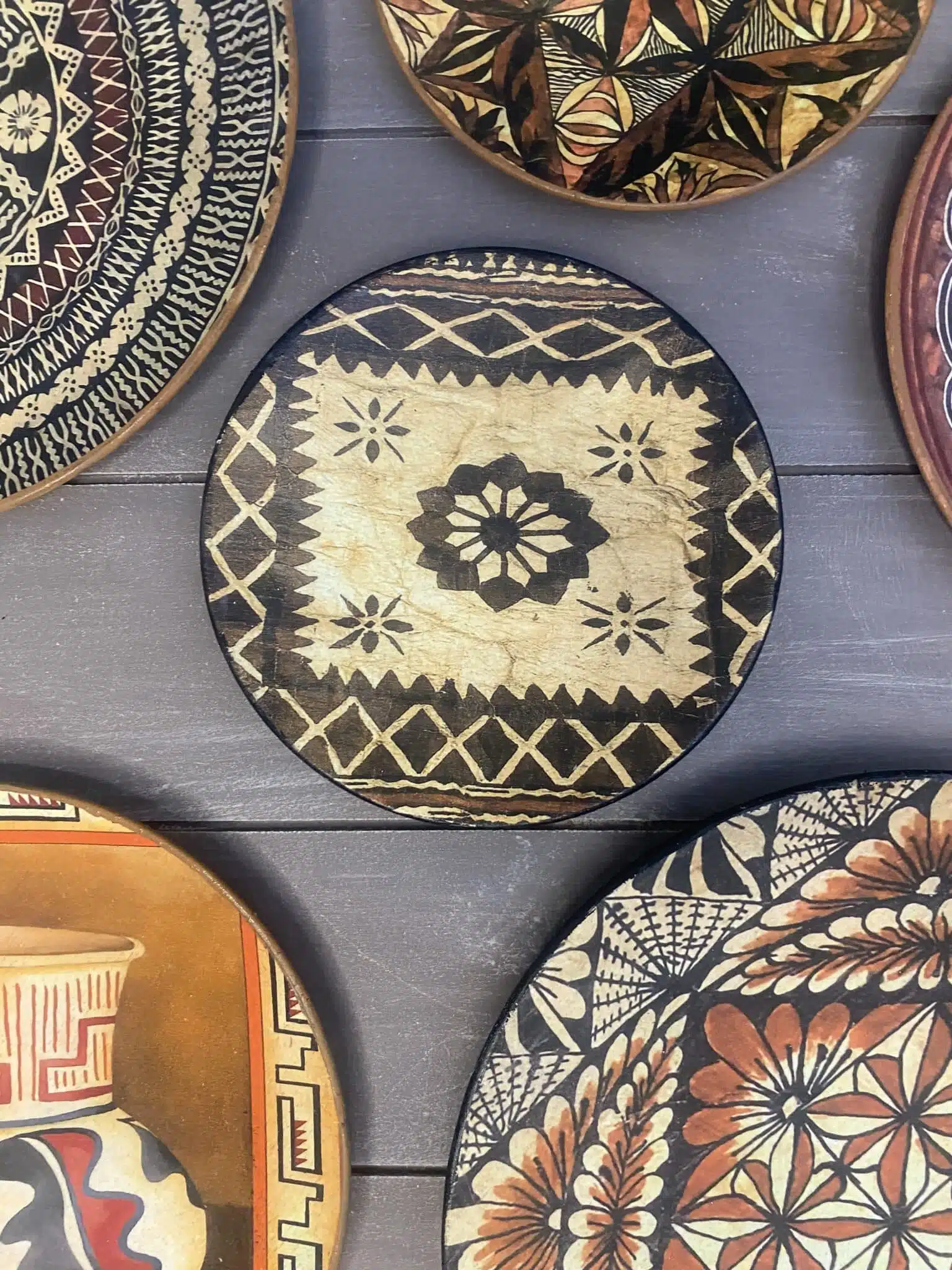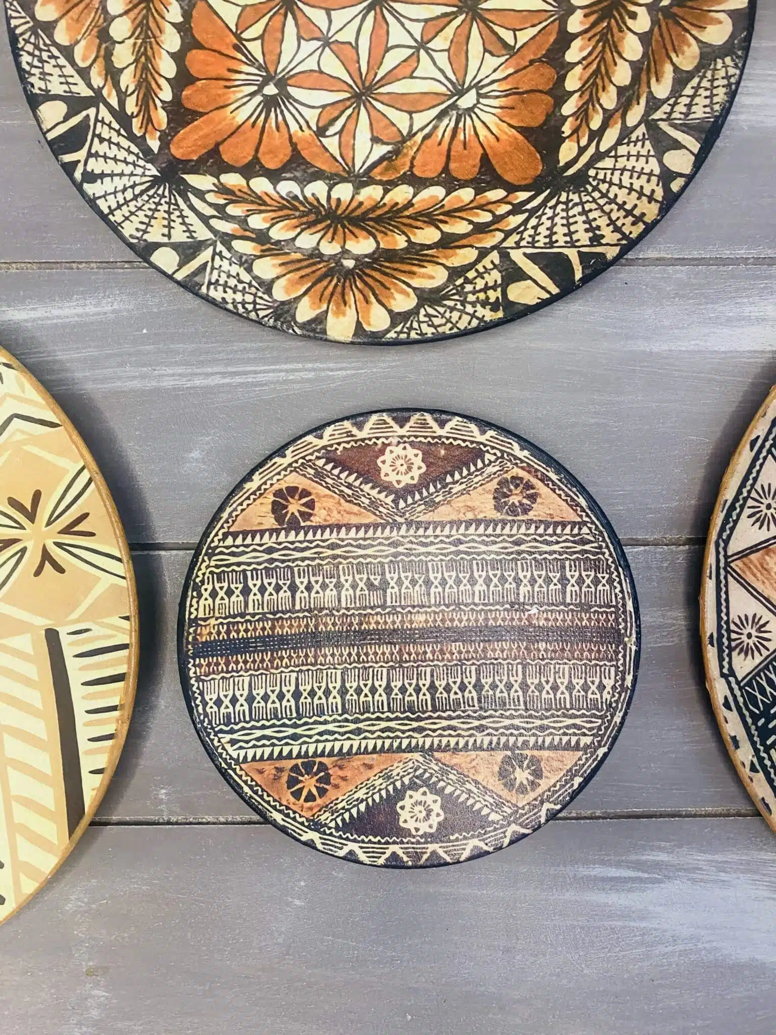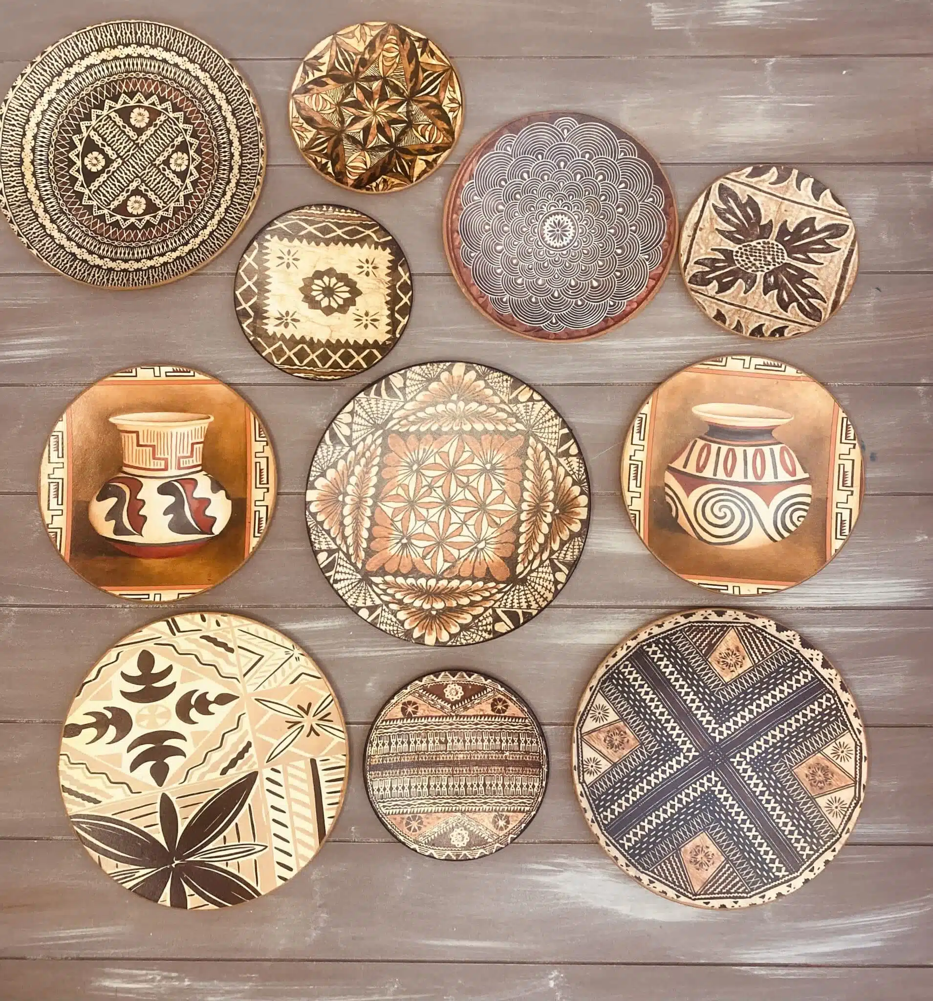 Decoupaged wall plates in African design and theme