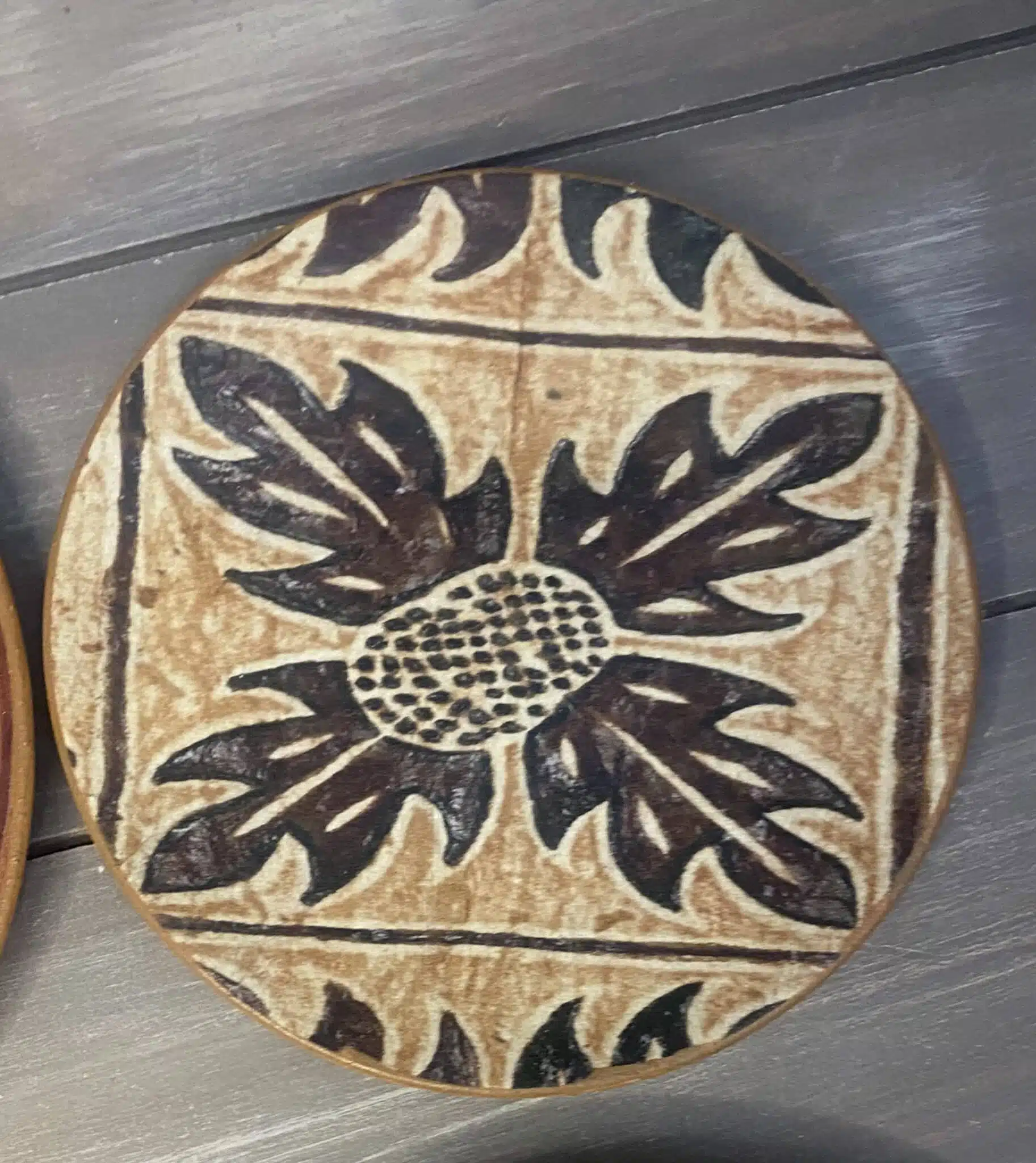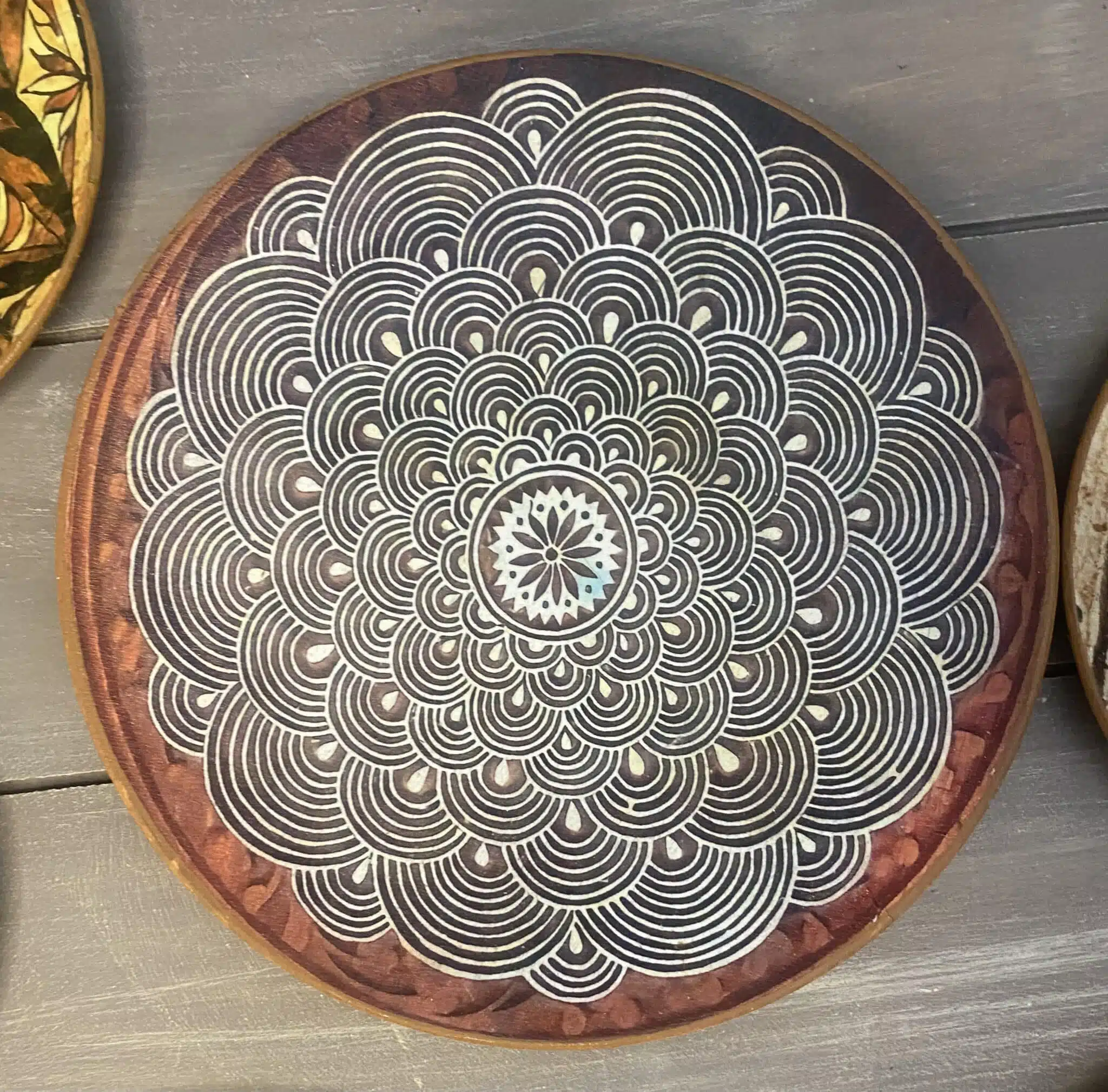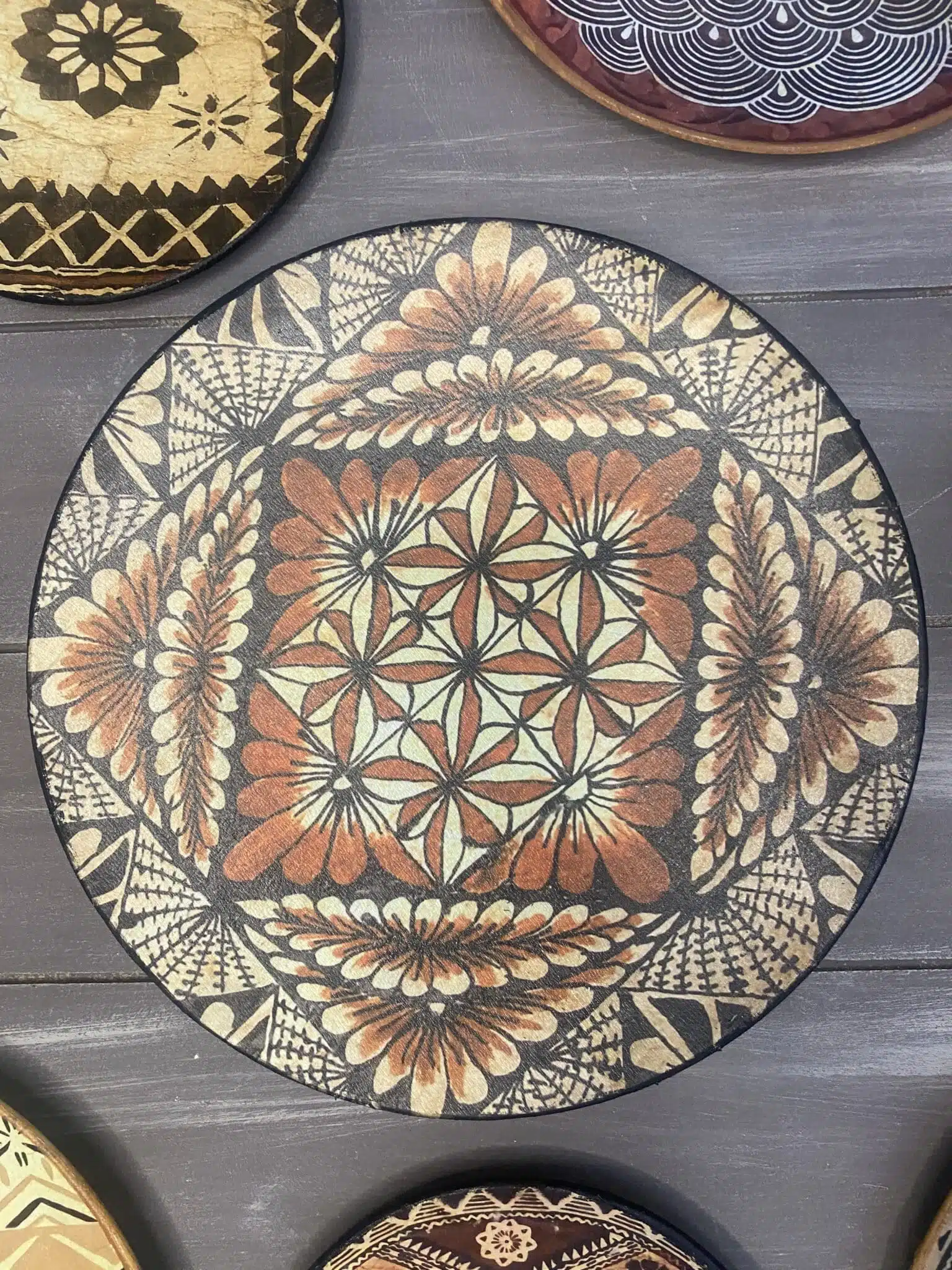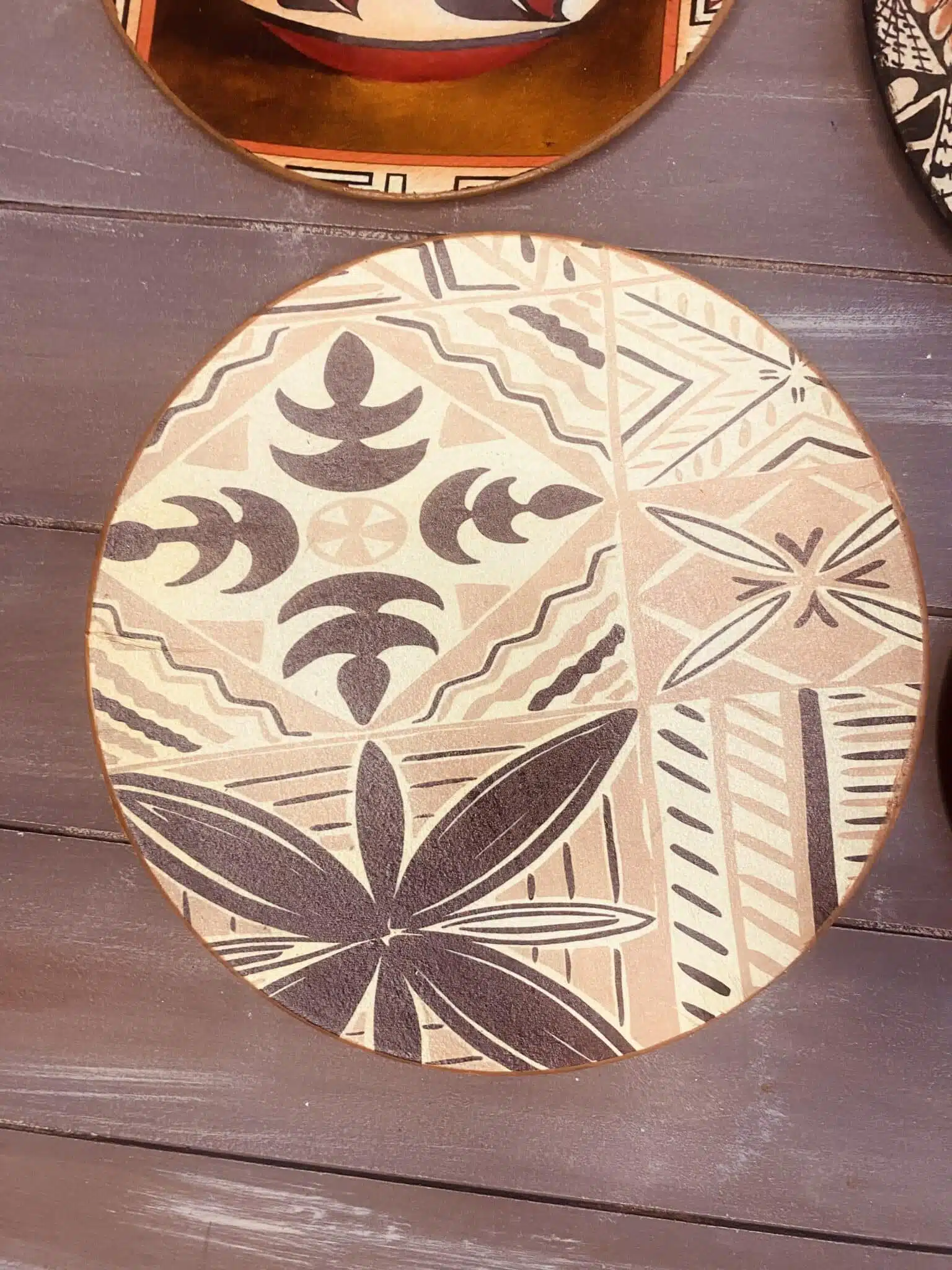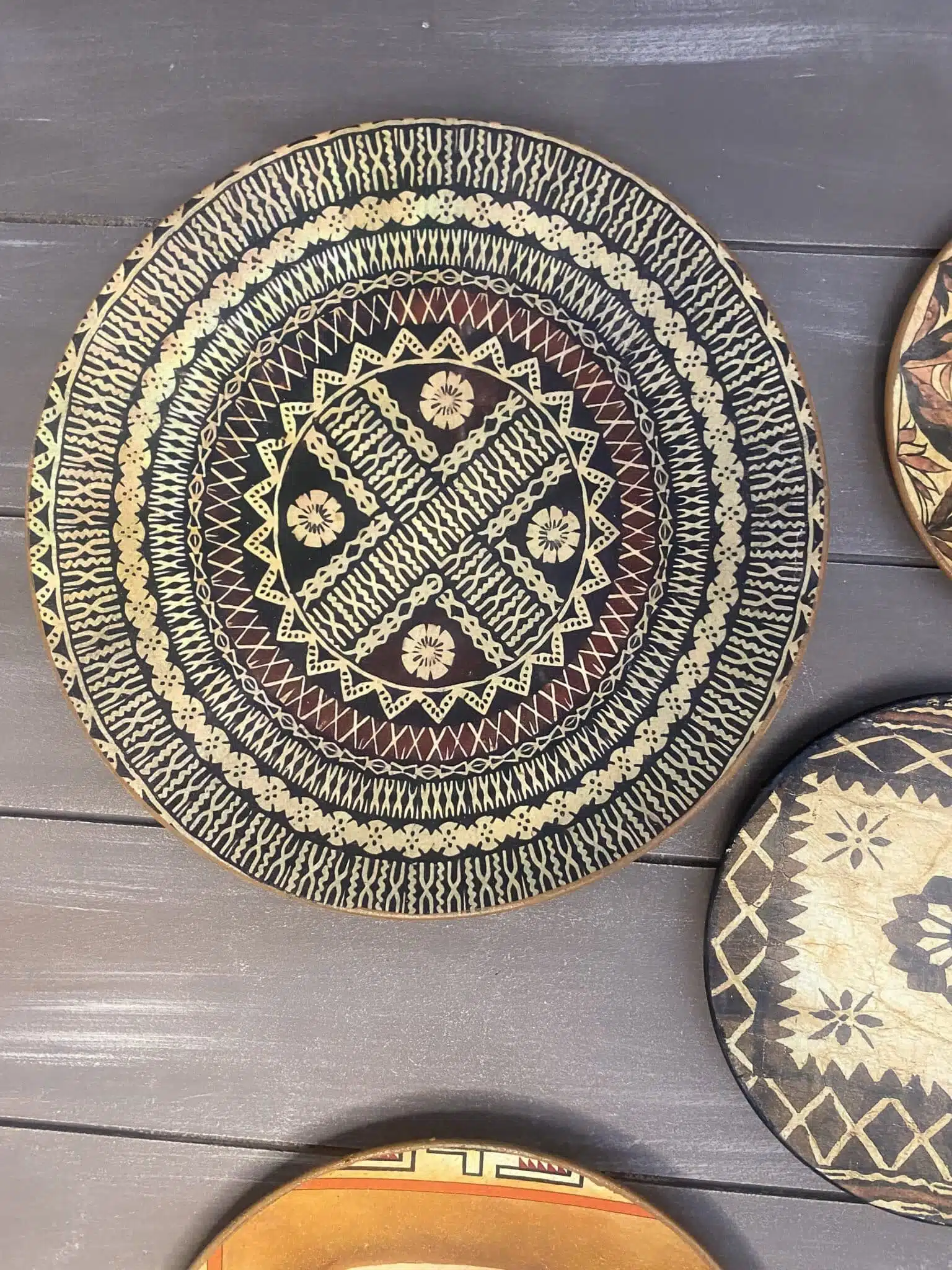 Decoupaged wall plates in African design and theme