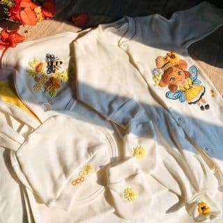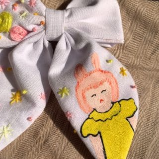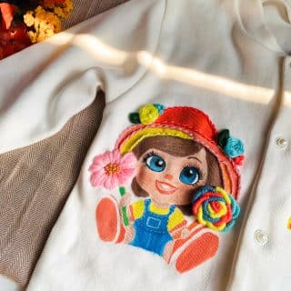 A handcrafted embroidered piece, made with care and tenderness, capturing a heartfelt moment between an aunt and her precious little one.