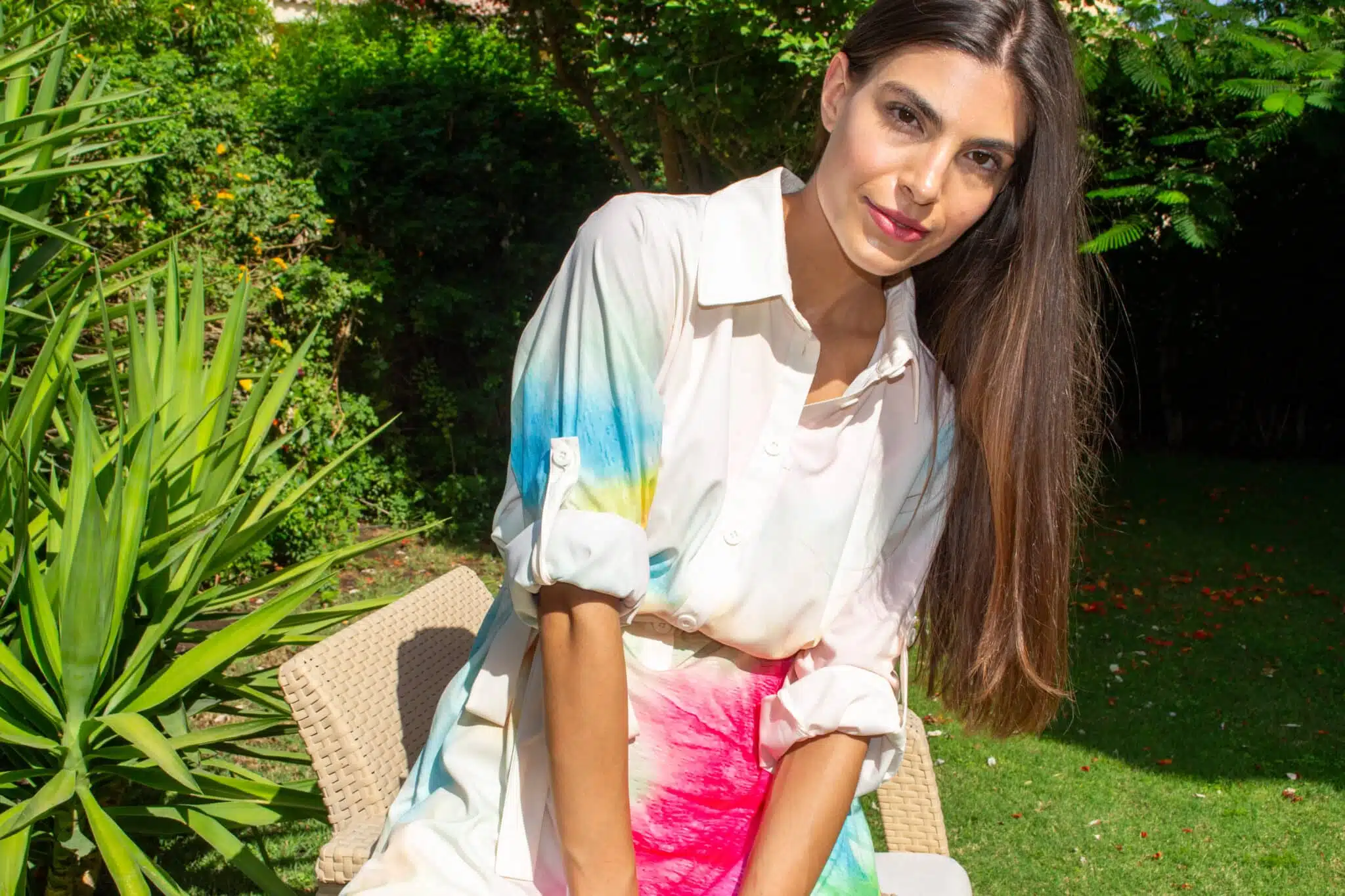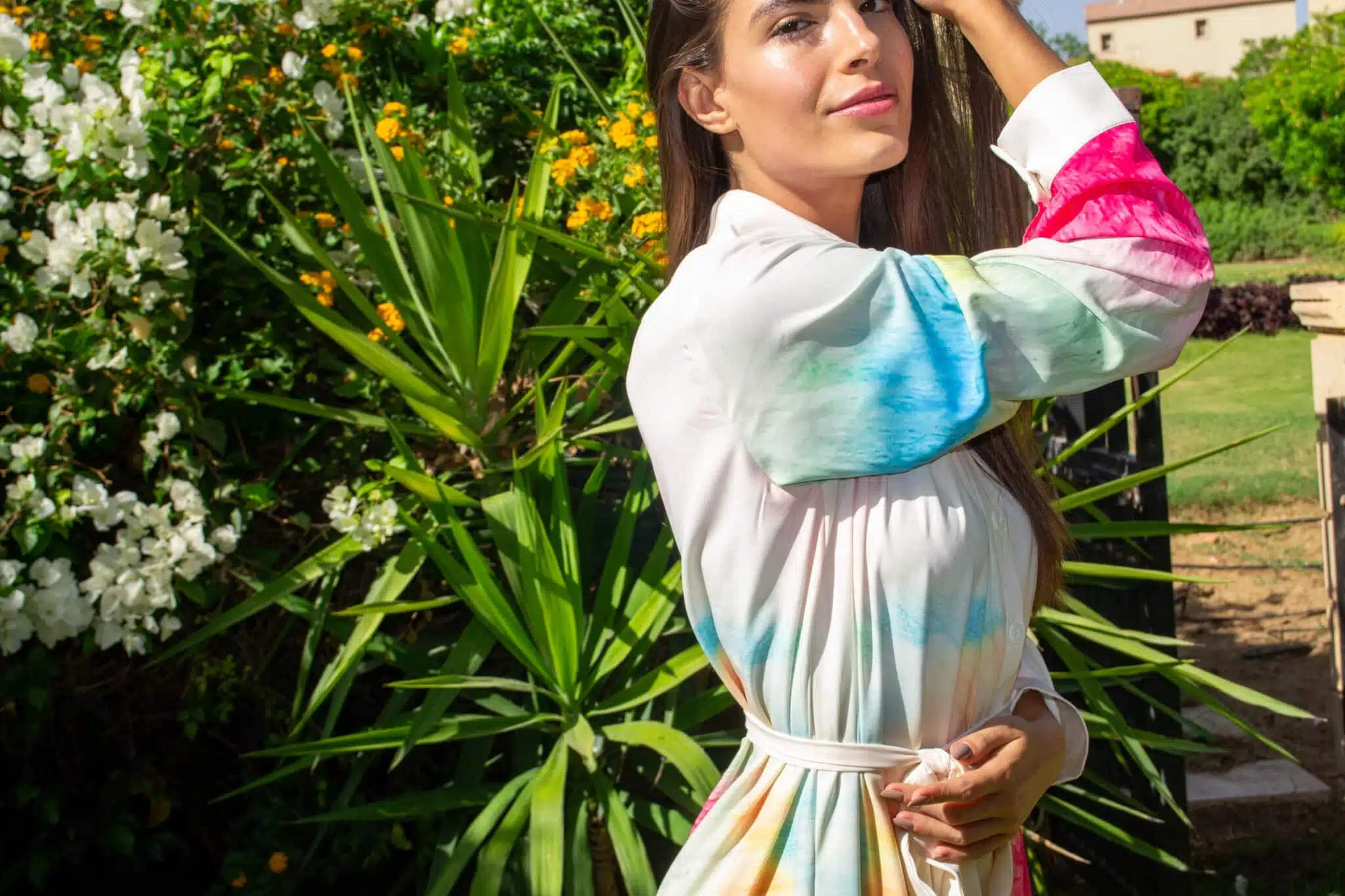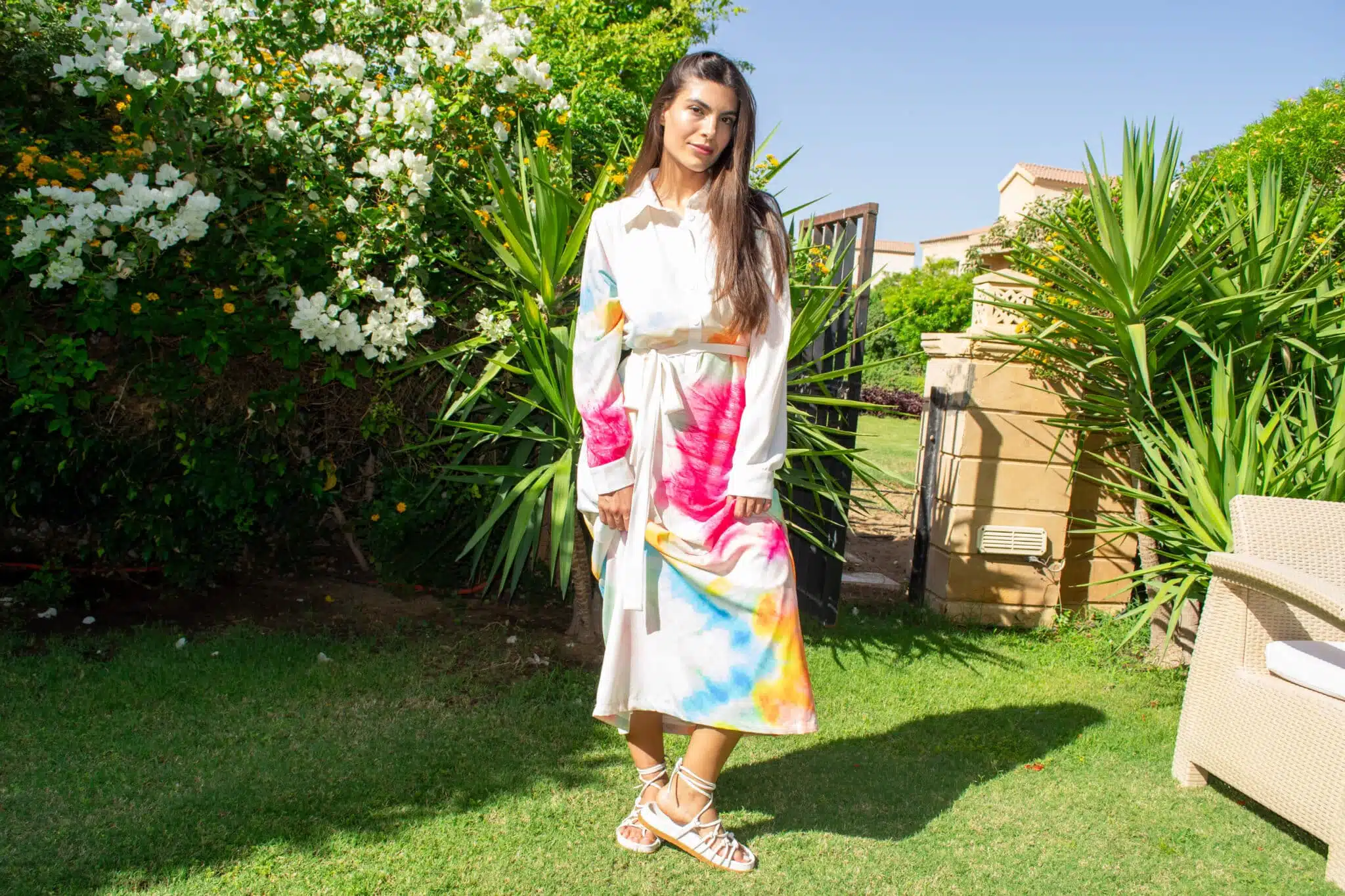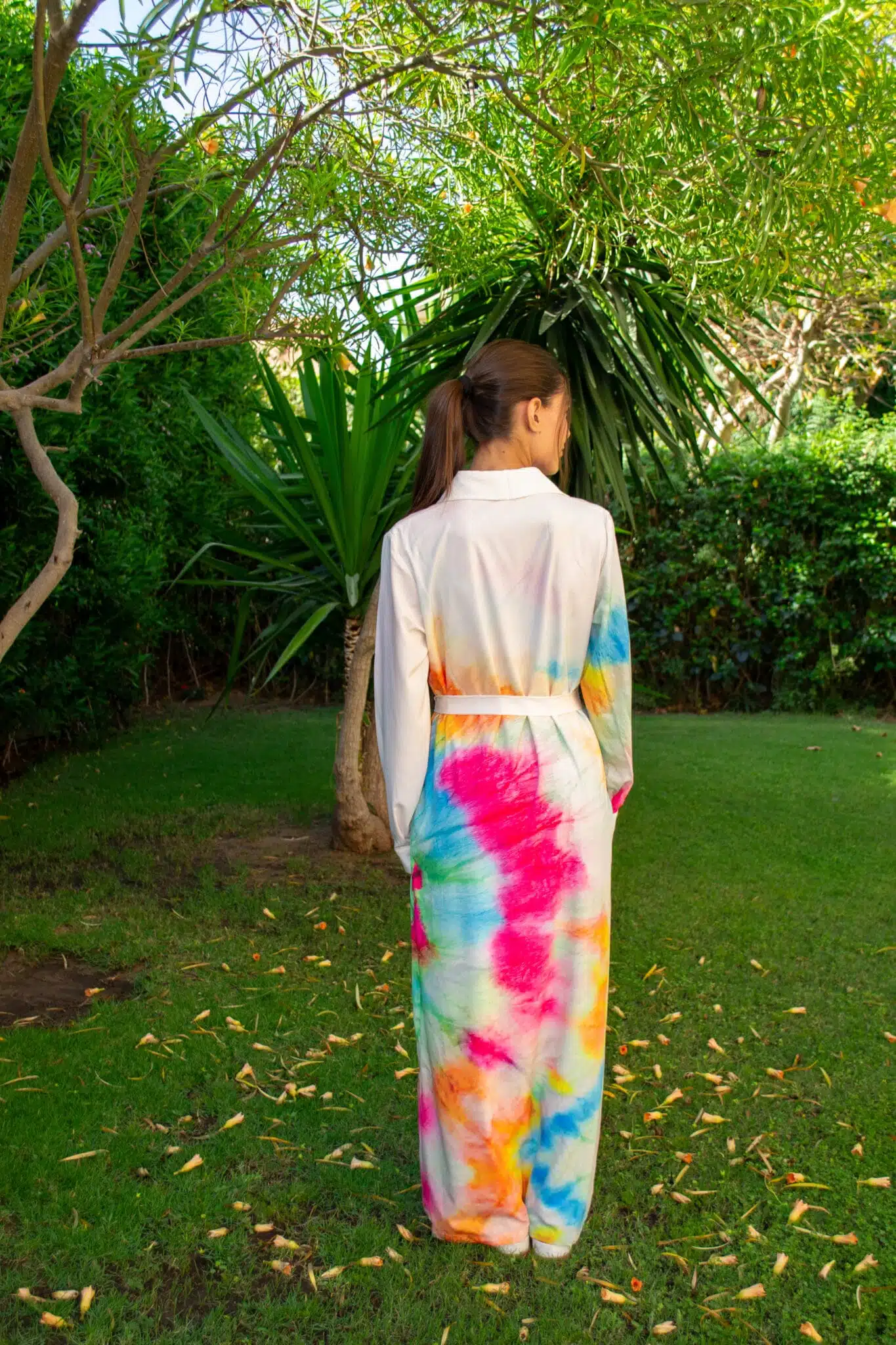 Long sleeve colorful tie dye dress sleeves can be rolled-up