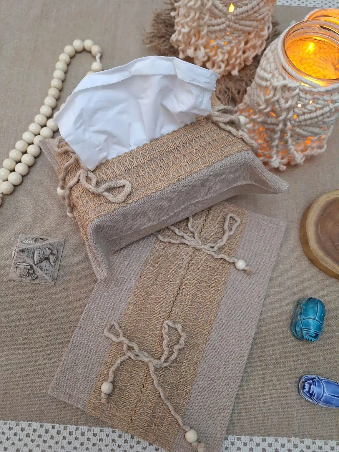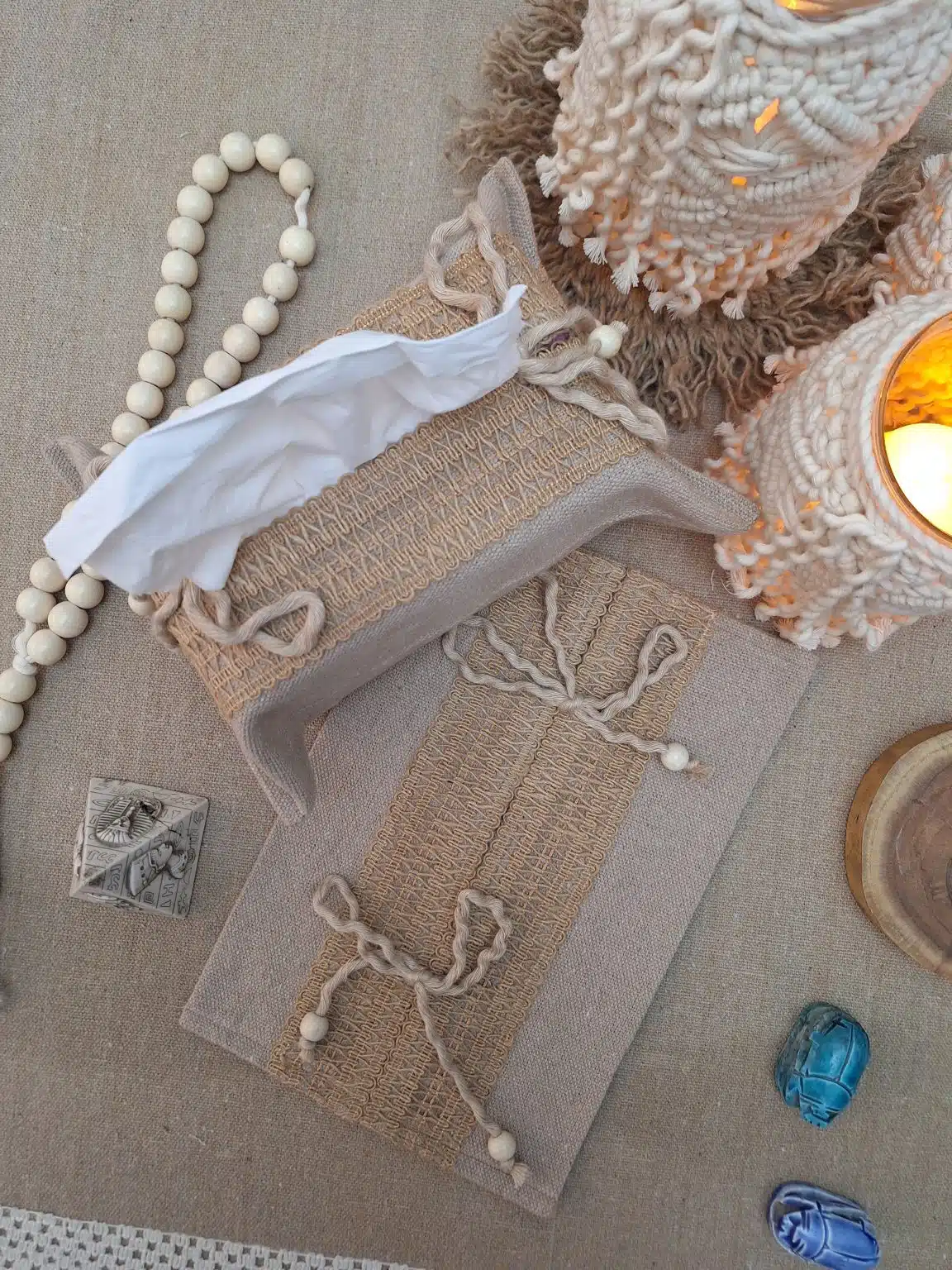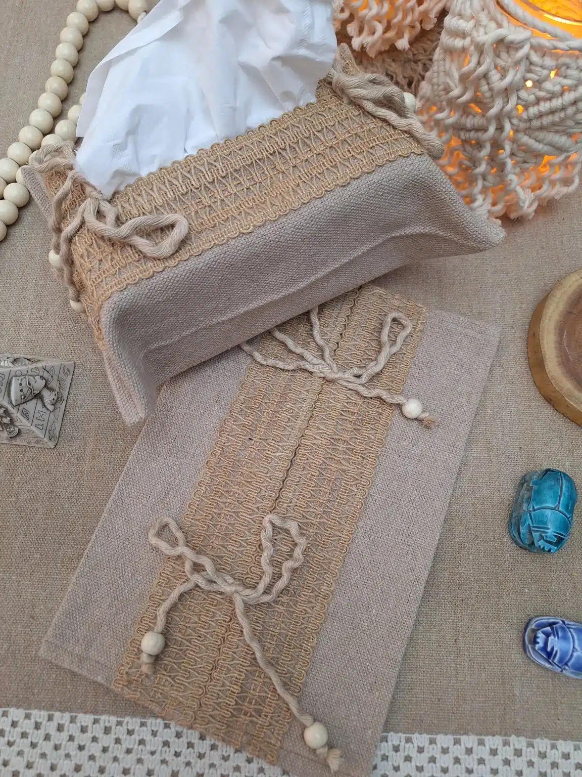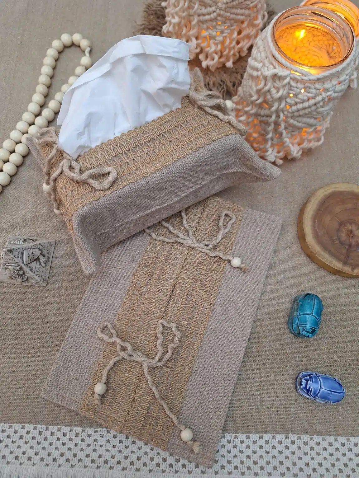 “تيشو كفر أنيق ومميز مصنوع يدويًا بعناية من خامات عالية الجودة، يضفي لمسة ديكور ناعمة ومنظمة على أي ركن في البيت أو المكتب. عملي وسهل الاستخدام، ومصمم بلمسة فنية تجمع بين البساطة والجمال.”