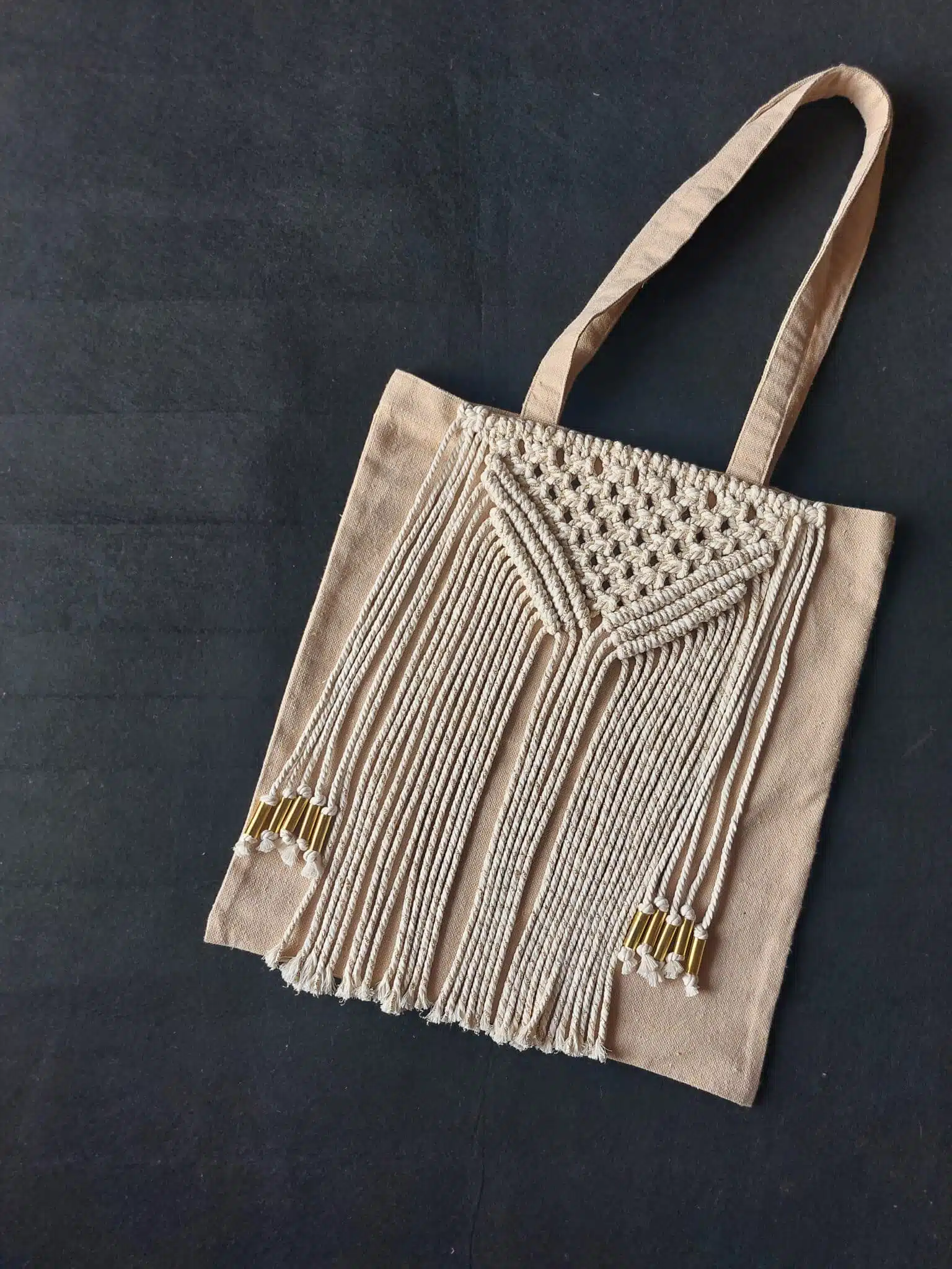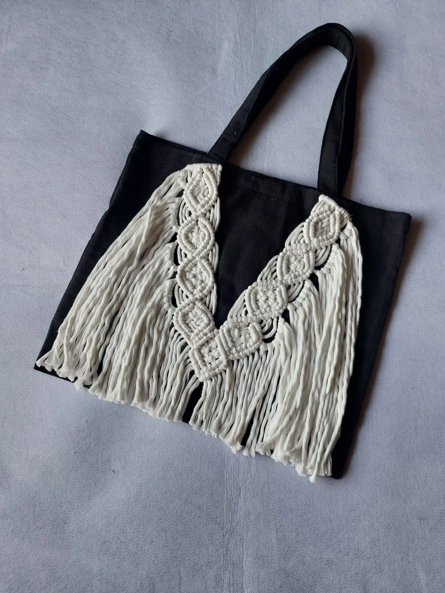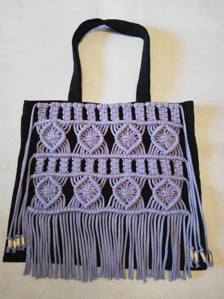 Tote bag with macramé décoration