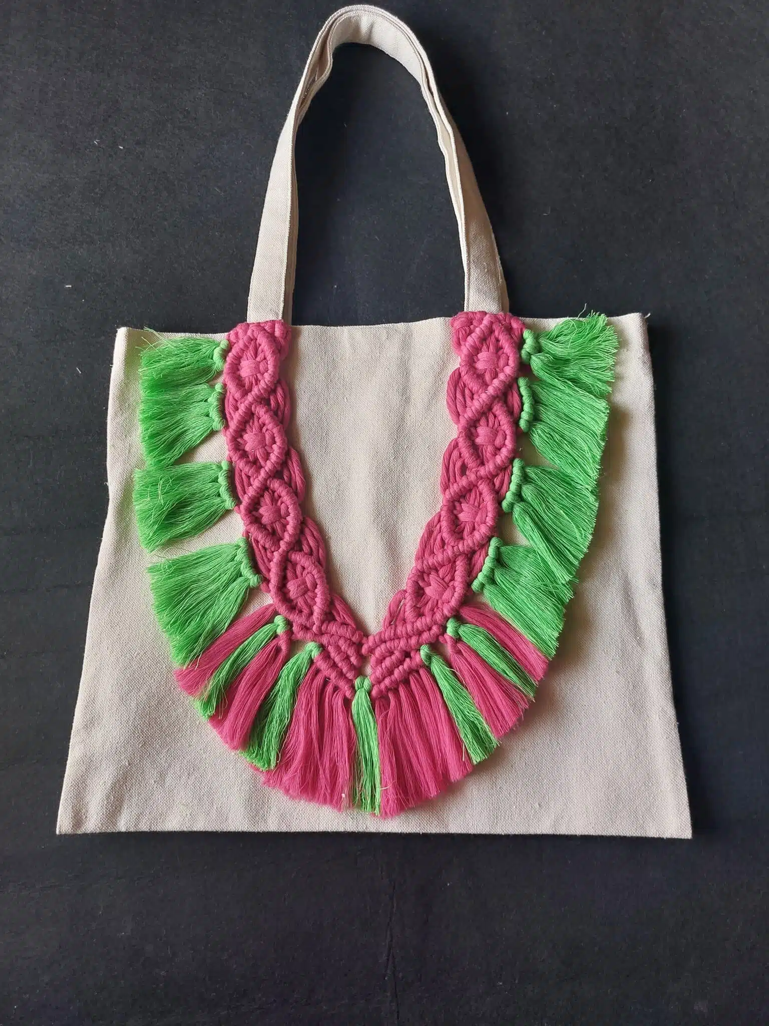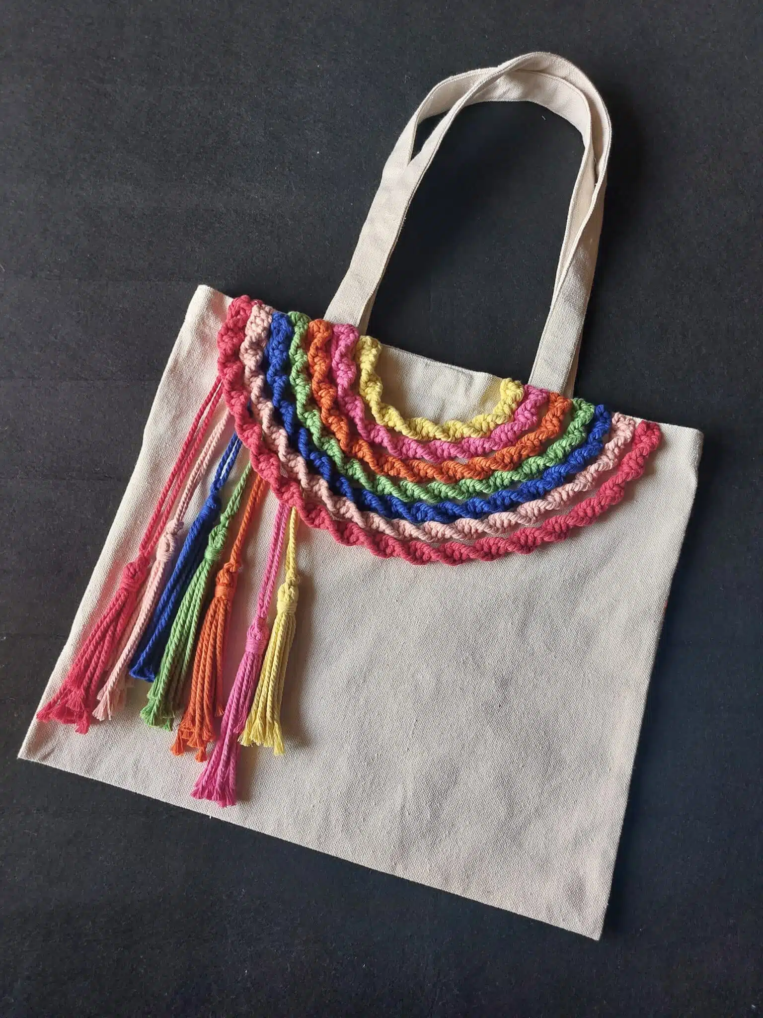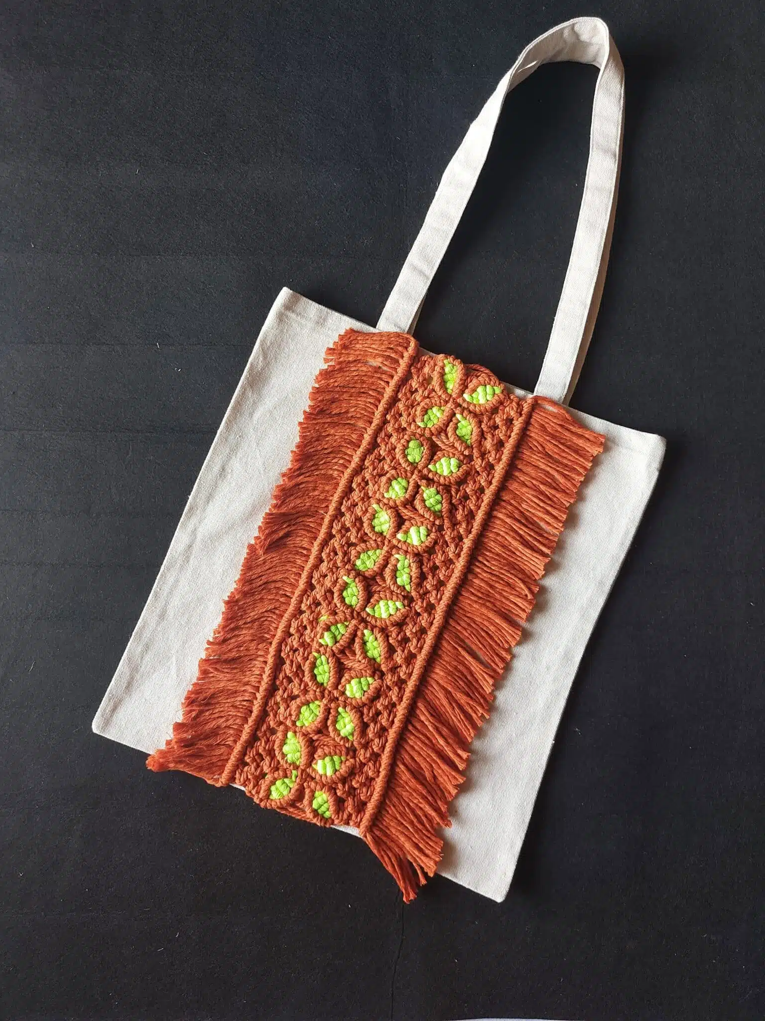 Tote bag with macramé décoration