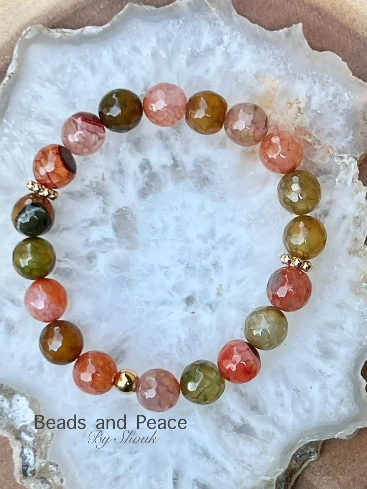 It’s one of a kind handmade made with 10mm tourmaline beads, gold filled separate beads , stretch bracelet made with high quality elastic cord to make it easy for you to wear, please roll it not pull it.