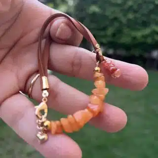 It’s one of kind handmade bracelet made with 10mm tourmaline beads, gold plated tulip charm, stretch bracelet made with high quality elastic cord to make it easy for you to wear, please roll it don’t pull it.