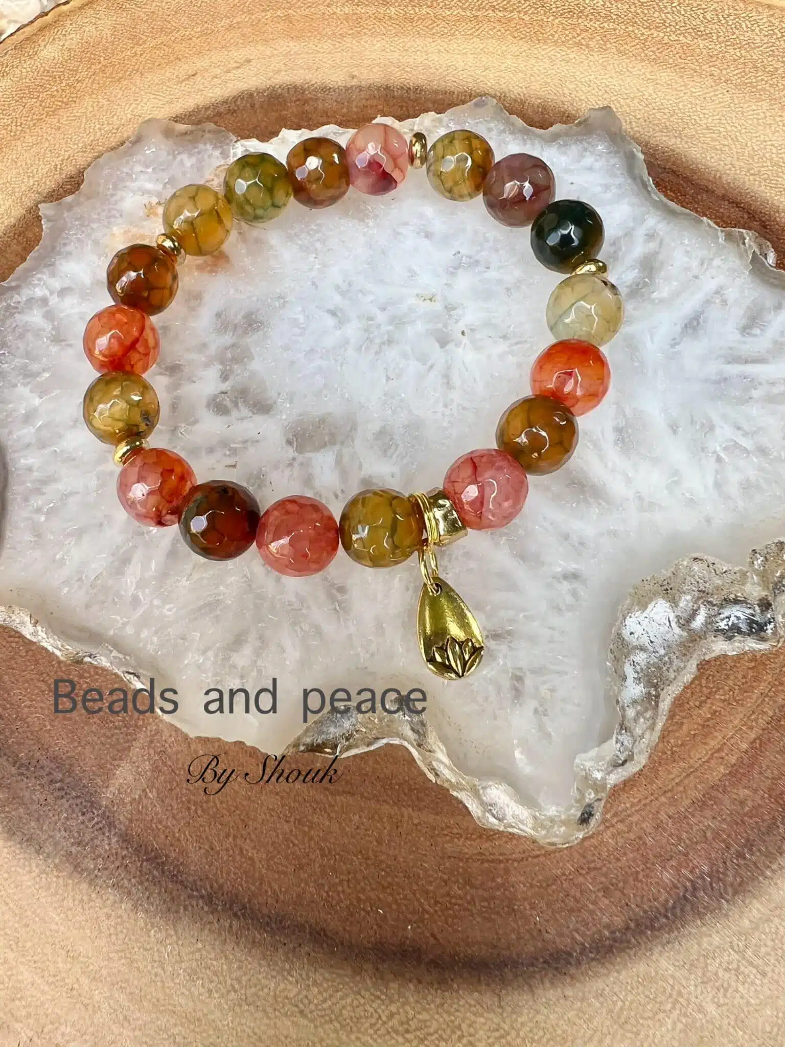 It’s one of kind handmade bracelet made with 10mm tourmaline beads, gold plated tulip charm, stretch bracelet made with high quality elastic cord to make it easy for you to wear, please roll it don’t pull it.