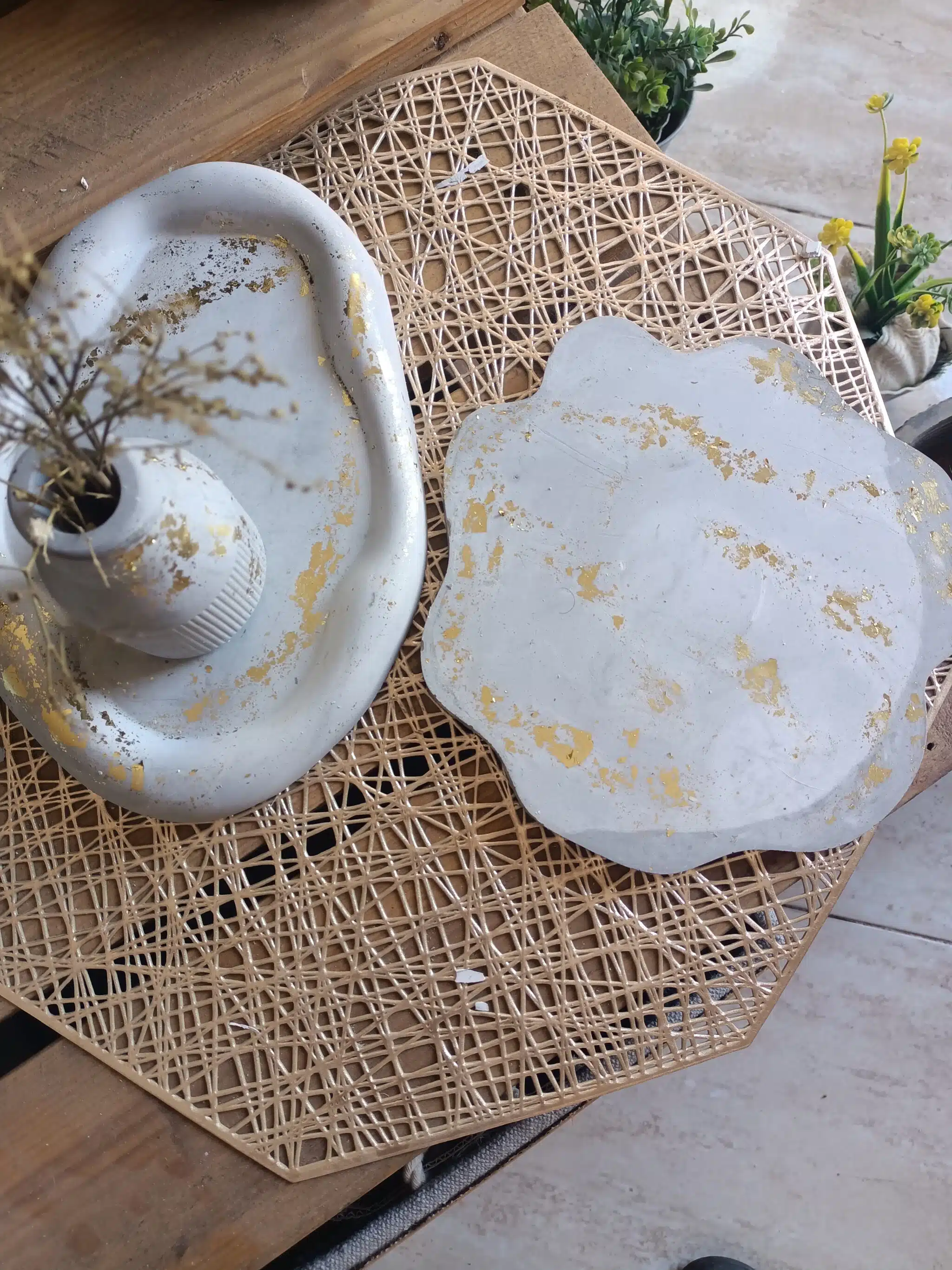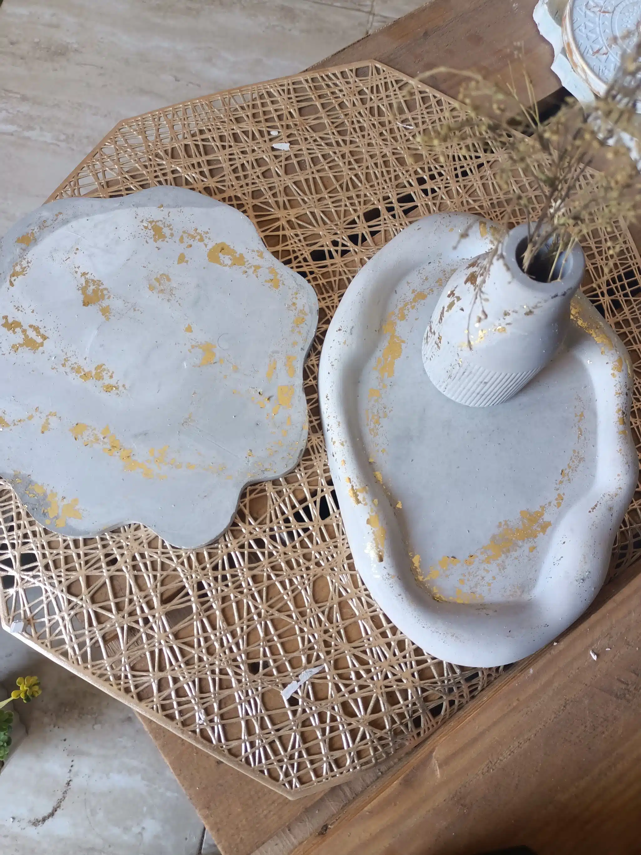 Concrete set includes 2 trays & vase